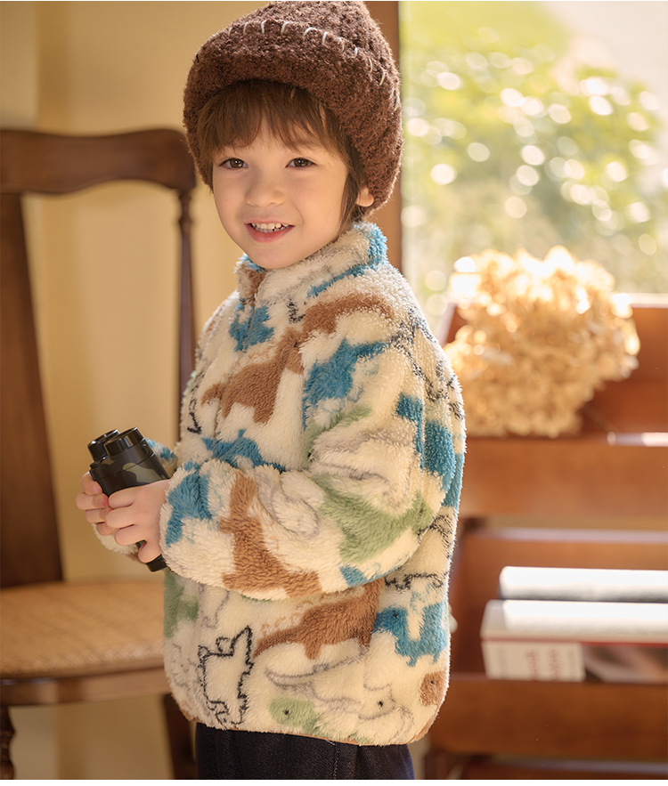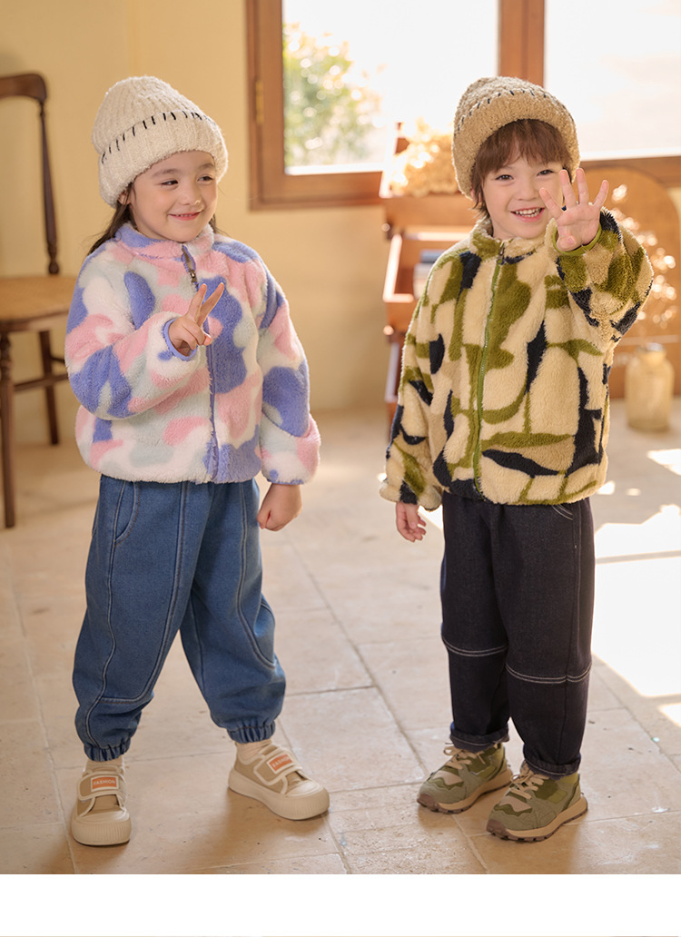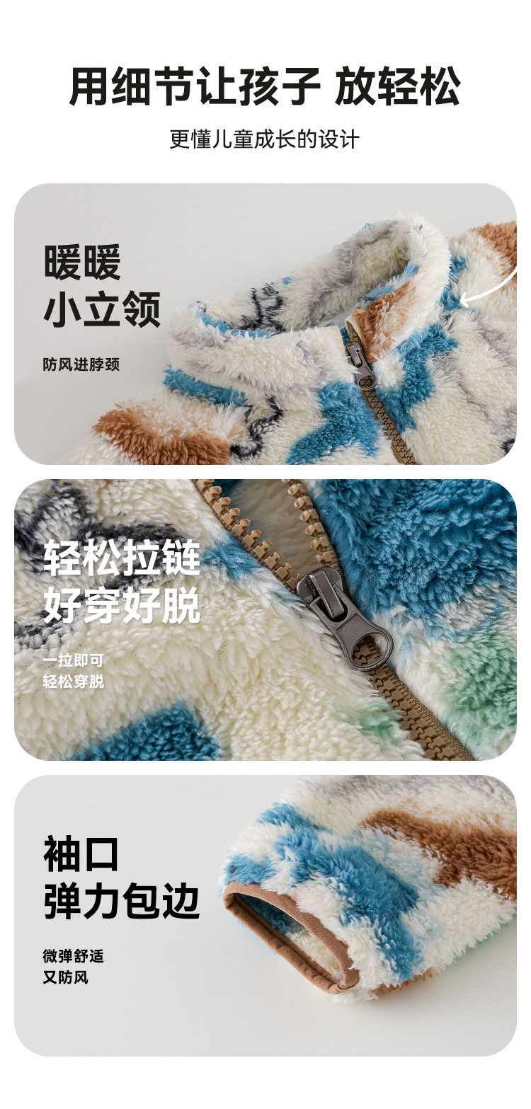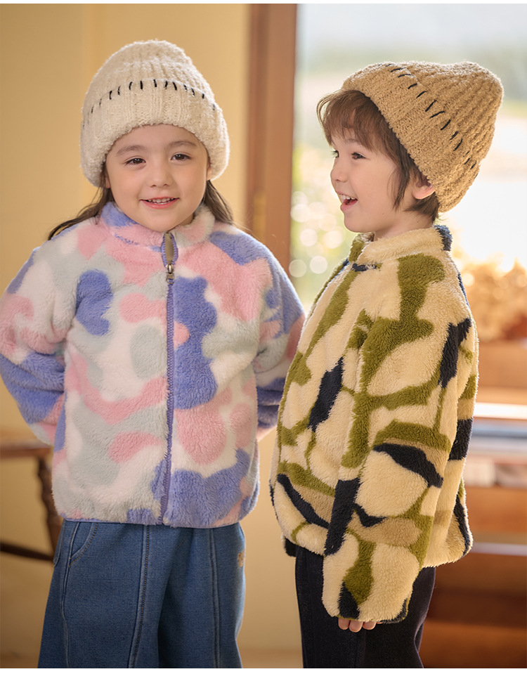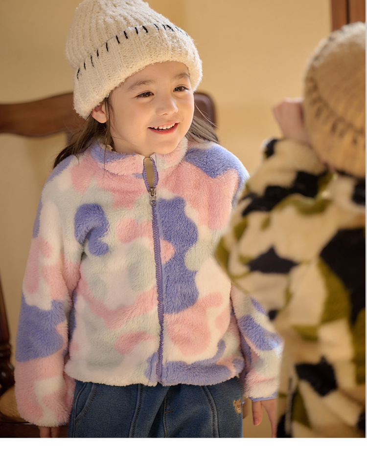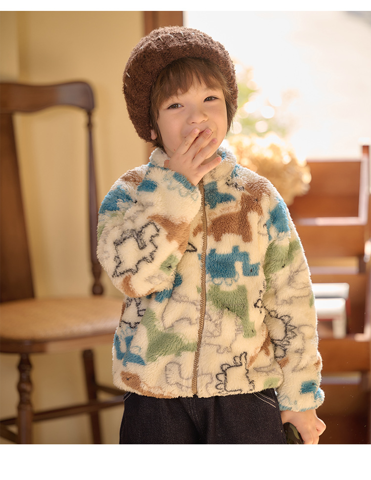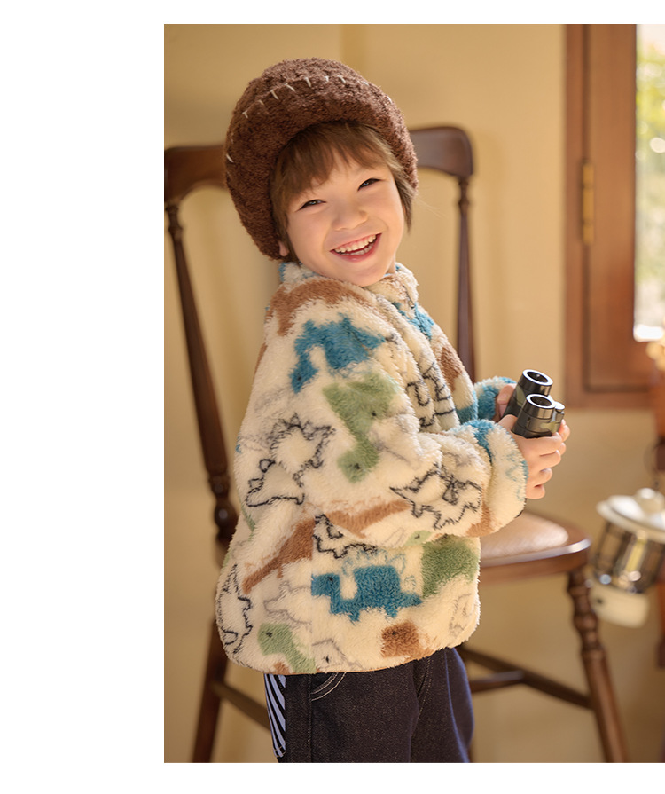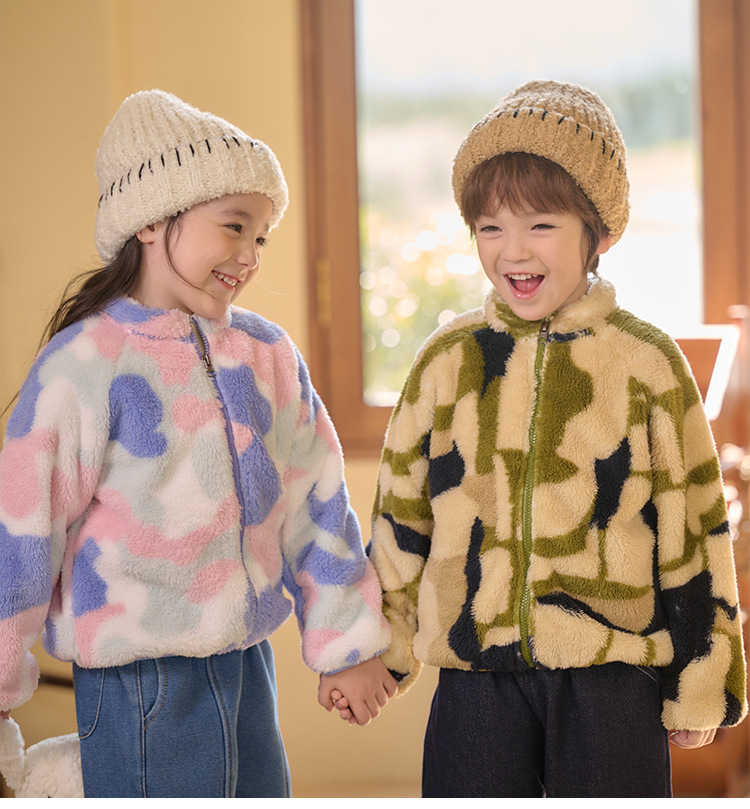 Mianhuatang 아동복 어린이 두꺼운 니트 벨벳 재킷 2024 새로운 스타일 따뜻한 만화 캐주얼 어린이 탑스토어 가기