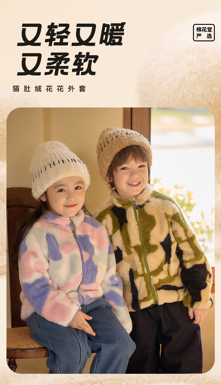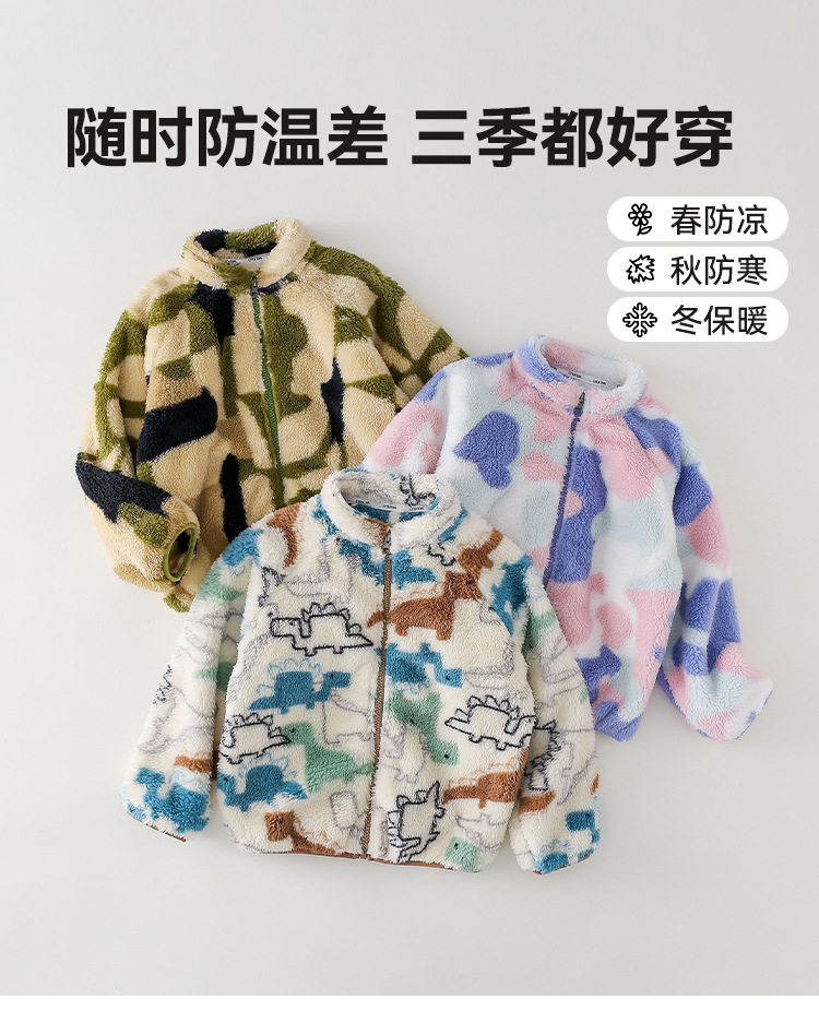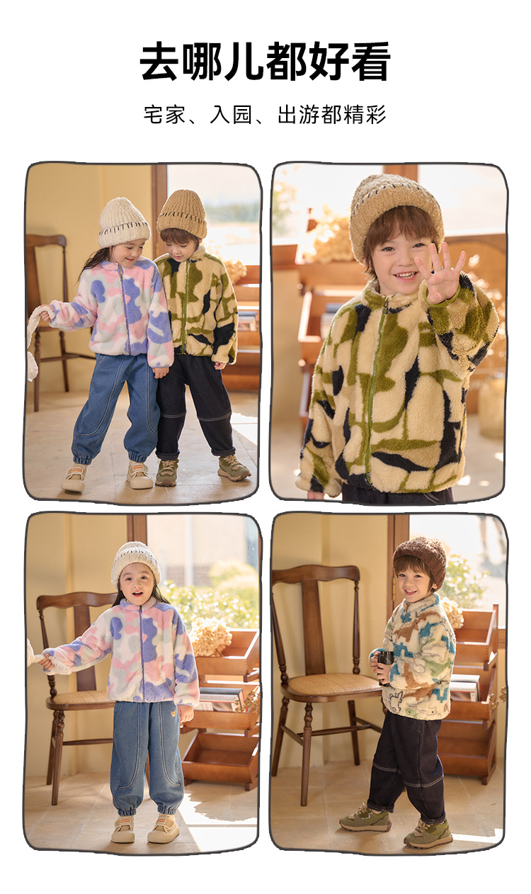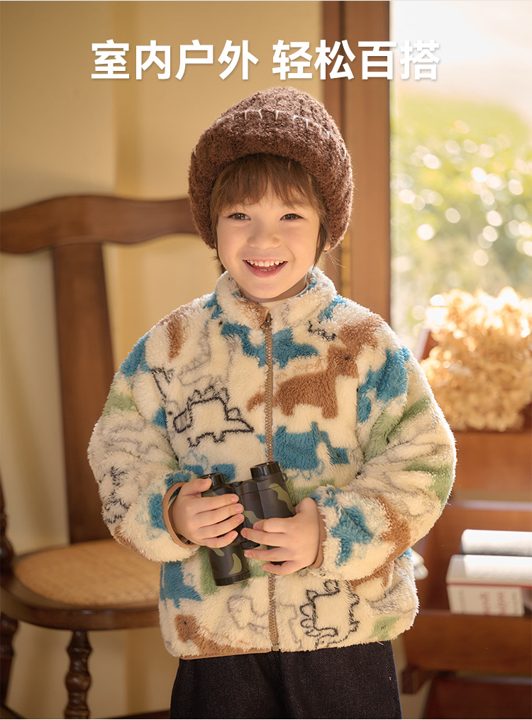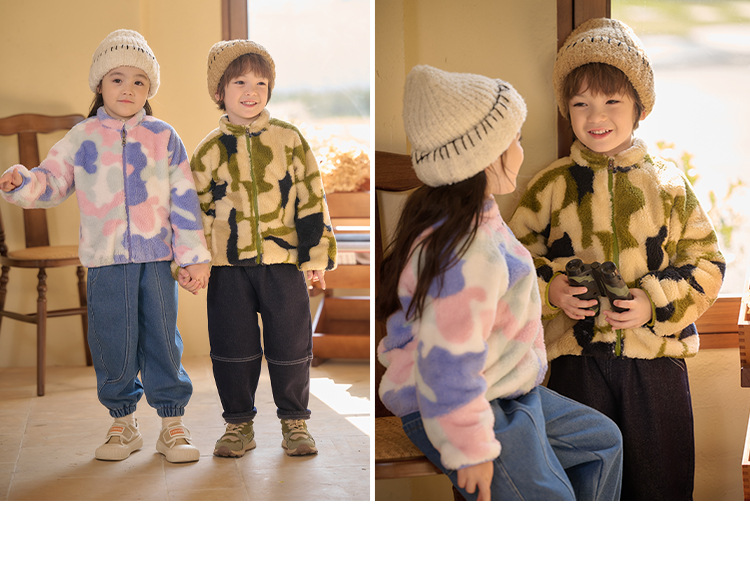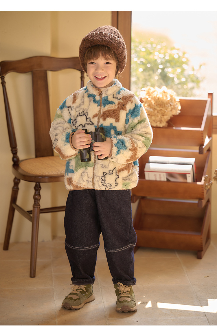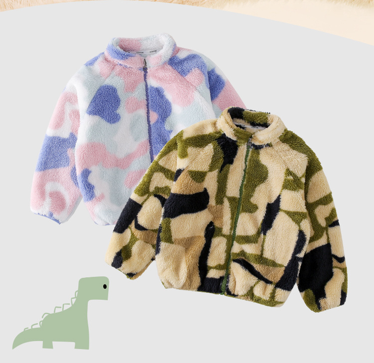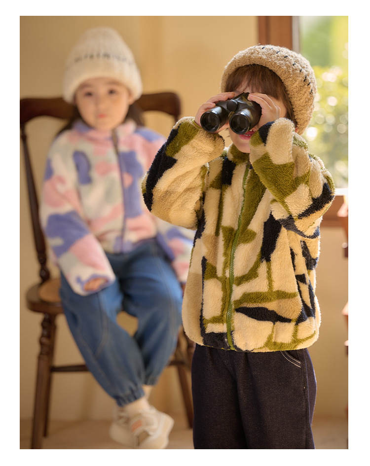 Mianhuatang 아동복 어린이 두꺼운 니트 벨벳 재킷 2024 새로운 스타일 따뜻한 만화 캐주얼 어린이 탑스토어 가기