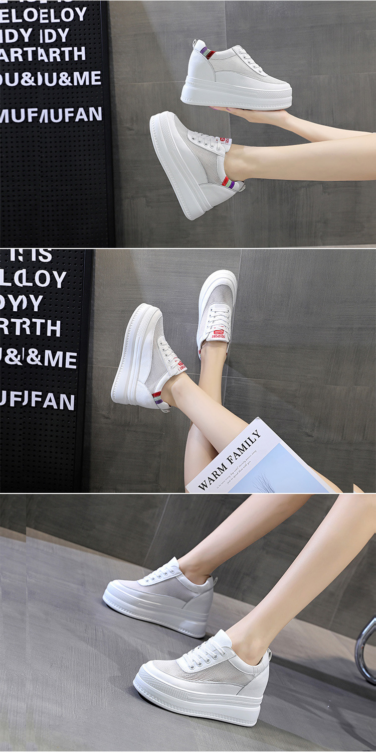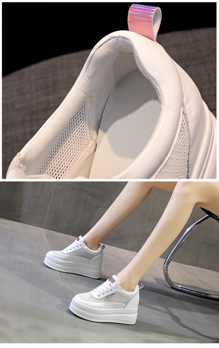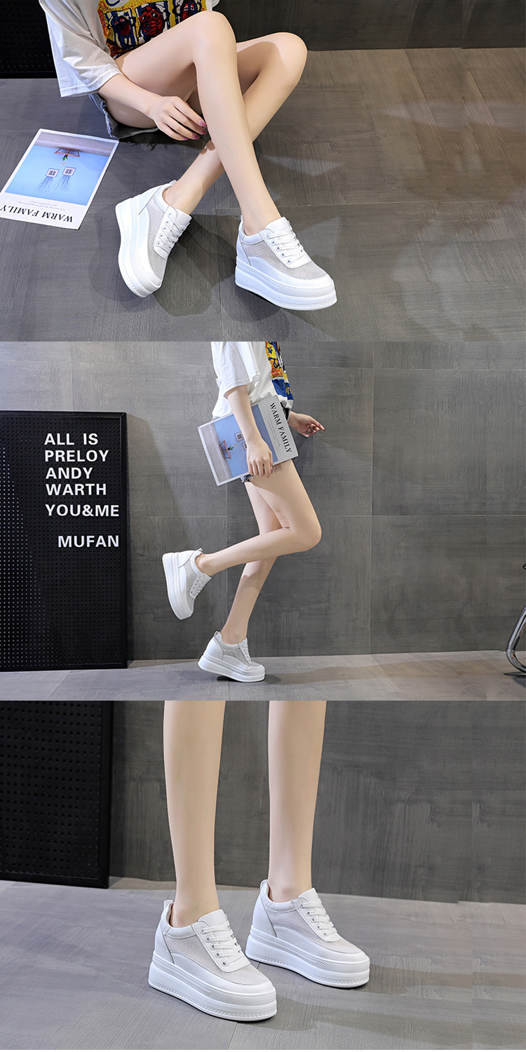 2025 여성 신발 신상 사계절용 플랫폼 두꺼운 밑창 키높이 천연 가죽 여성 신발 메쉬 화이트 슈즈 캐주얼 운동화스토어 가기