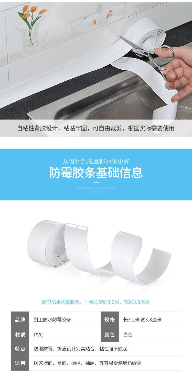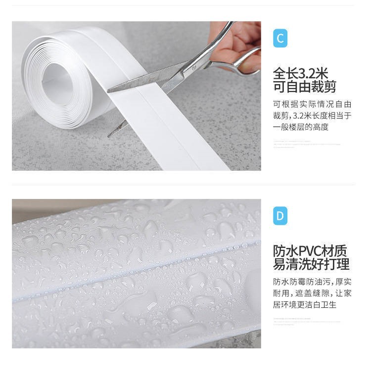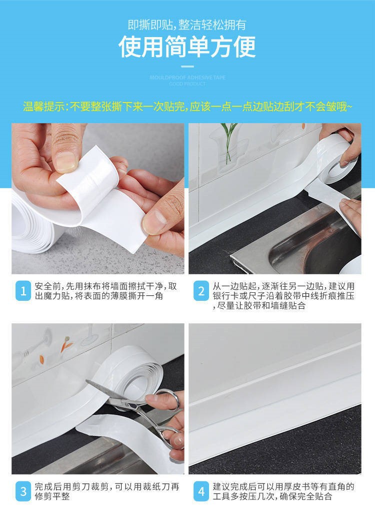 주방 방수 및 곰팡이 방지 테이프, 싱크대 간격 채우기, 아름다운 솔기 스티커, 창 솔기, 화장실 코너 라인, 투명 씰링 스트립 QC스토어 가기