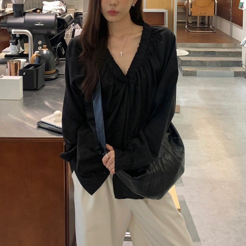 프렌치 블랙 셔츠 여성 이른 봄 새로운 디자인 하이 엔드 셔츠 루즈한 긴팔 기질 탑스토어 가기