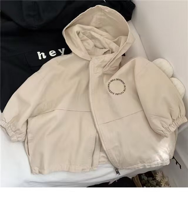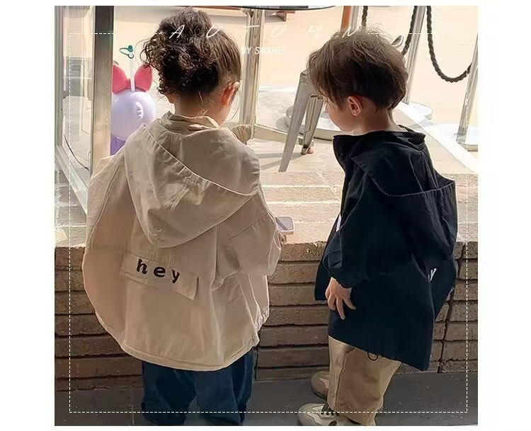 일본과 한국 ~ 하이 퀄리티 한국 팬 어린이 편지 후드 코트 소년 소녀 아기 잘 생긴 코트 봄 가을 패션 어린이스토어 가기
