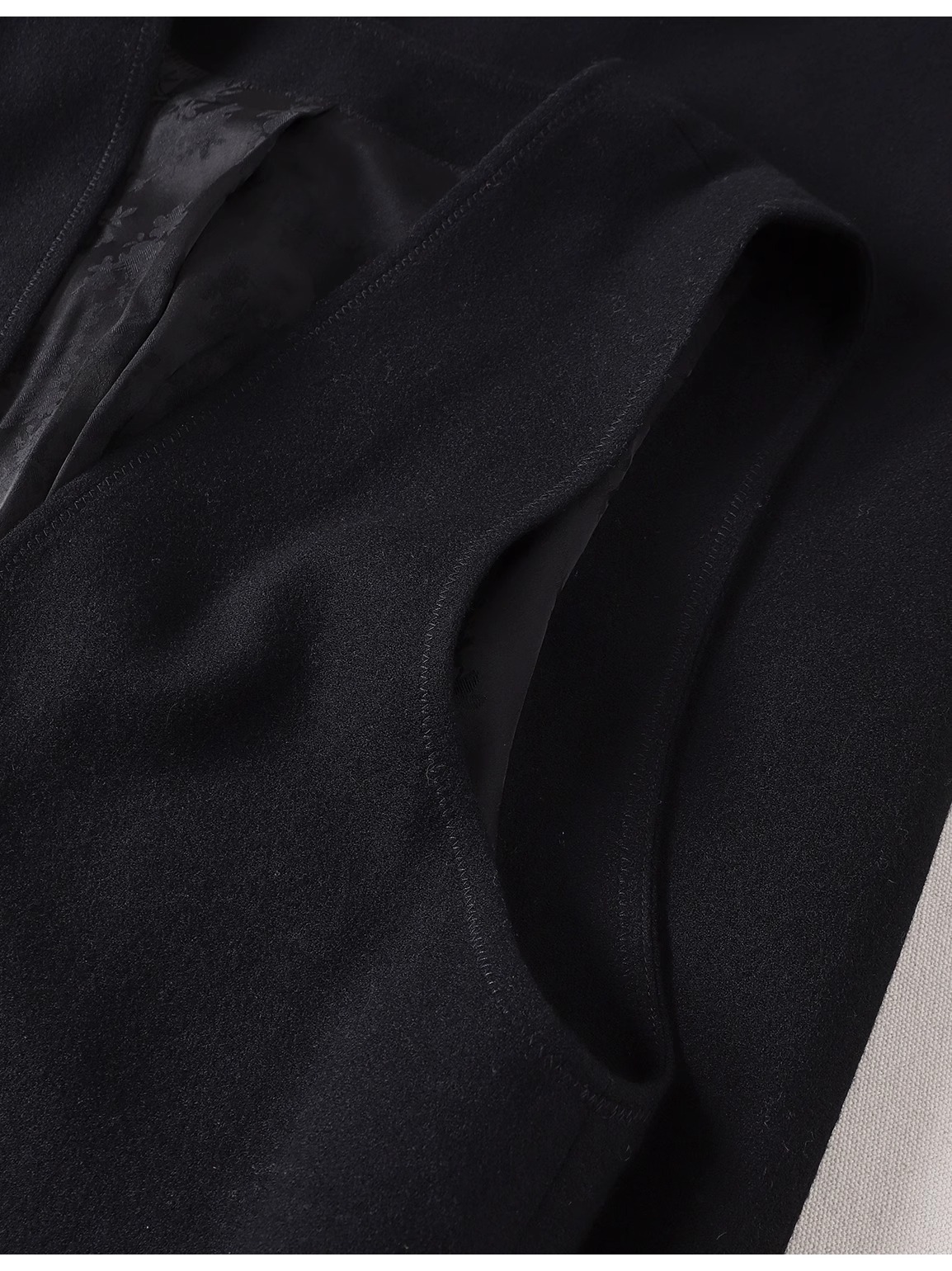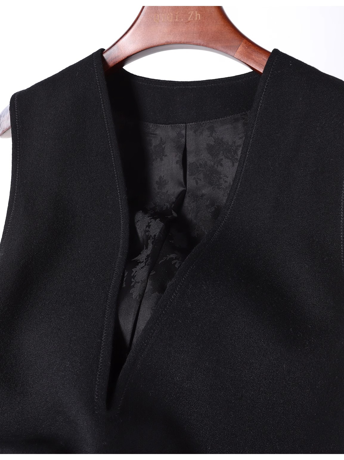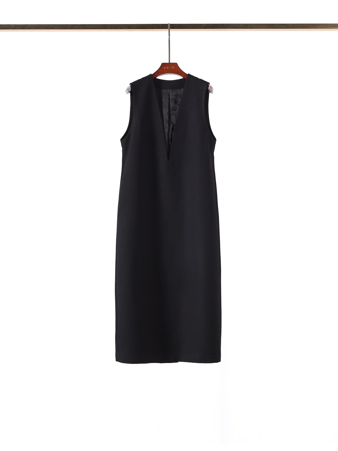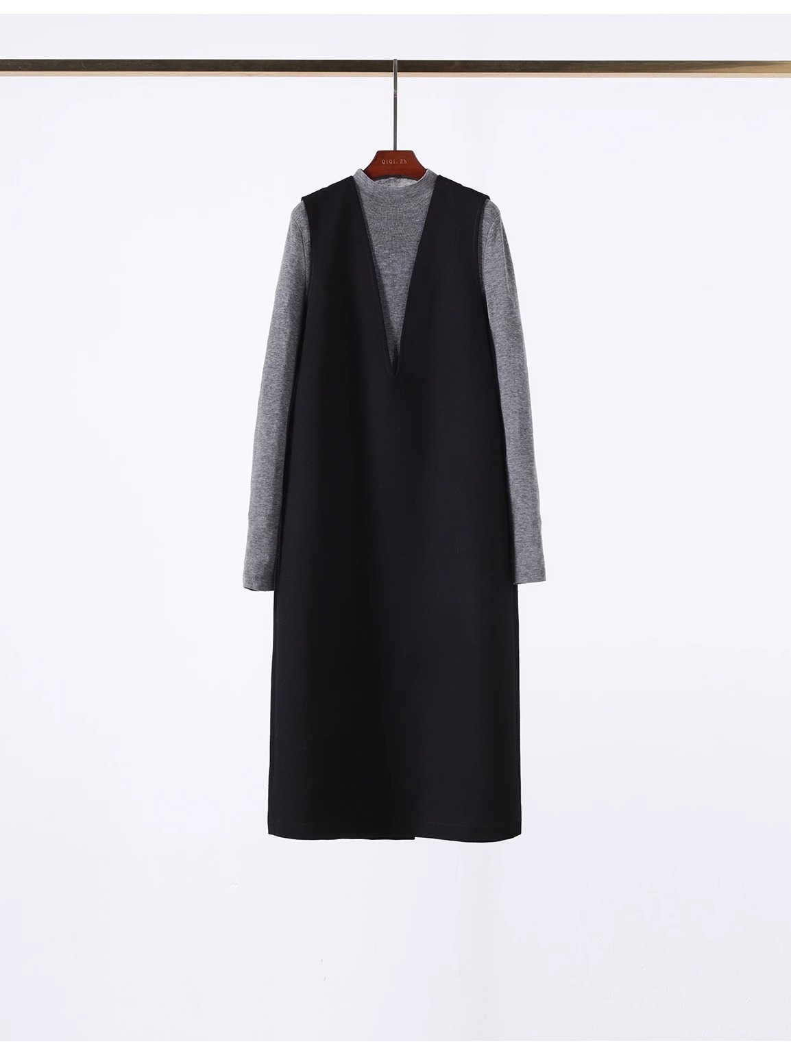 클래식하고 영원한 스타일의 딥 브이넥 워스티드 울 크레이프 다용도 롱 베스트 드레스