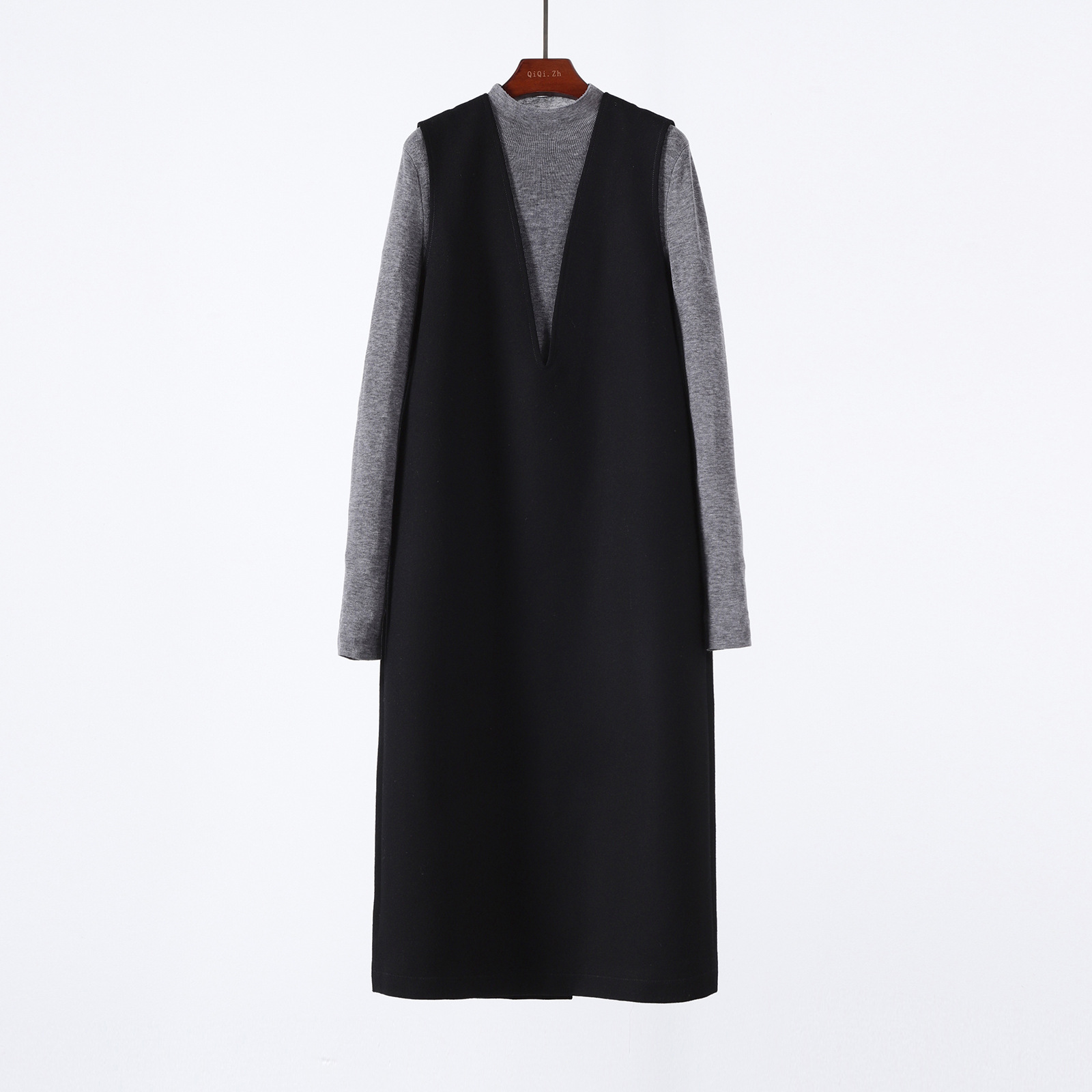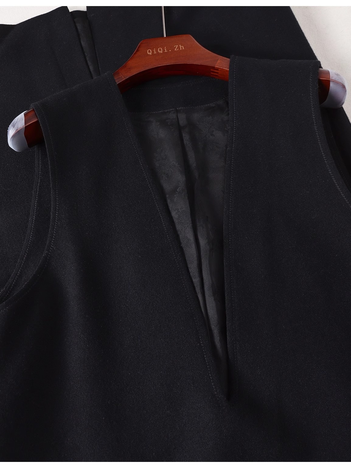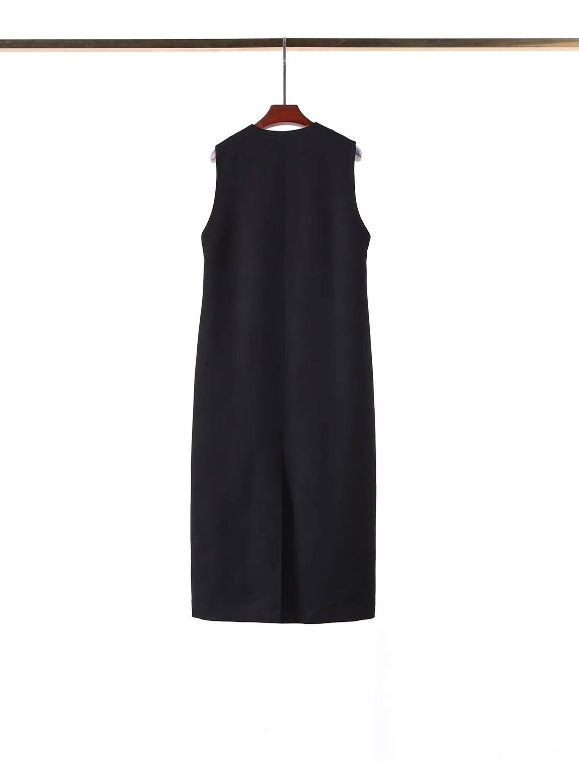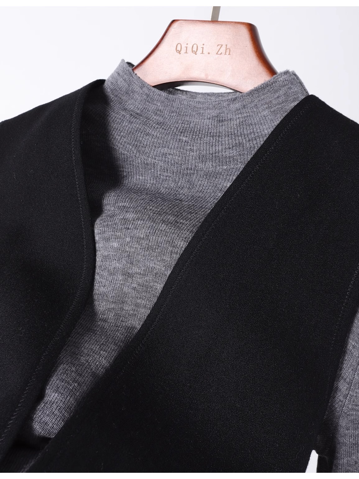 클래식하고 영원한 스타일의 딥 브이넥 워스티드 울 크레이프 다용도 롱 베스트 드레스