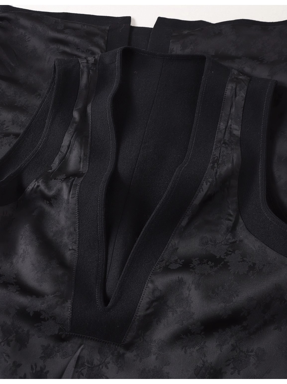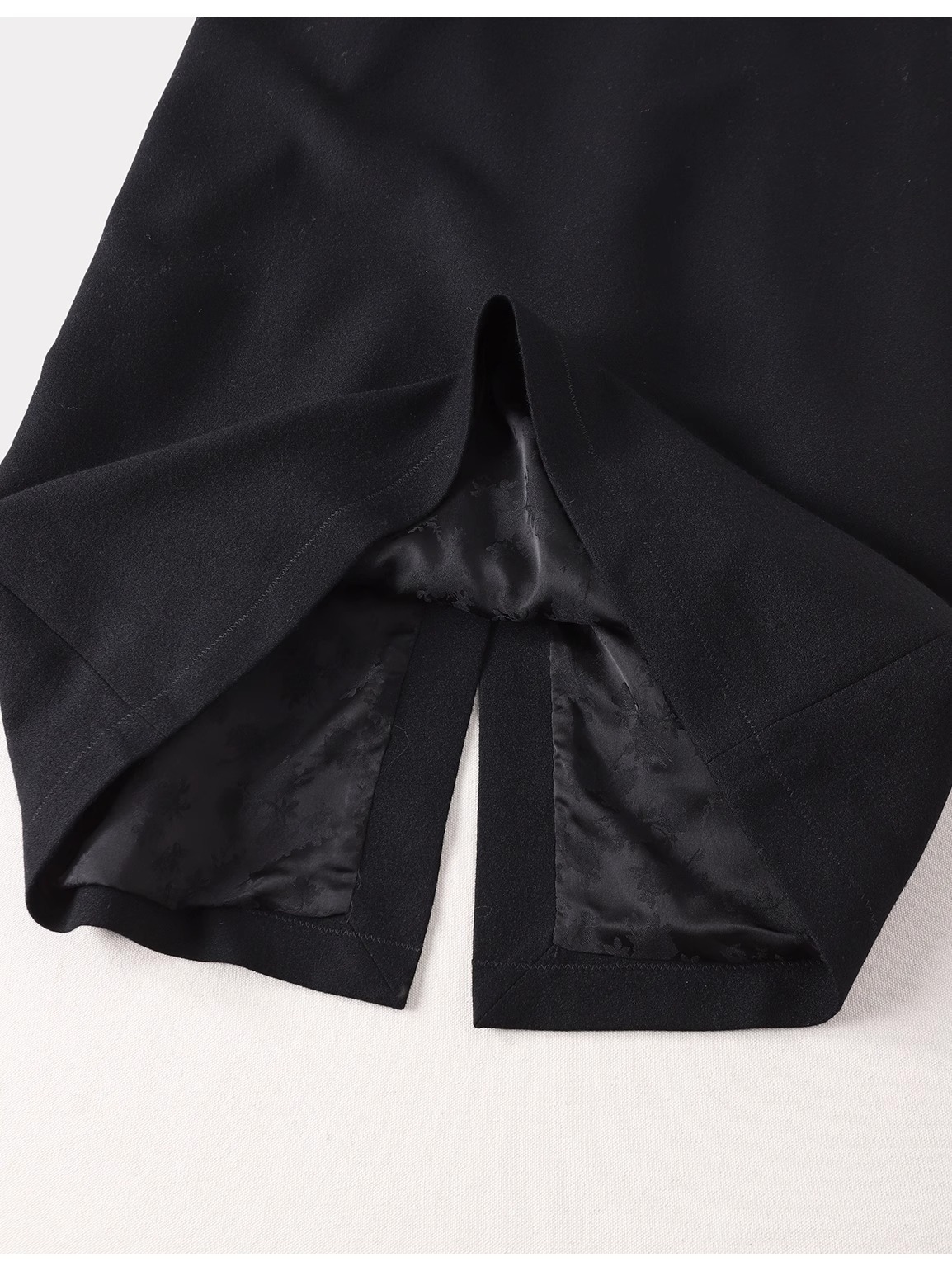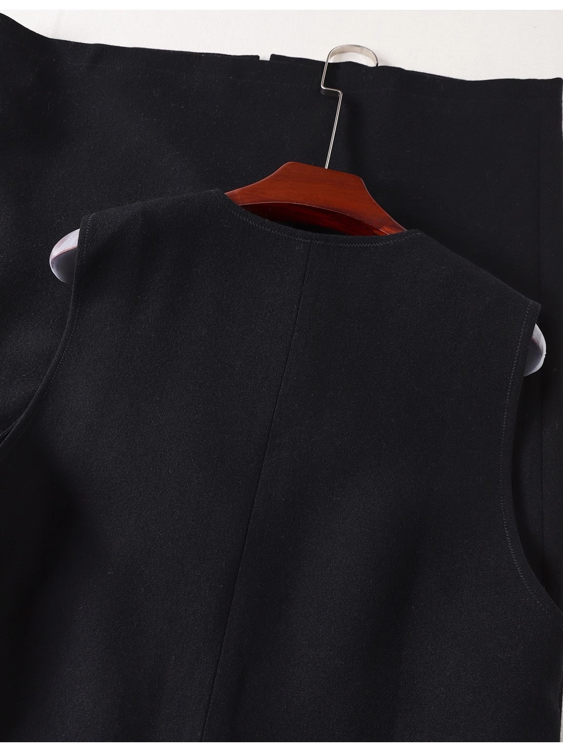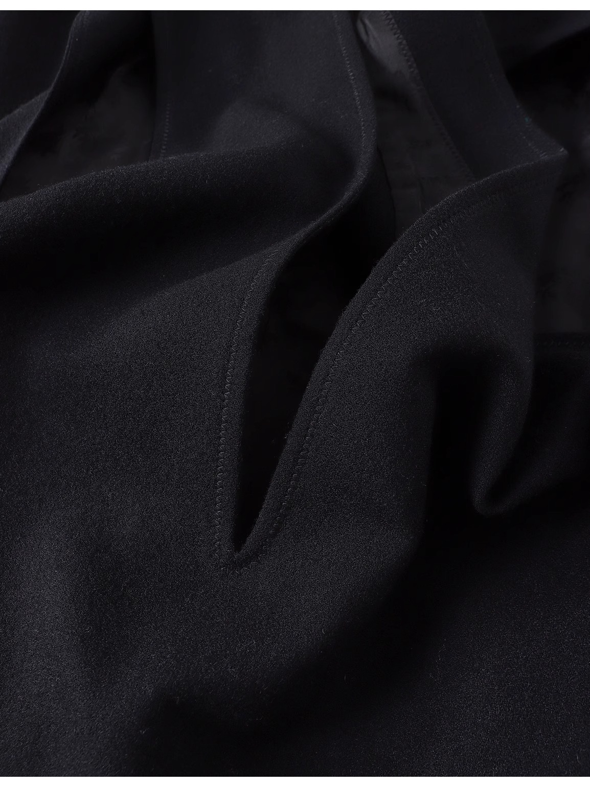클래식하고 영원한 스타일의 딥 브이넥 워스티드 울 크레이프 다용도 롱 베스트 드레스