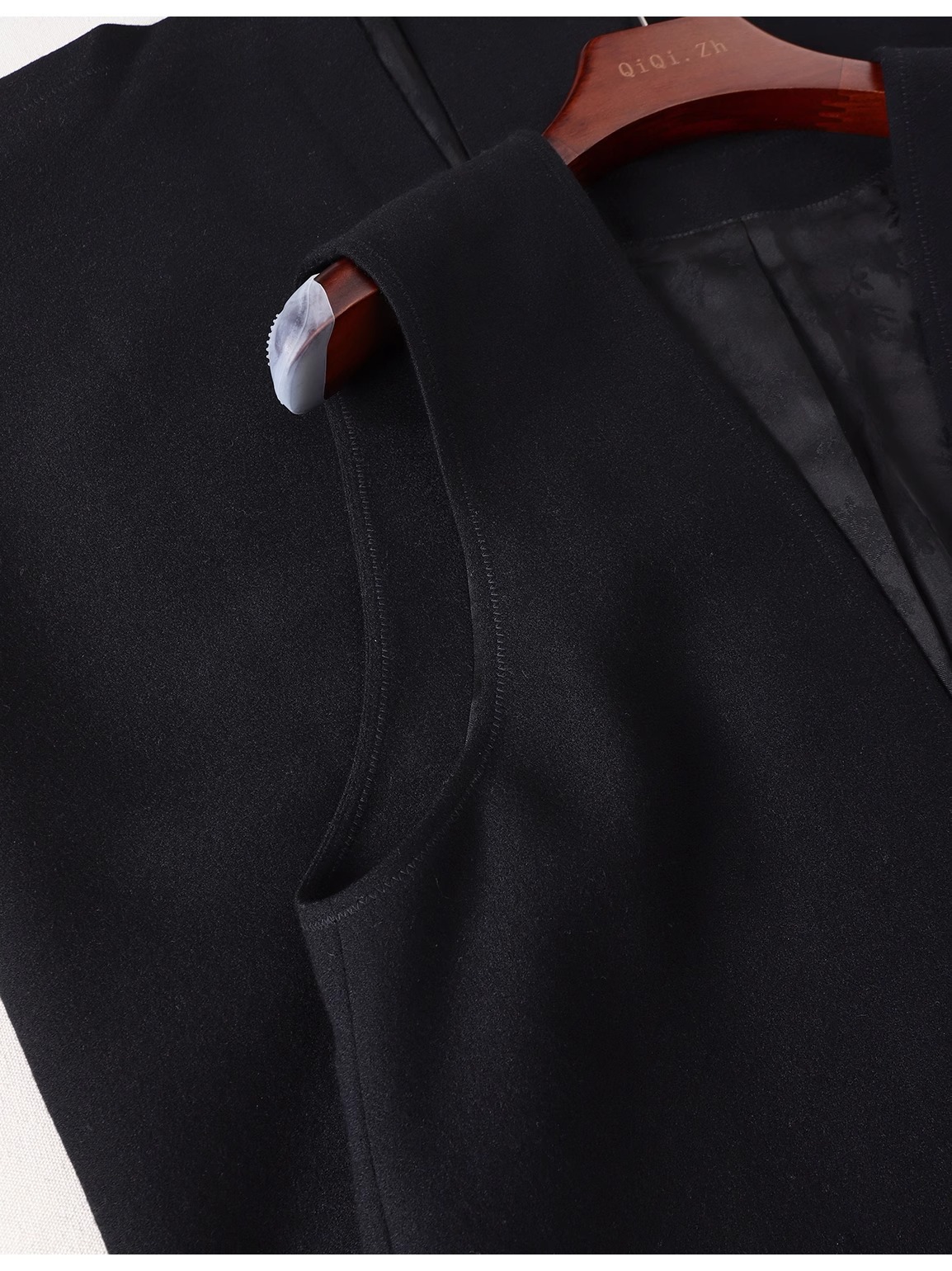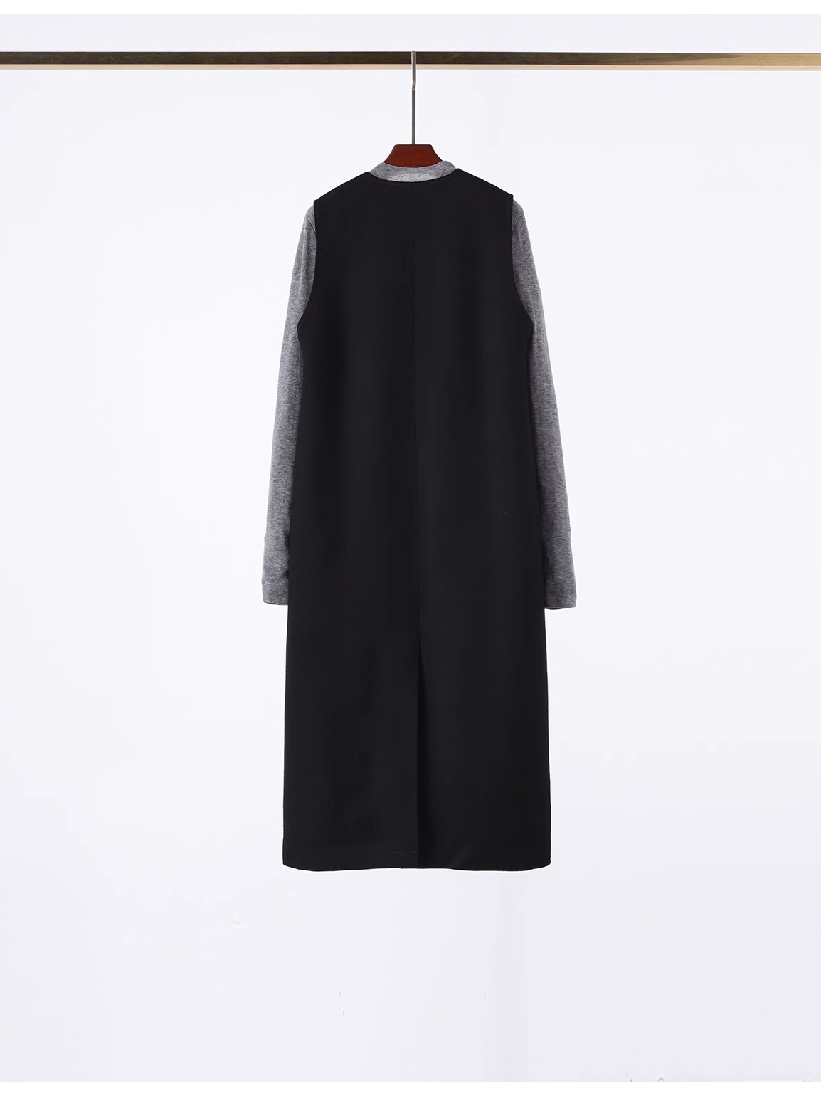 클래식하고 영원한 스타일의 딥 브이넥 워스티드 울 크레이프 다용도 롱 베스트 드레스스토어 가기