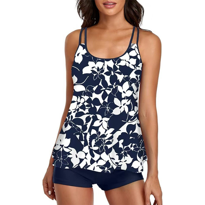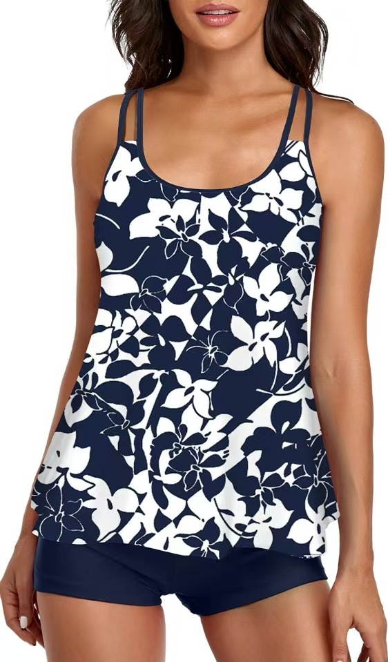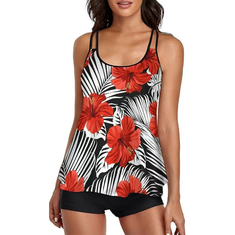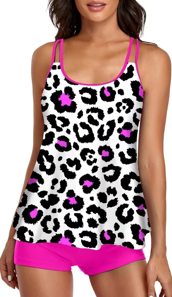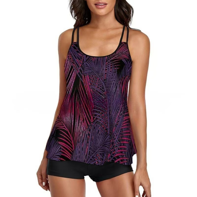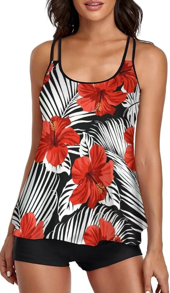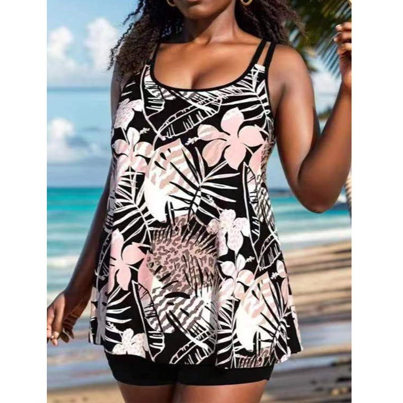 유럽과 미국의 핫 세일 플러스 사이즈 스플릿 수영복 여성 크로스 보더 카미솔 플랫 앵글 수영복 탄키니 루즈 프린트 수영복스토어 가기