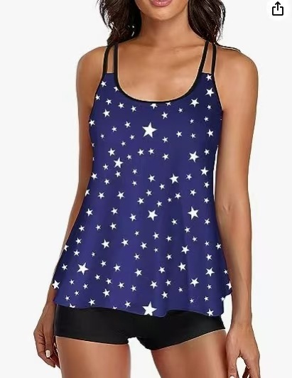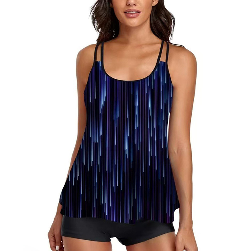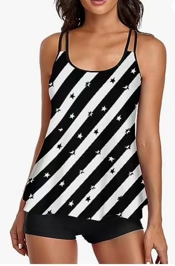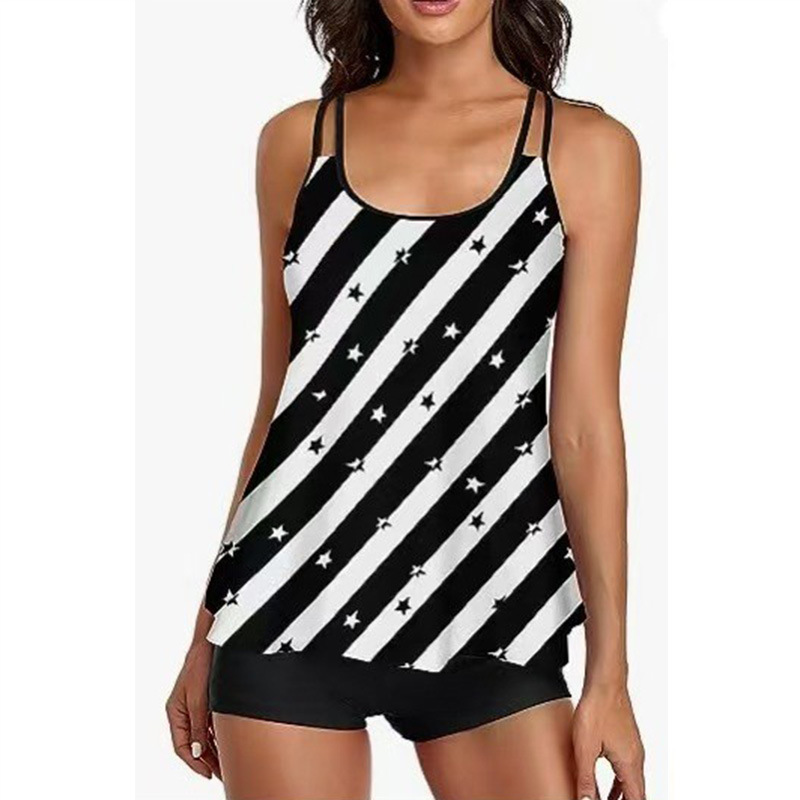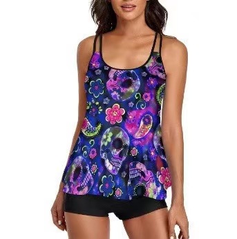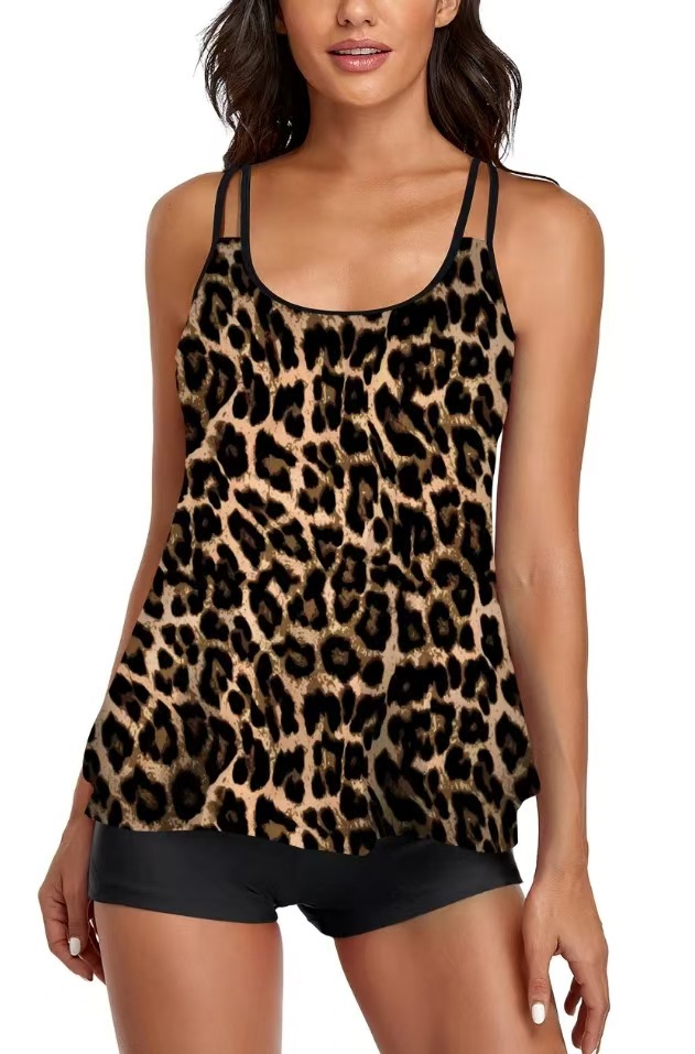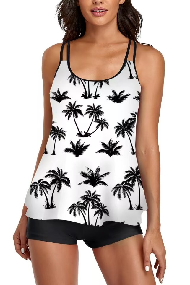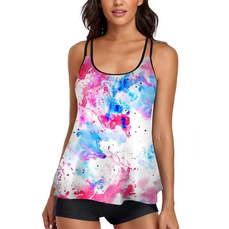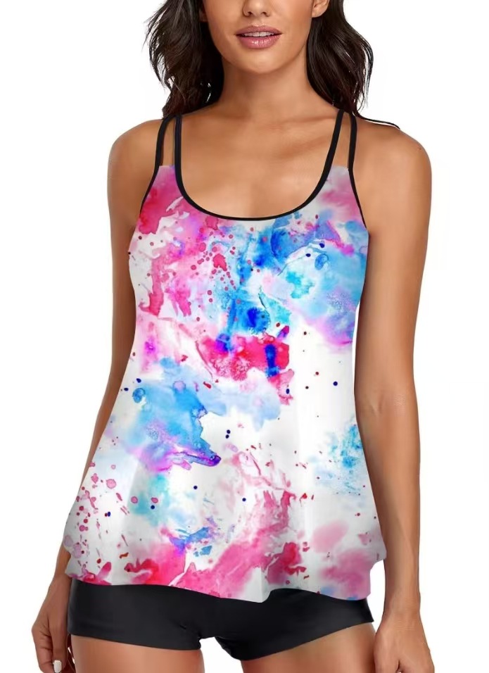 유럽과 미국의 핫 세일 플러스 사이즈 스플릿 수영복 여성 크로스 보더 카미솔 플랫 앵글 수영복 탄키니 루즈 프린트 수영복스토어 가기