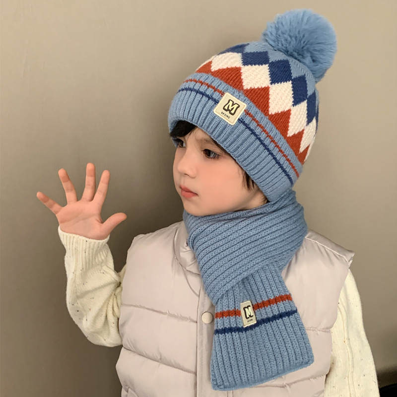 가을과 겨울에 따뜻한 어린이 모자 스카프 소년과 소녀를위한 2 조각 세트 큰 아이들 두꺼운 풀오버 캡 2881-20