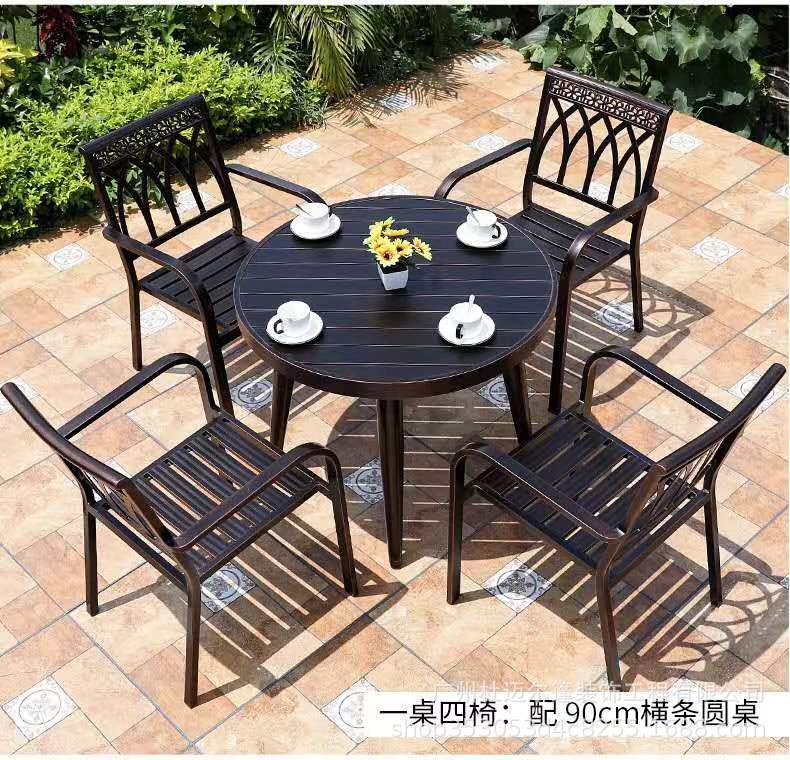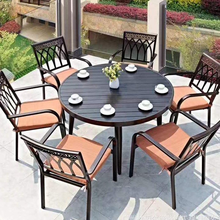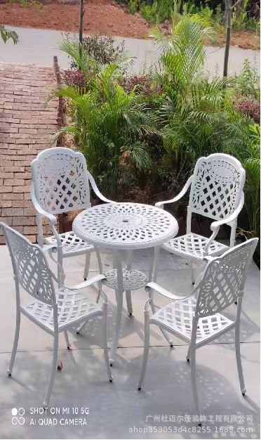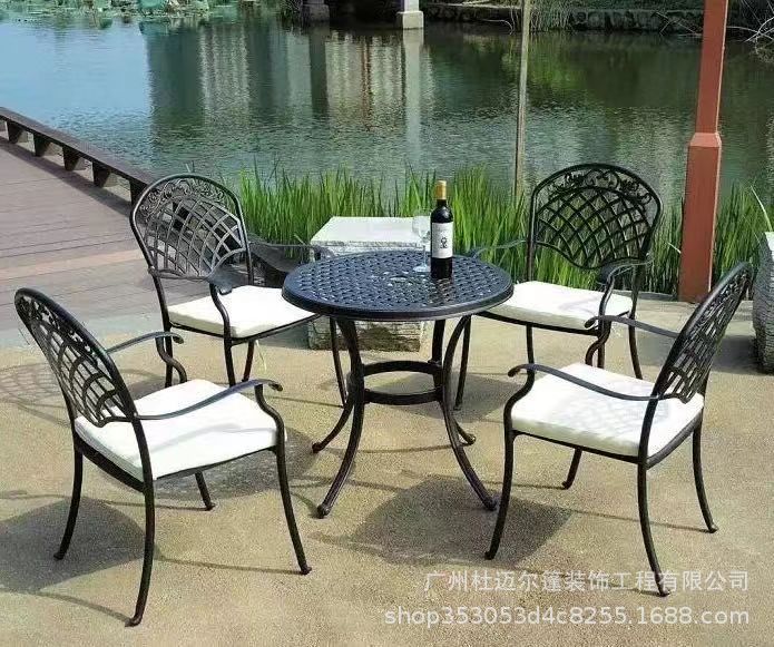 야외 테이블과 의자 안뜰 정원 레저 발코니 알루미늄 합금 주조 알루미늄 철 야외 유럽 스타일 빌라 테이블 및 의자