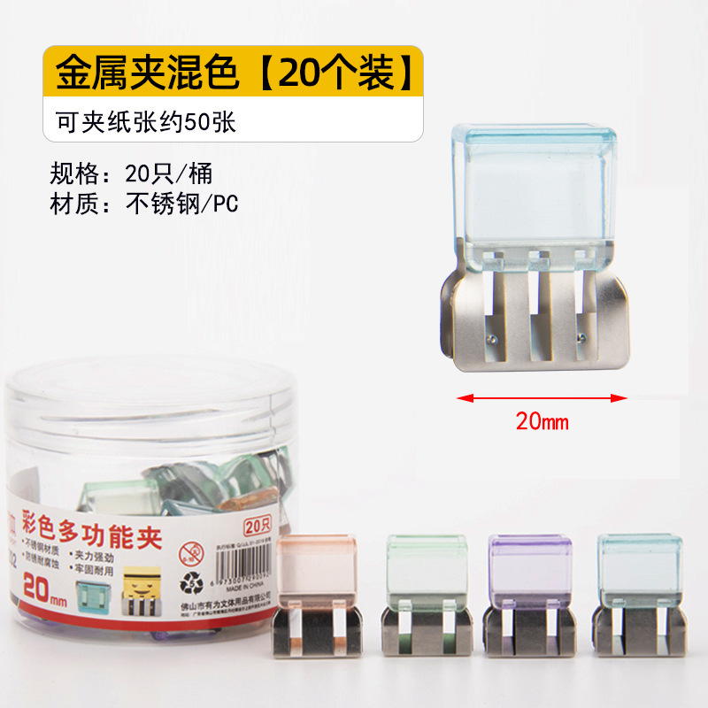 • 20mm 금속 클립 혼합 색상 [20개 팩] 각각 약 50장의 용지를 담을 수 있습니다.