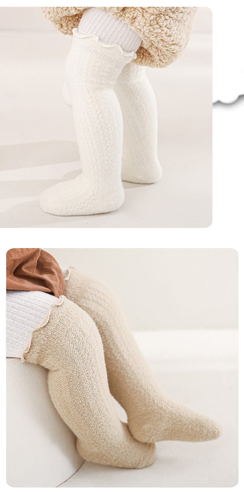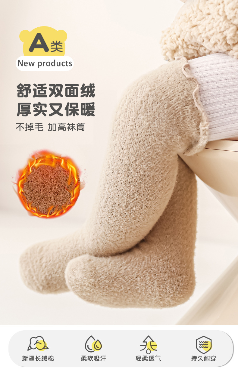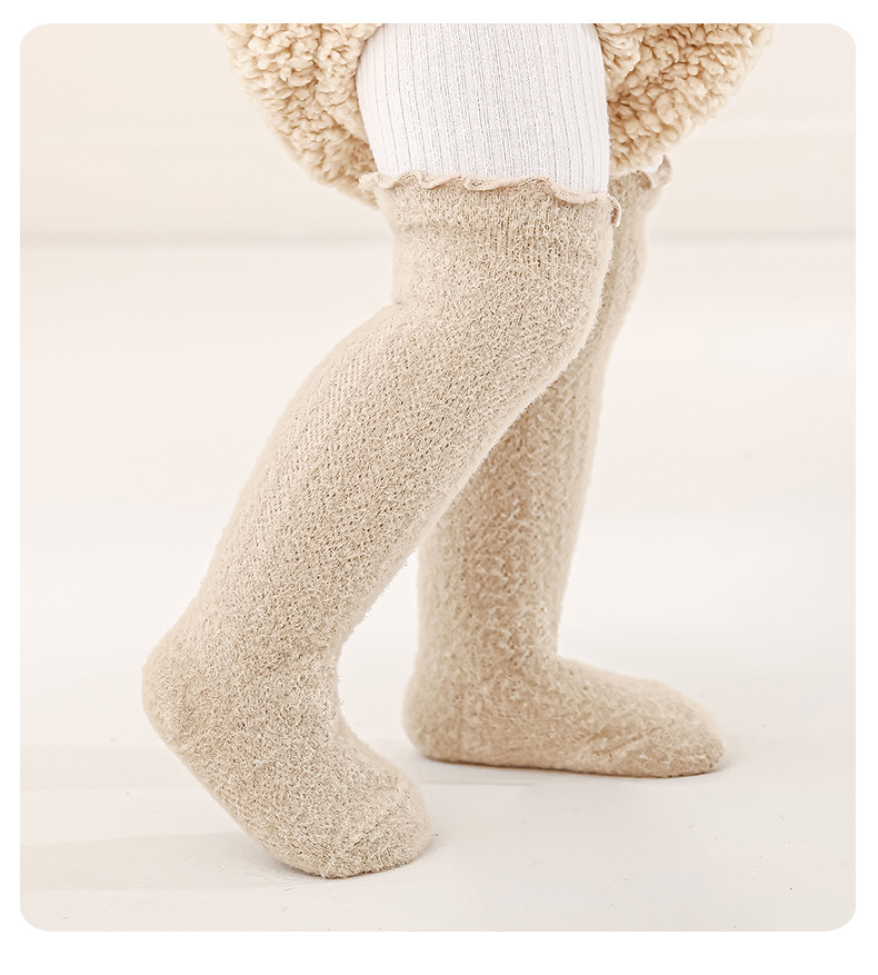 가을과 겨울 새로운 기모 두꺼운 아기 스타킹 한국 나무 귀 아기 무릎 양말 따뜻한 아기 양말