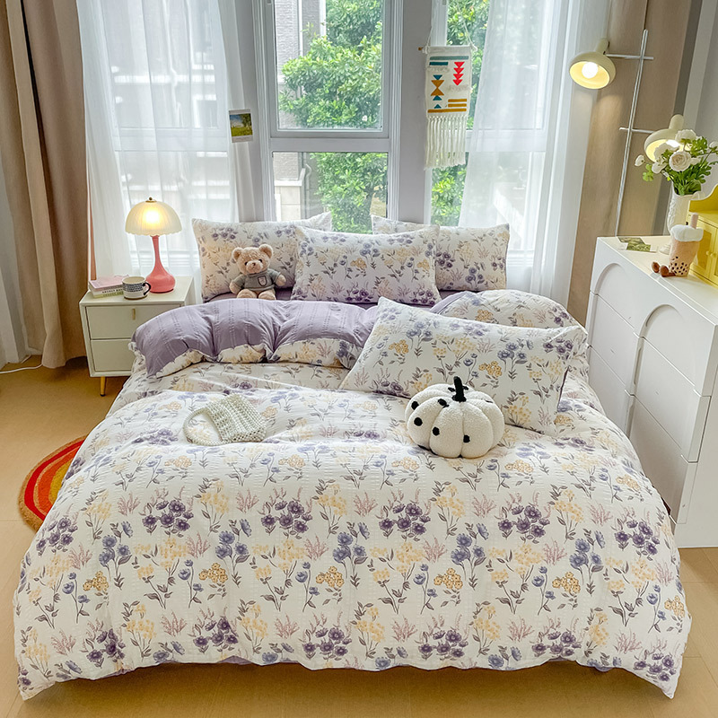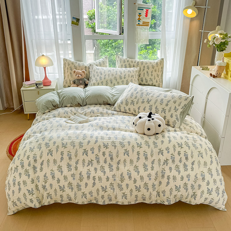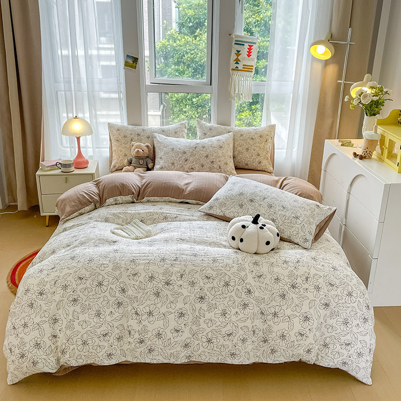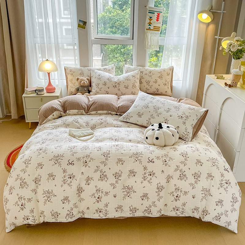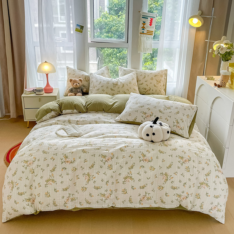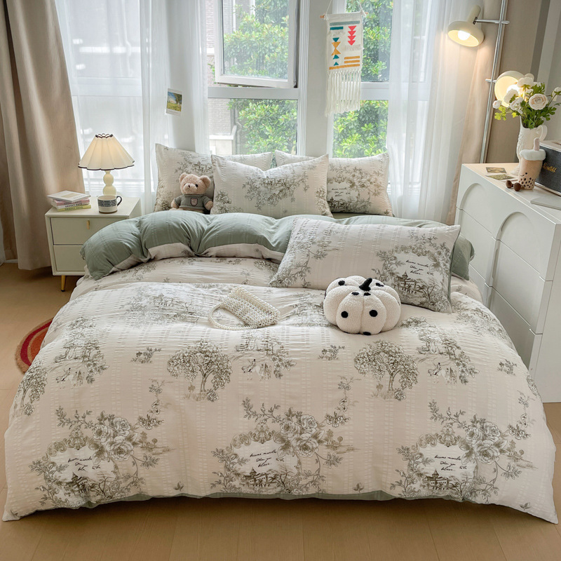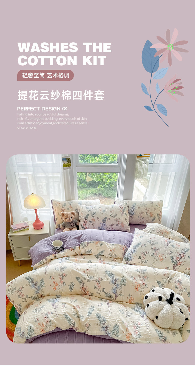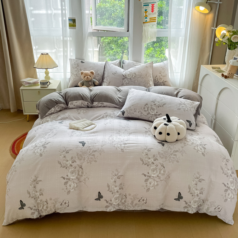 提花云纱棉四件套超柔印花水洗棉四件套小红书爆款学生宿舍三件套