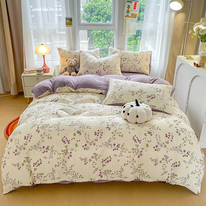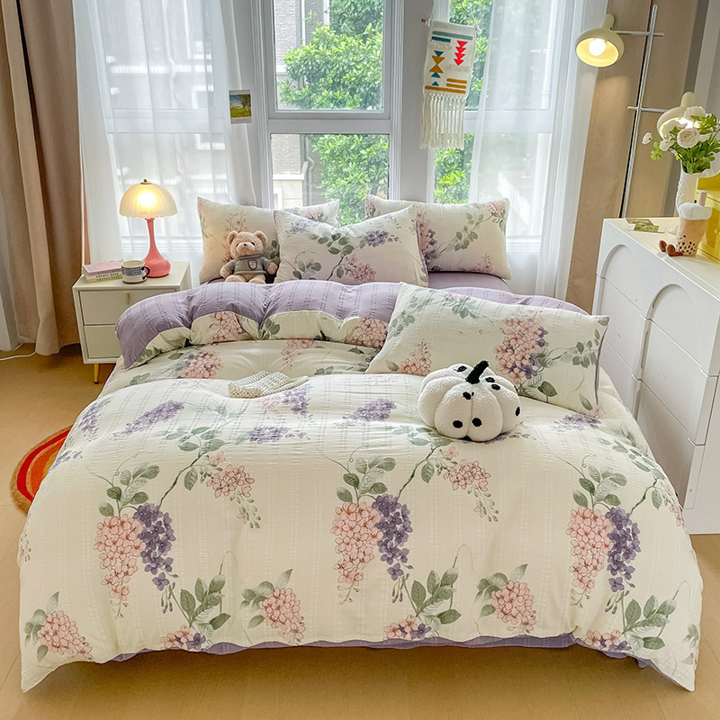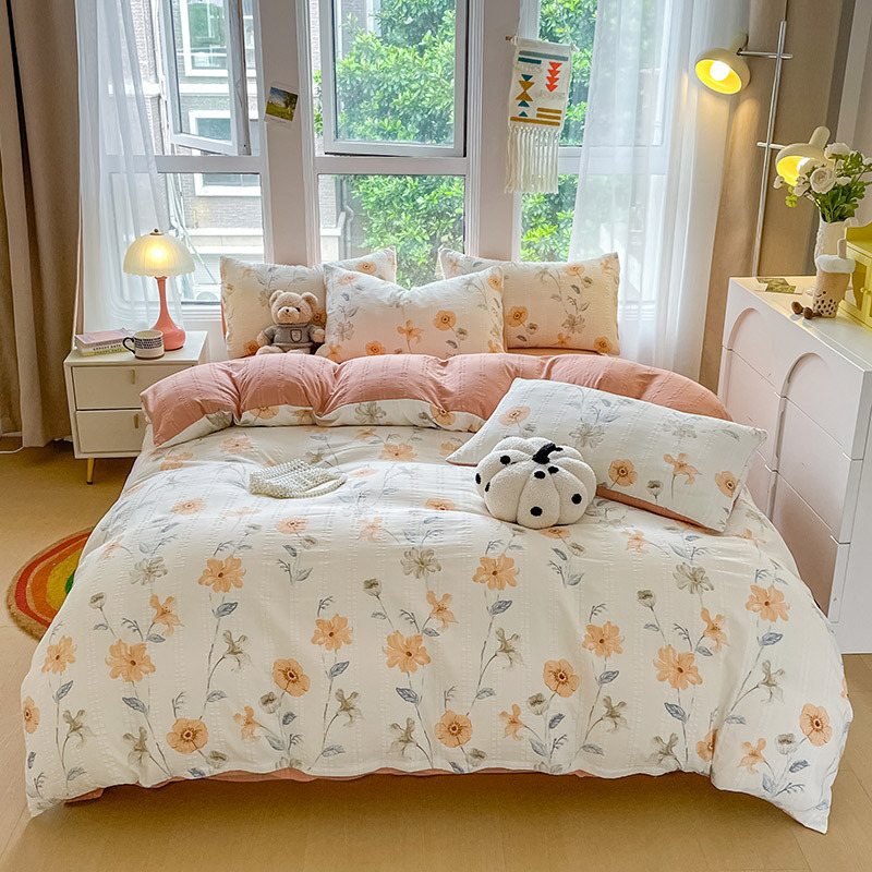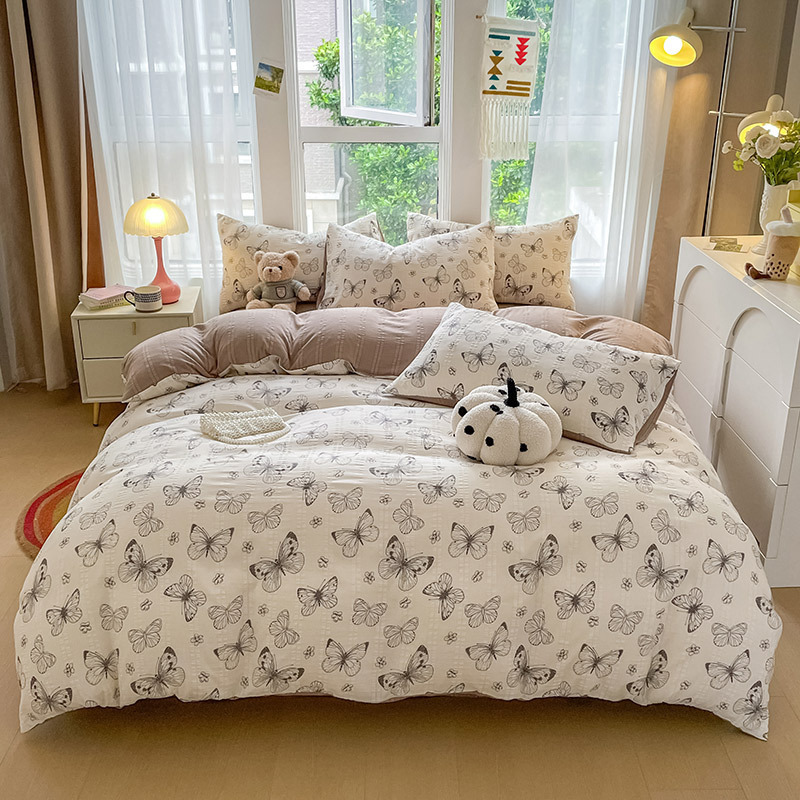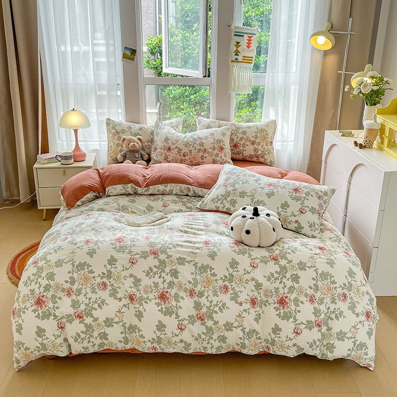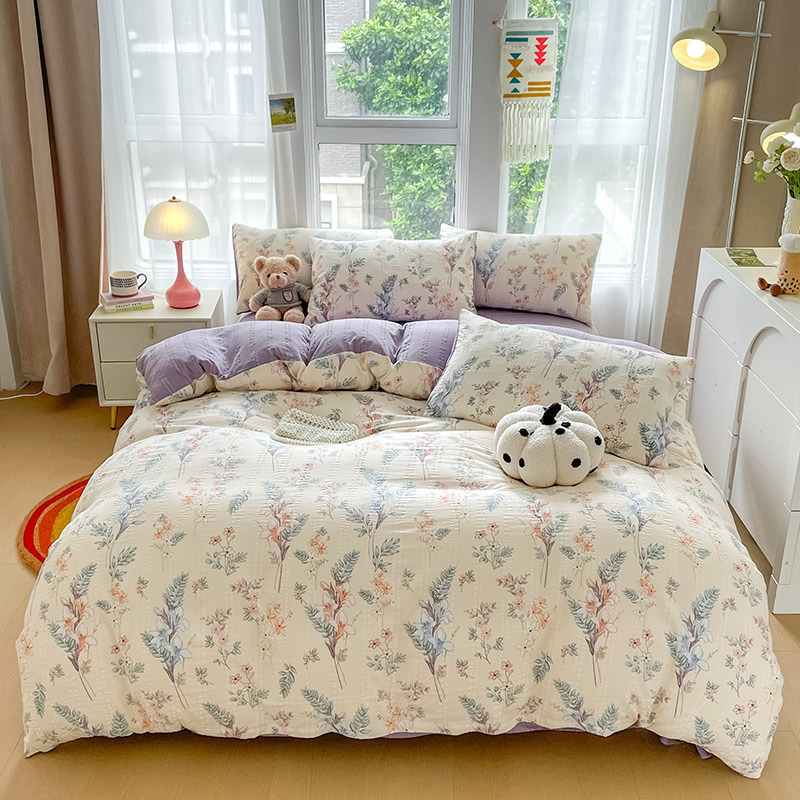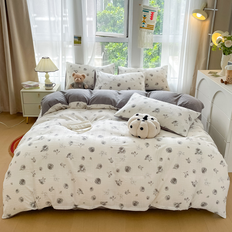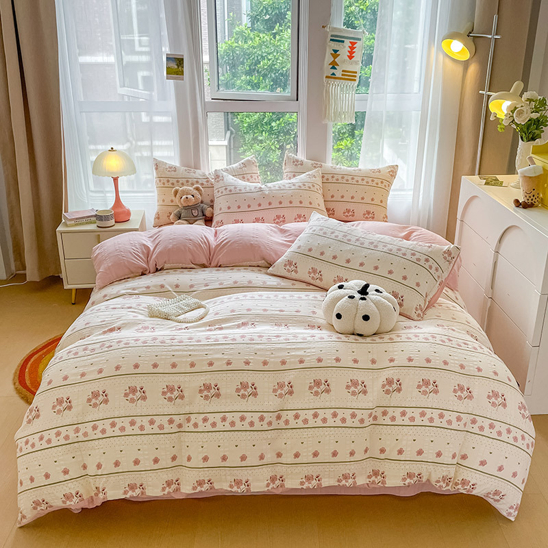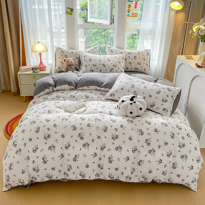 提花云纱棉四件套超柔印花水洗棉四件套小红书爆款学生宿舍三件套