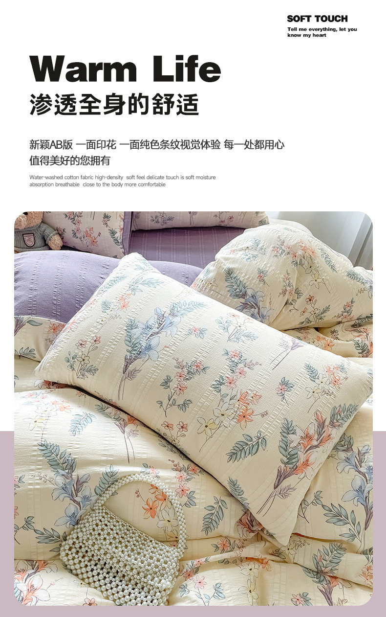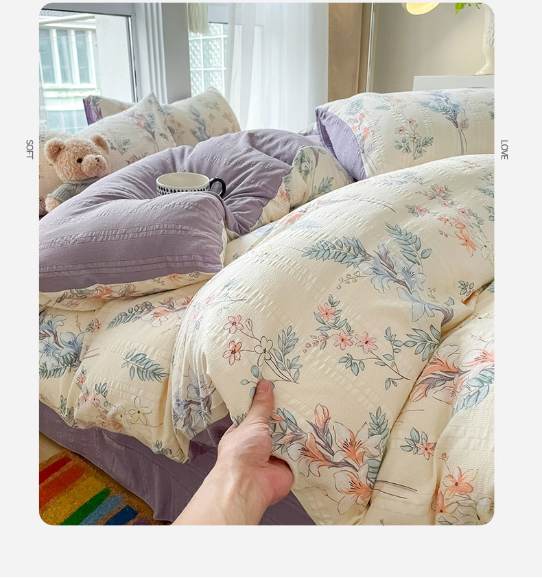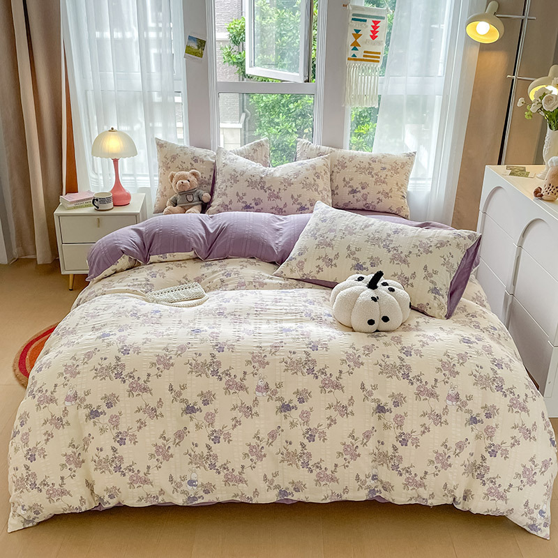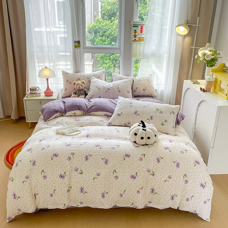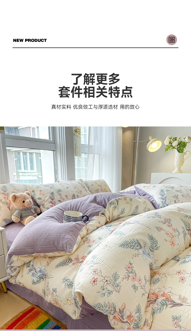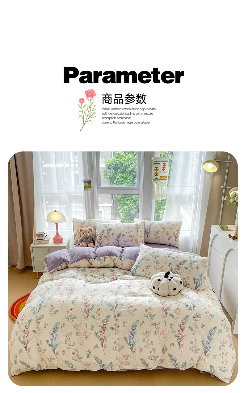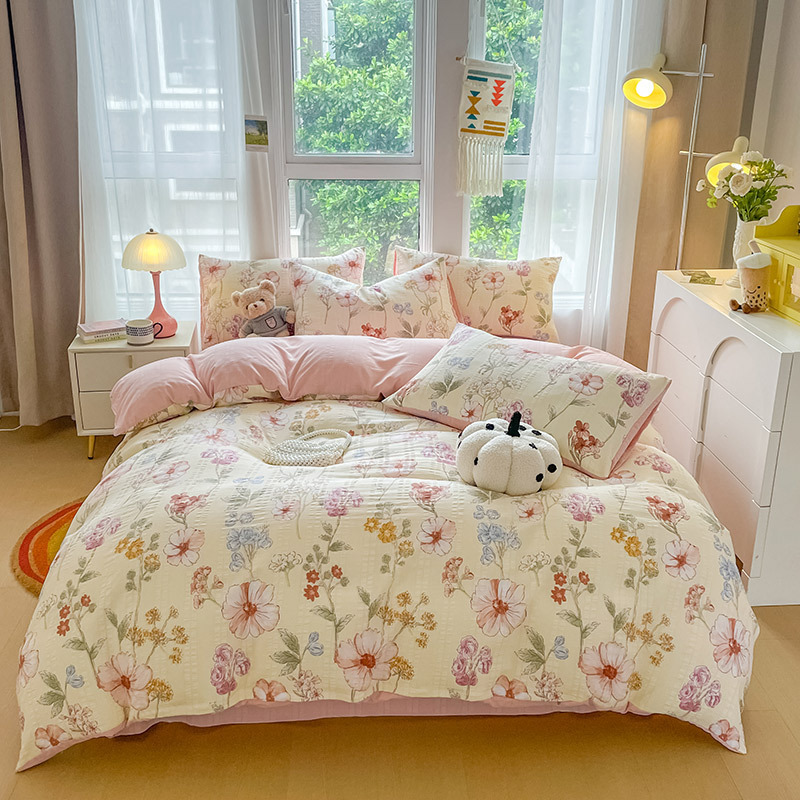 提花云纱棉四件套超柔印花水洗棉四件套小红书爆款学生宿舍三件套