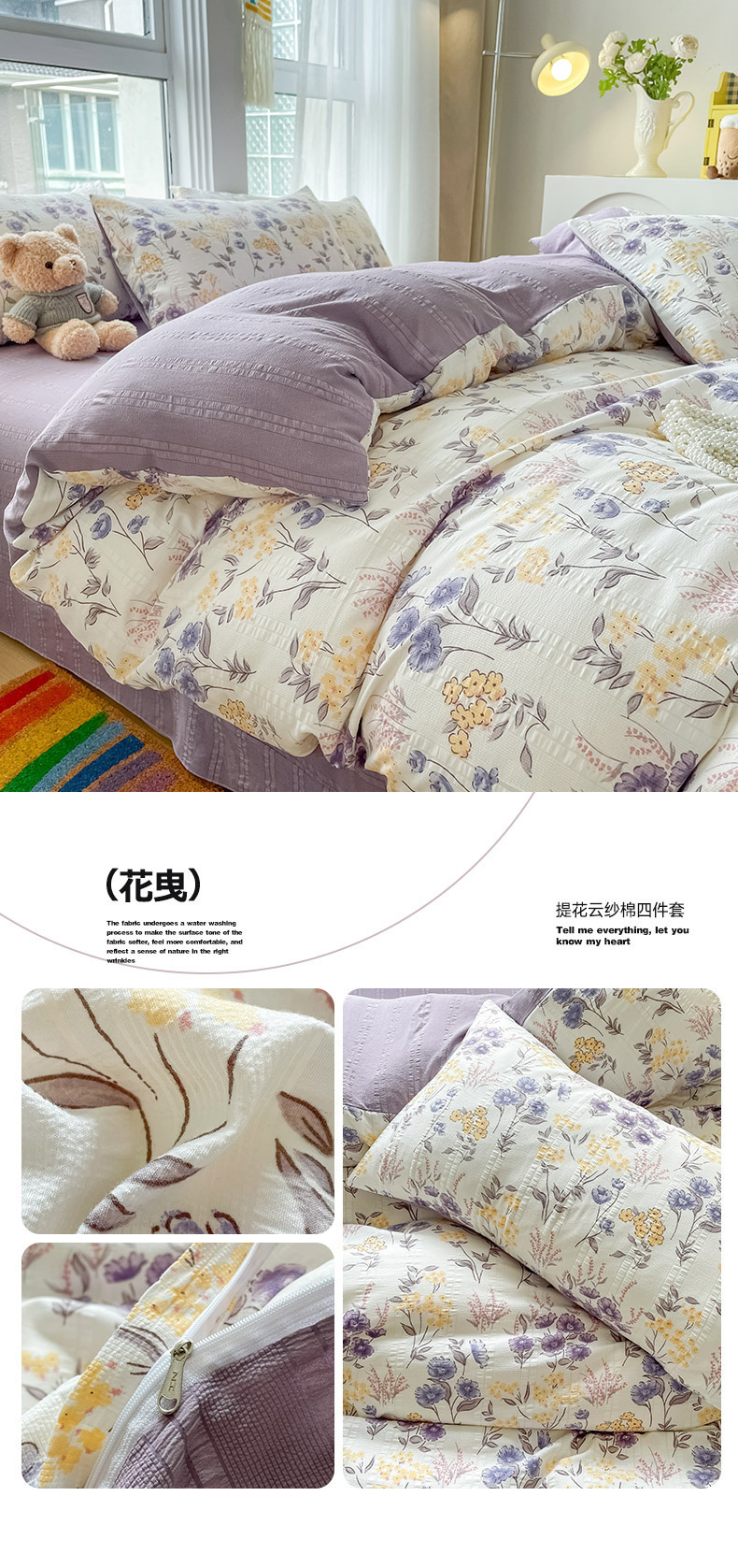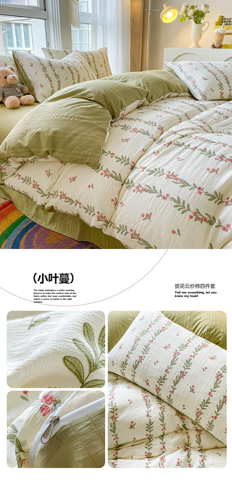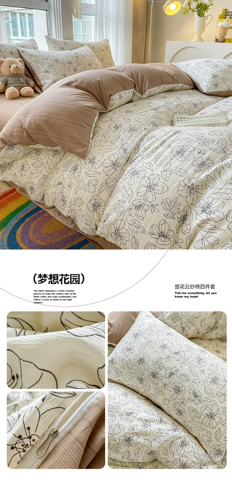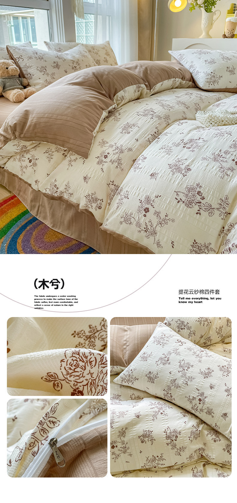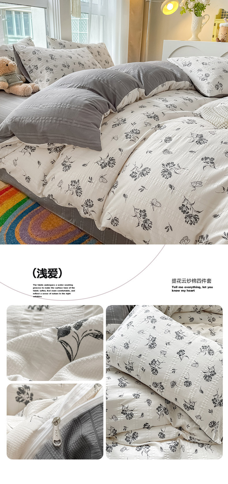 提花云纱棉四件套超柔印花水洗棉四件套小红书爆款学生宿舍三件套
