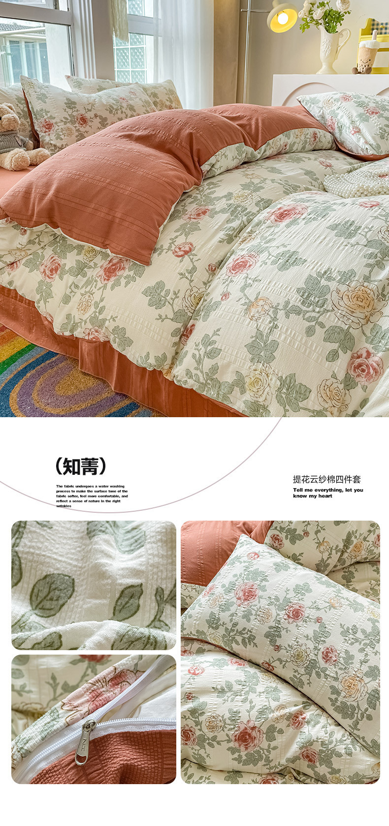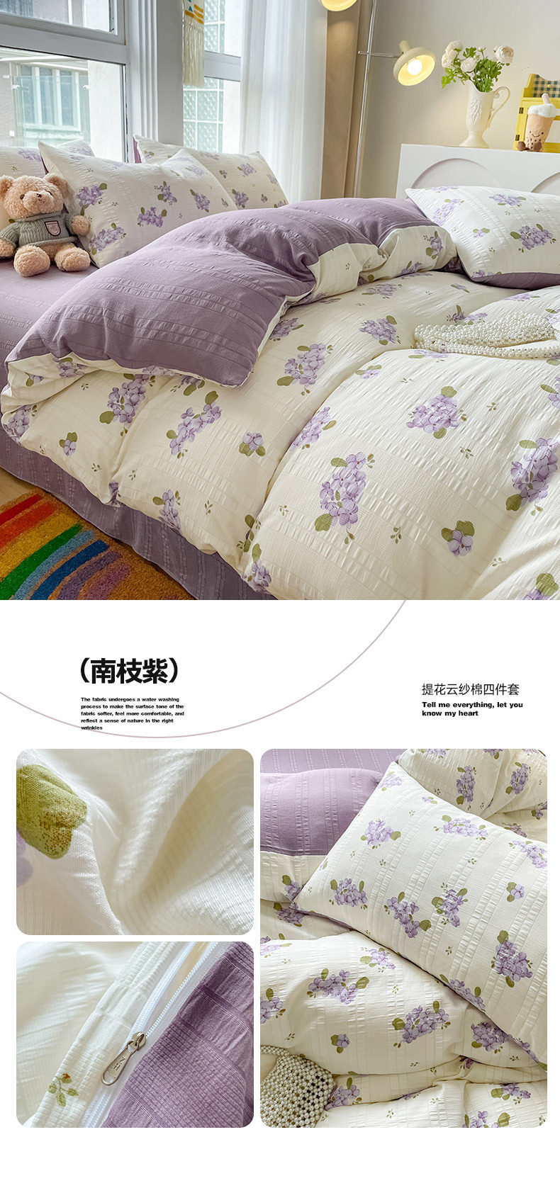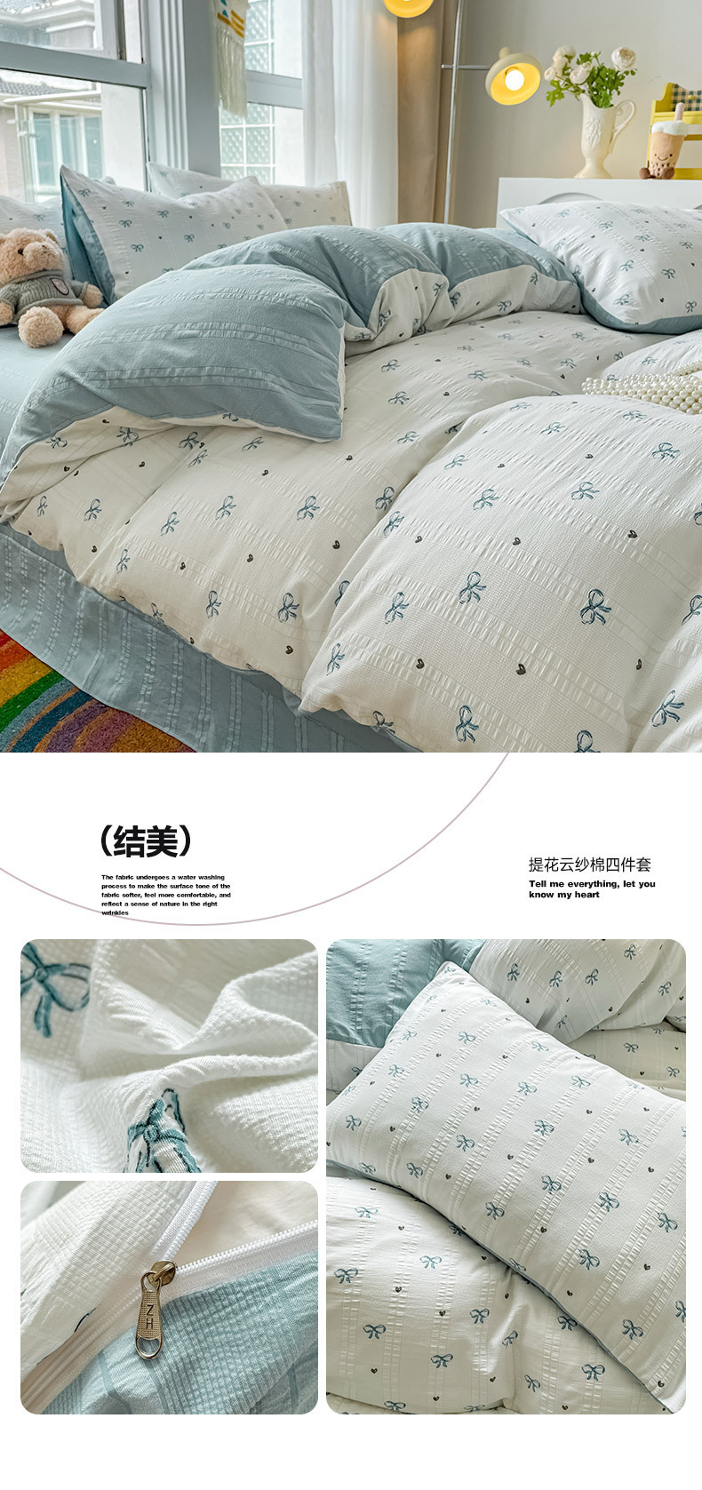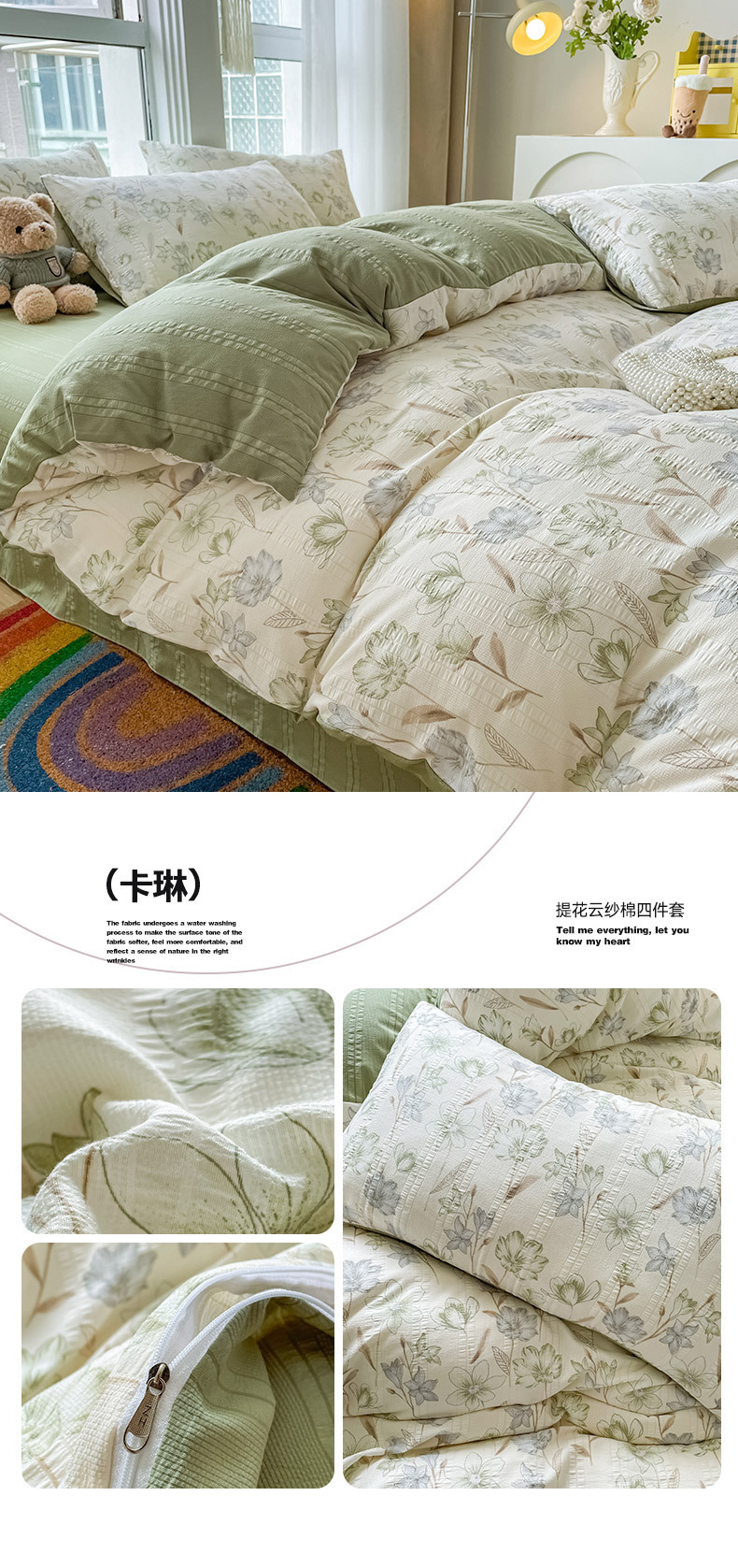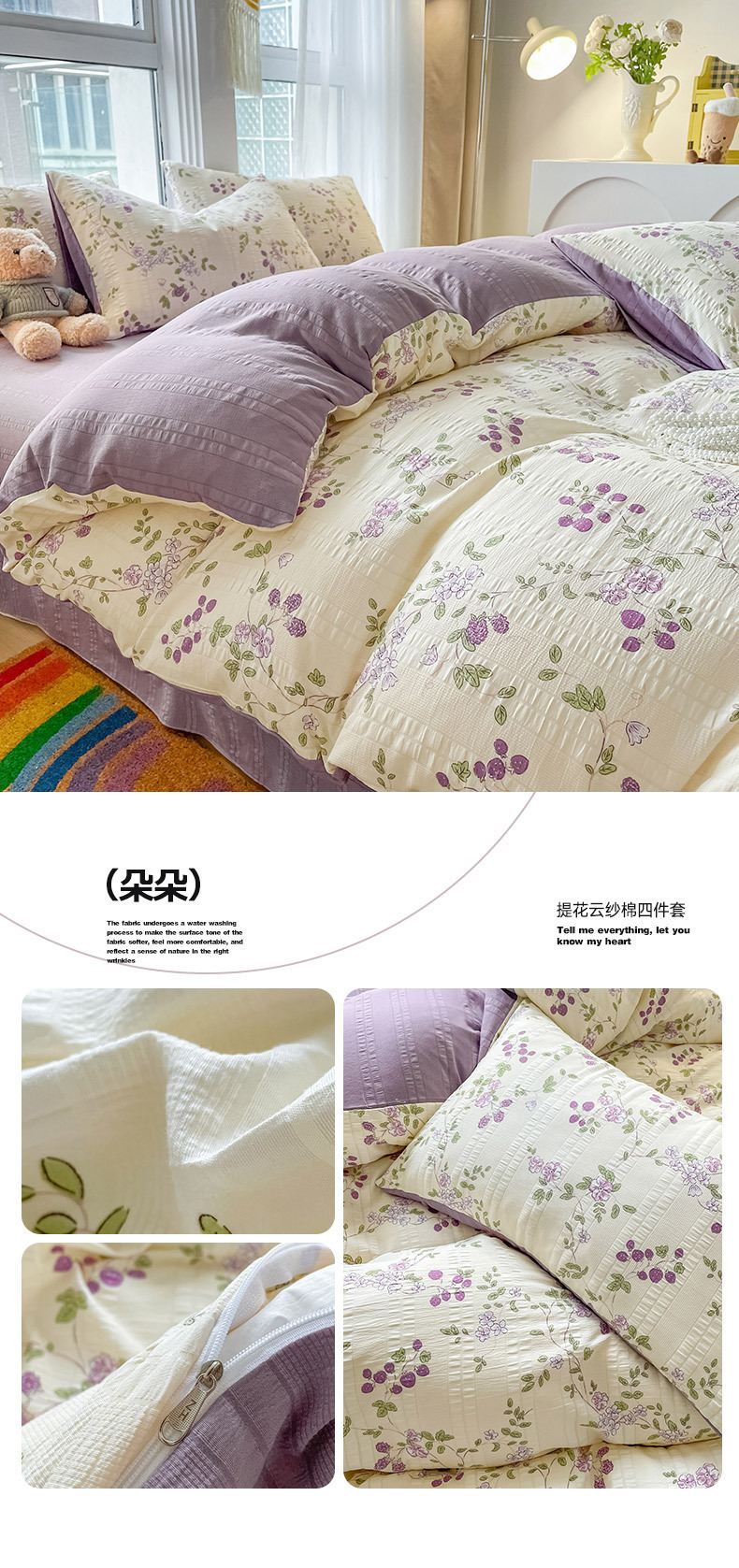 提花云纱棉四件套超柔印花水洗棉四件套小红书爆款学生宿舍三件套