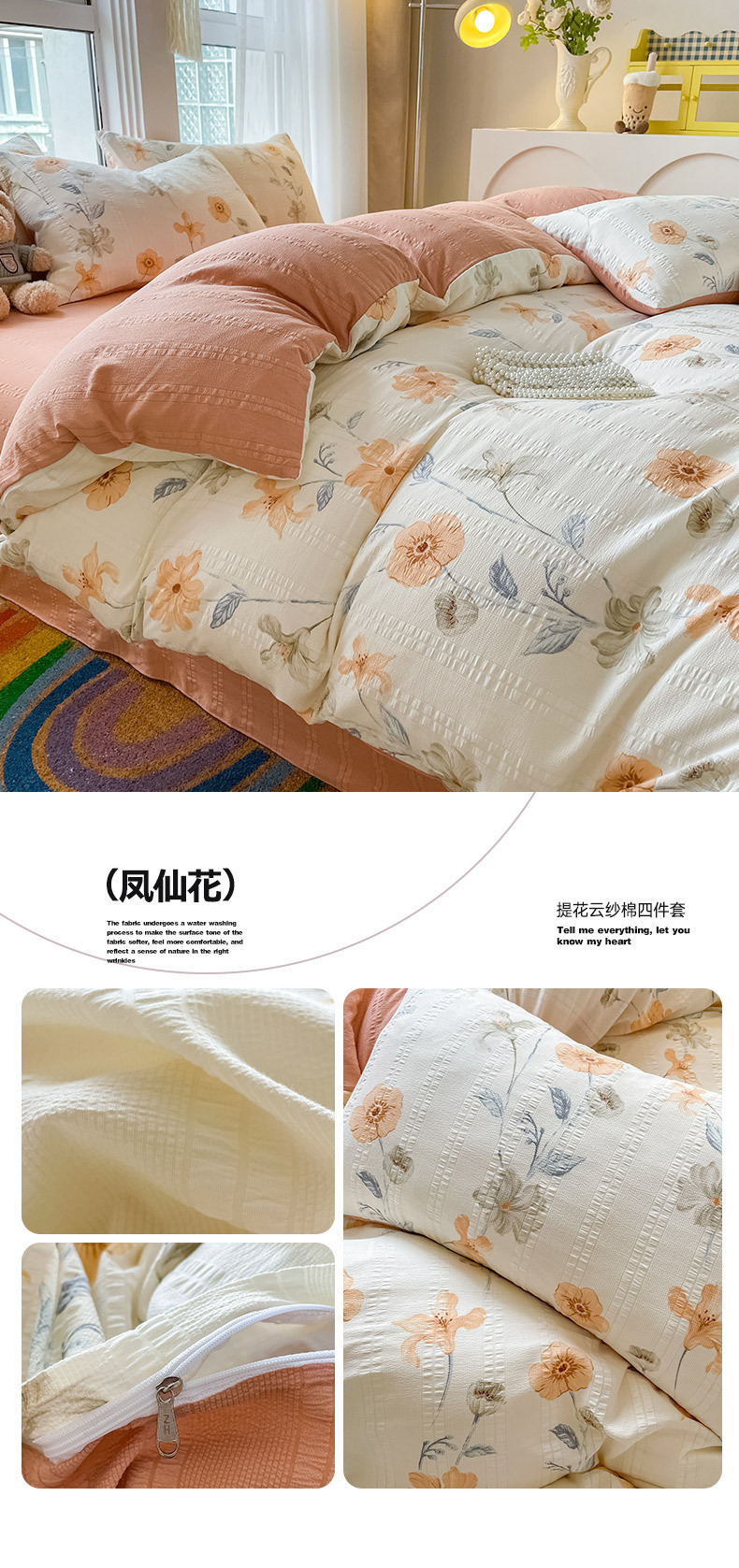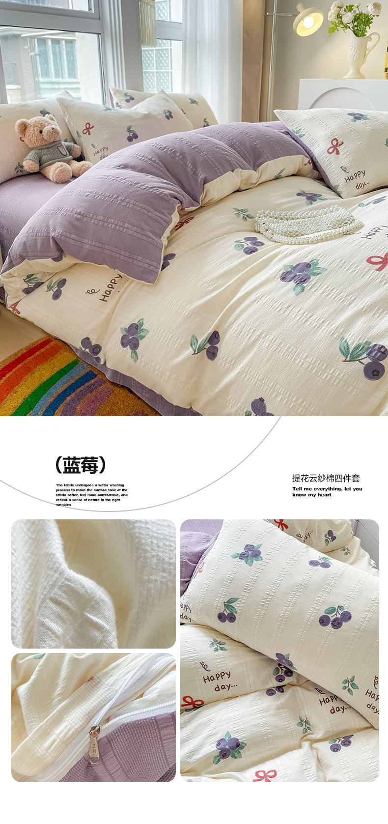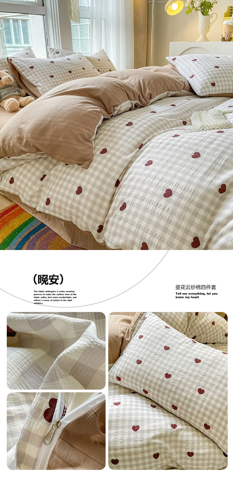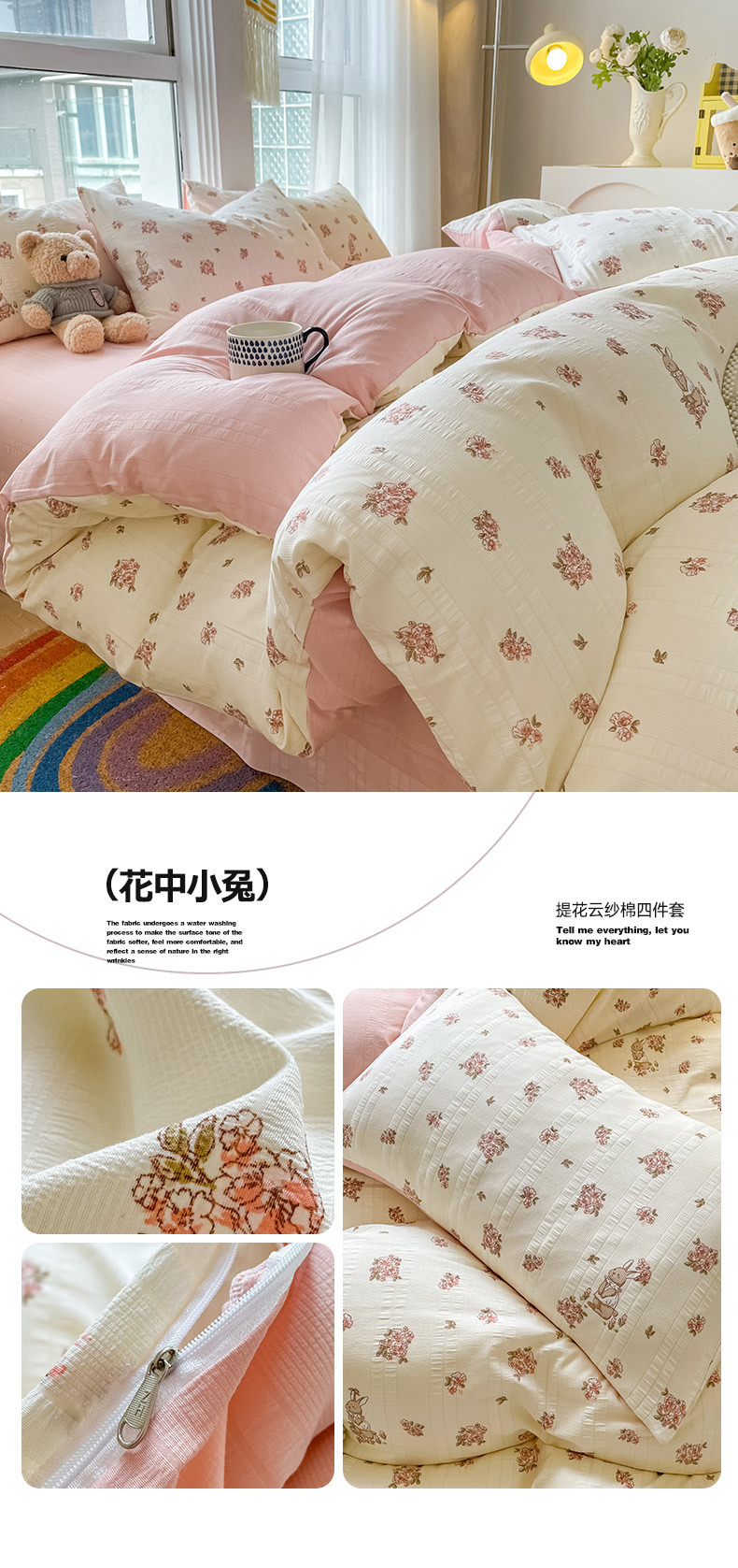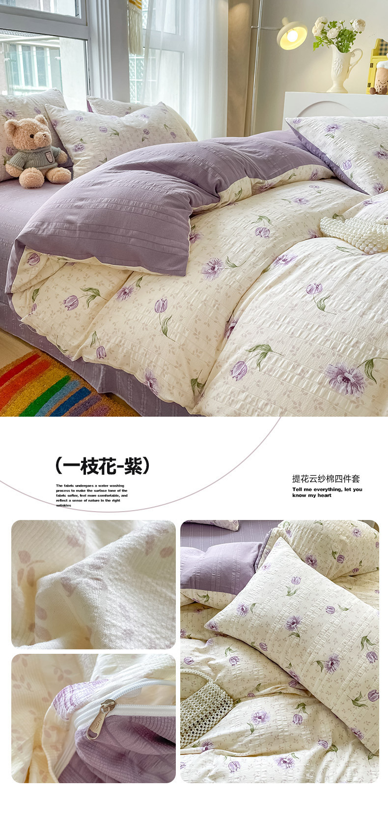 提花云纱棉四件套超柔印花水洗棉四件套小红书爆款学生宿舍三件套