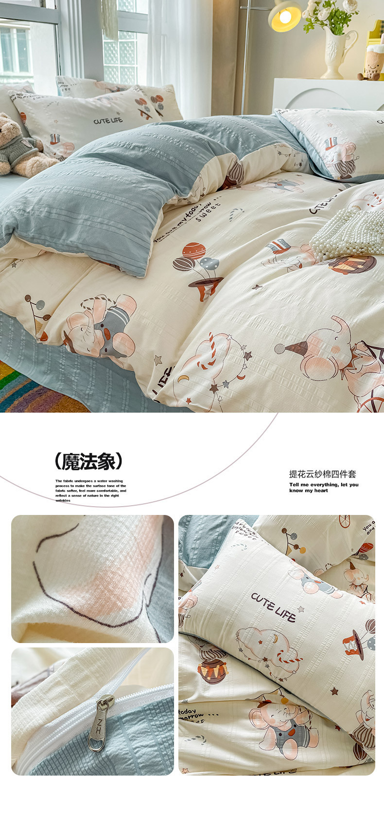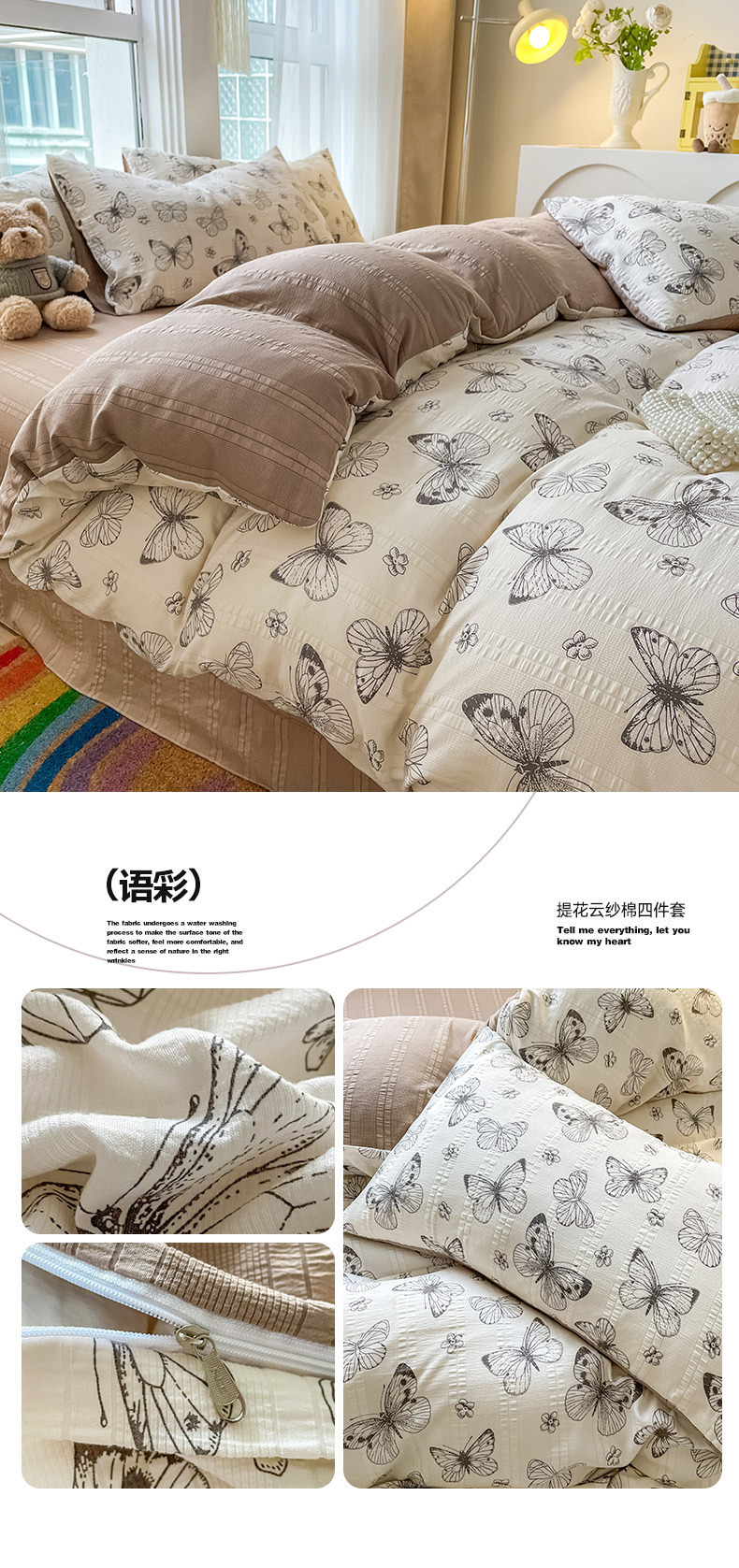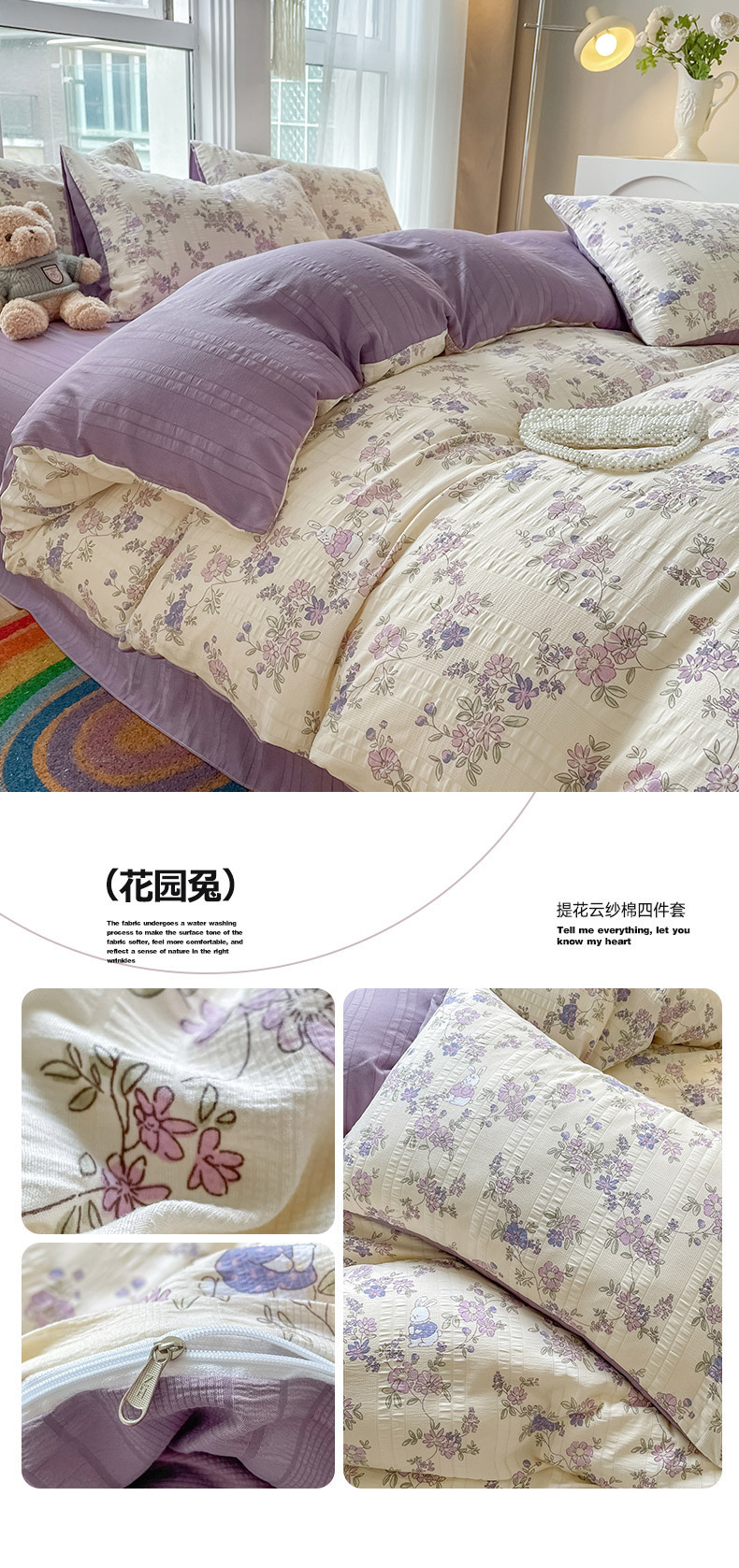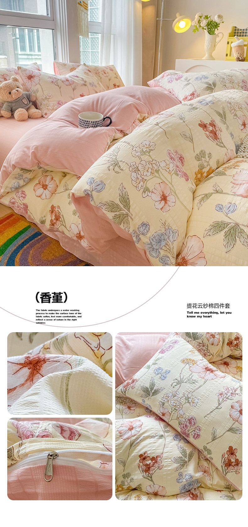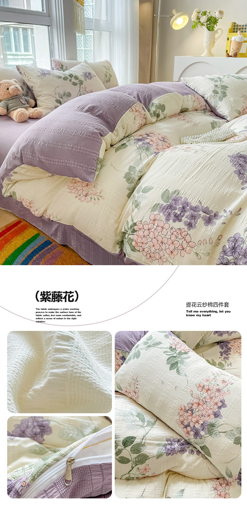 提花云纱棉四件套超柔印花水洗棉四件套小红书爆款学生宿舍三件套