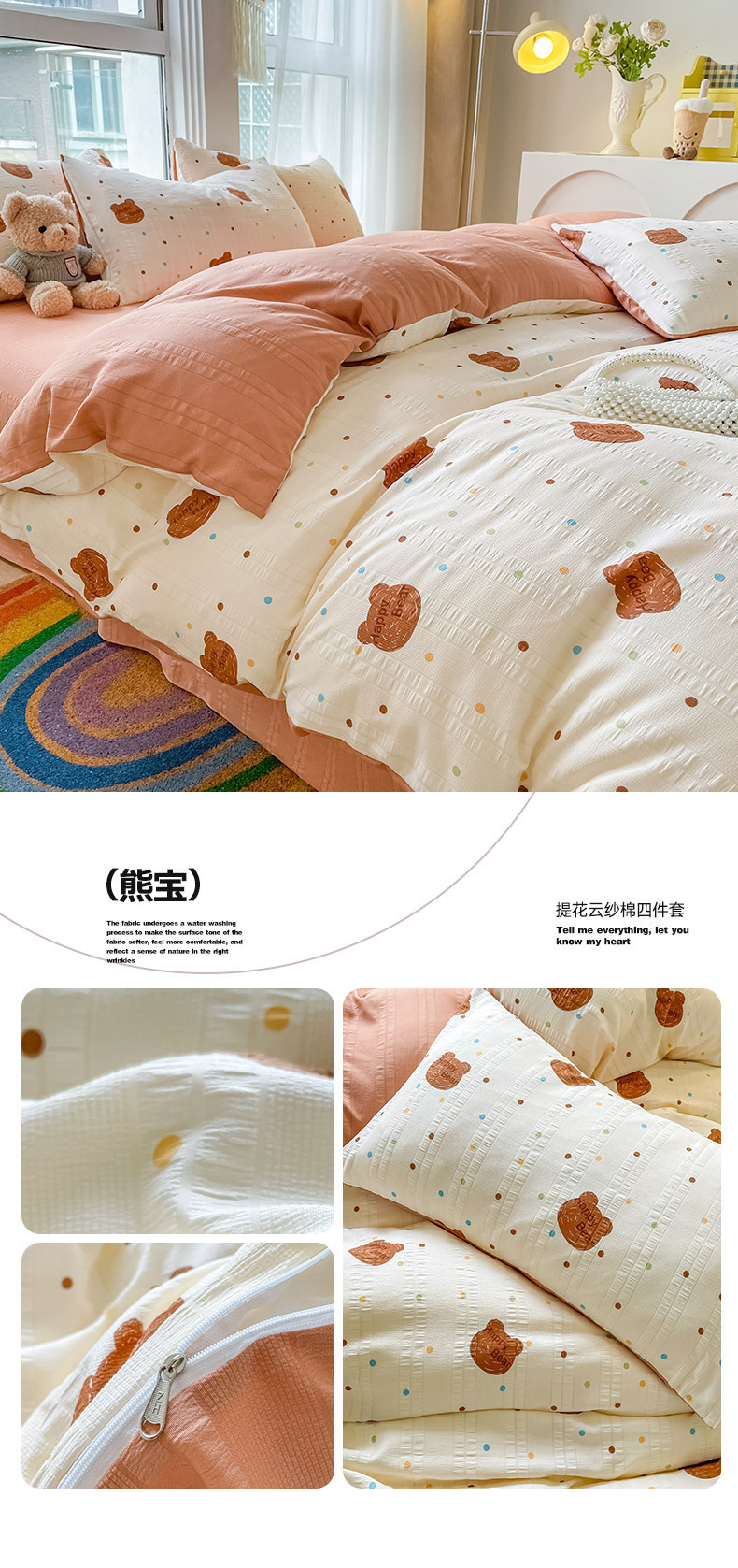 자카드 클라우드 코튼 4 피스 세트 슈퍼 소프트 인쇄 세척 코튼 4 피스 세트 작은 빨간 책 폭발 학생 기숙사 3 피스 세트스토어 가기