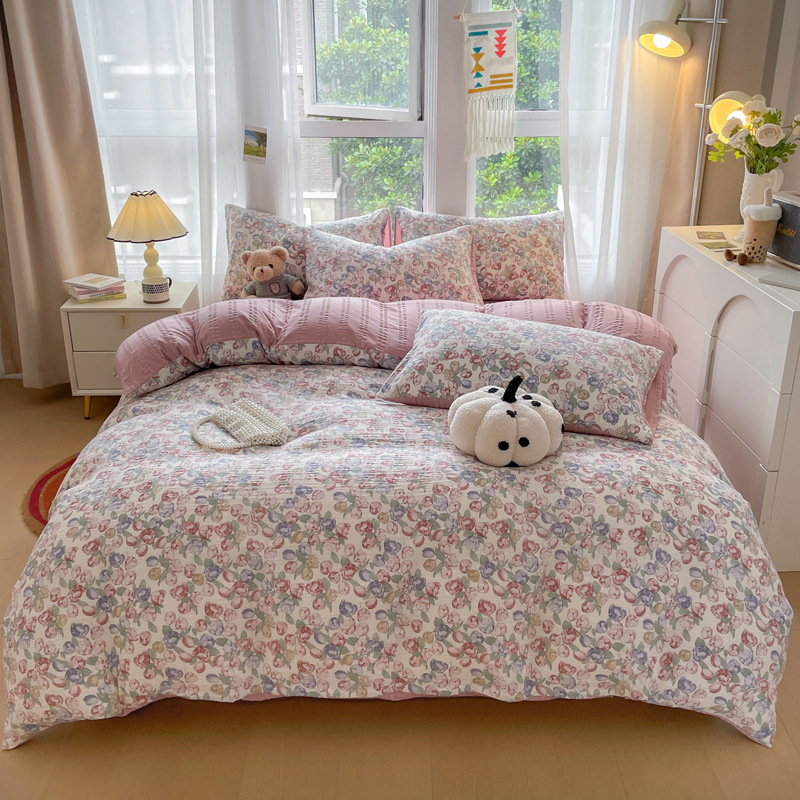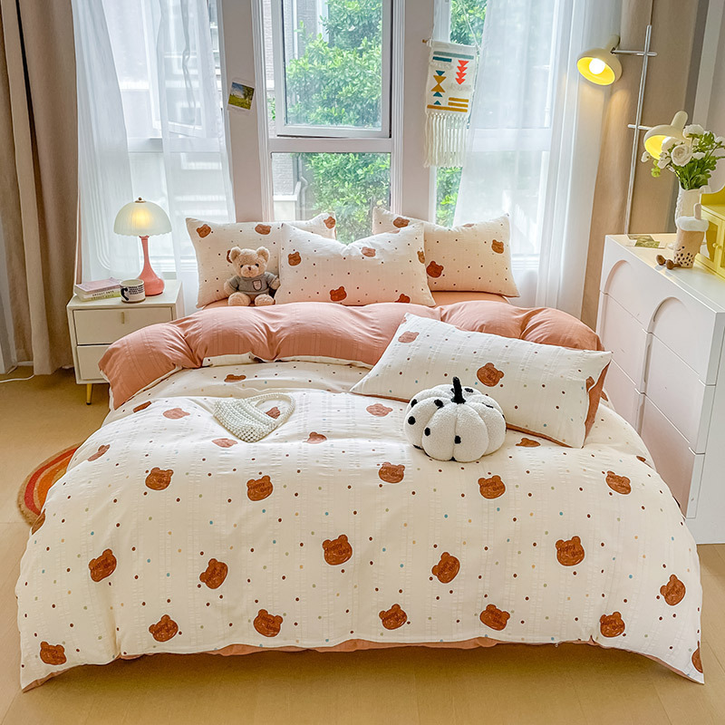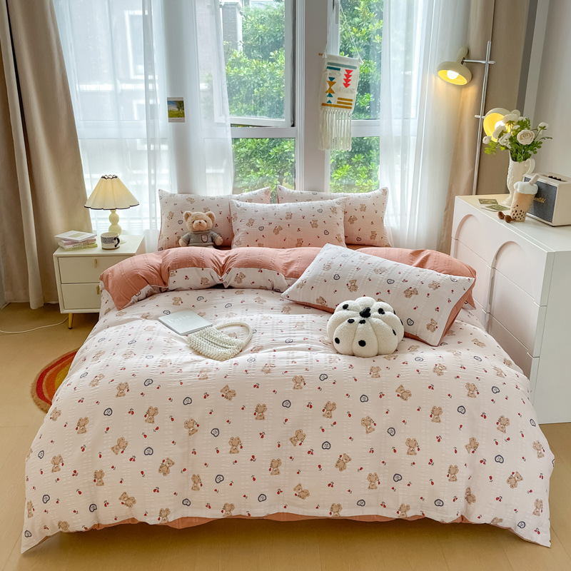 자카드 클라우드 코튼 4 피스 세트 슈퍼 소프트 인쇄 세척 코튼 4 피스 세트 작은 빨간 책 폭발 학생 기숙사 3 피스 세트