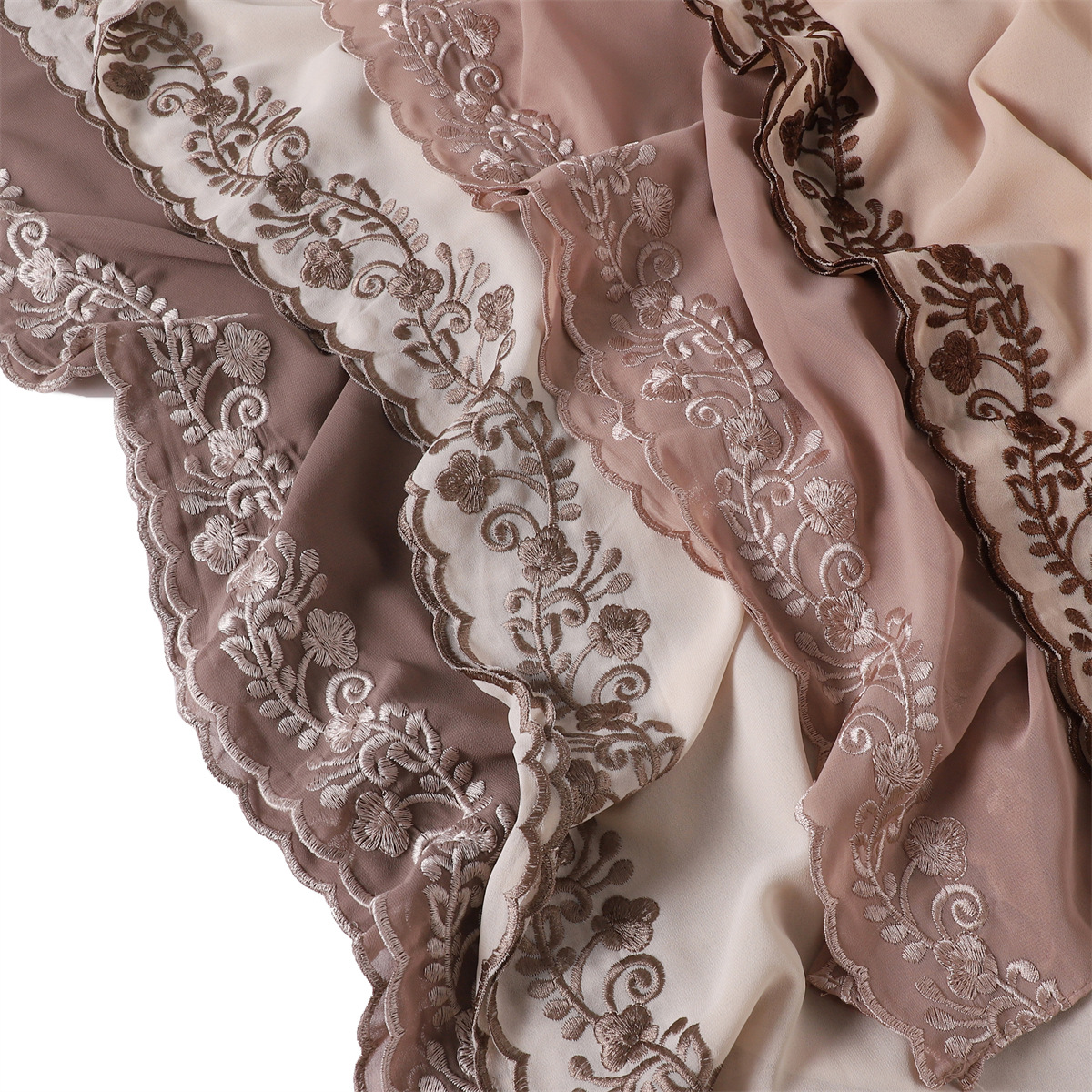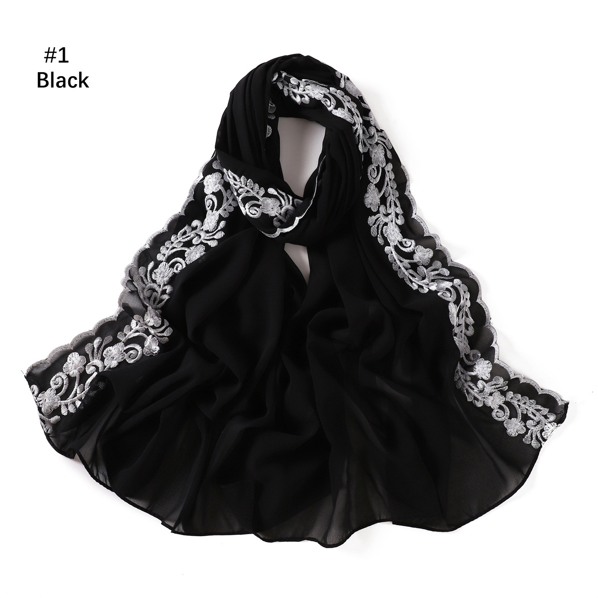 单色绣花边雪纺长巾