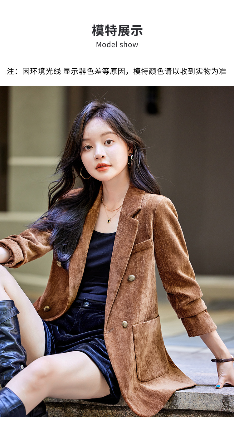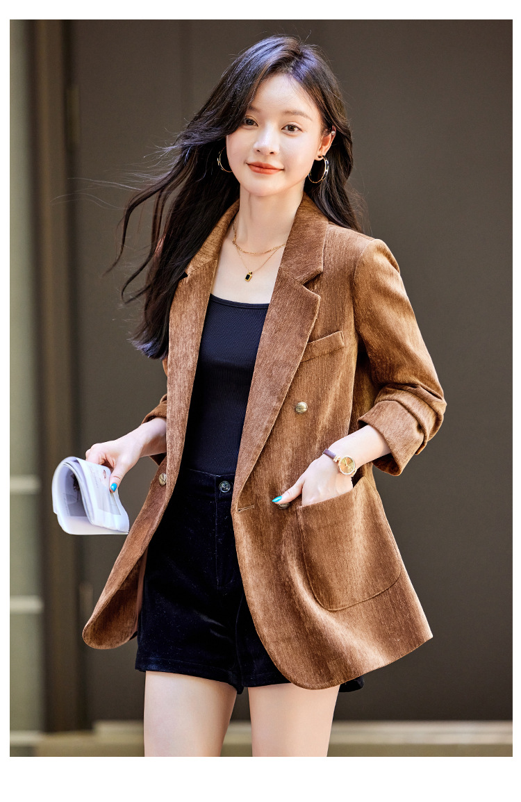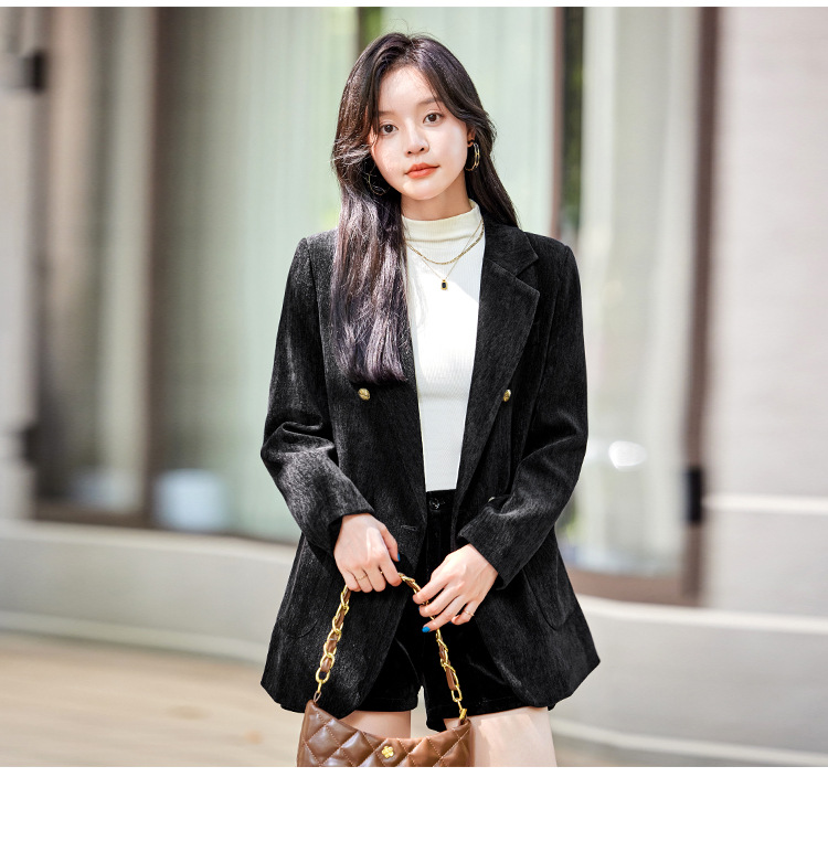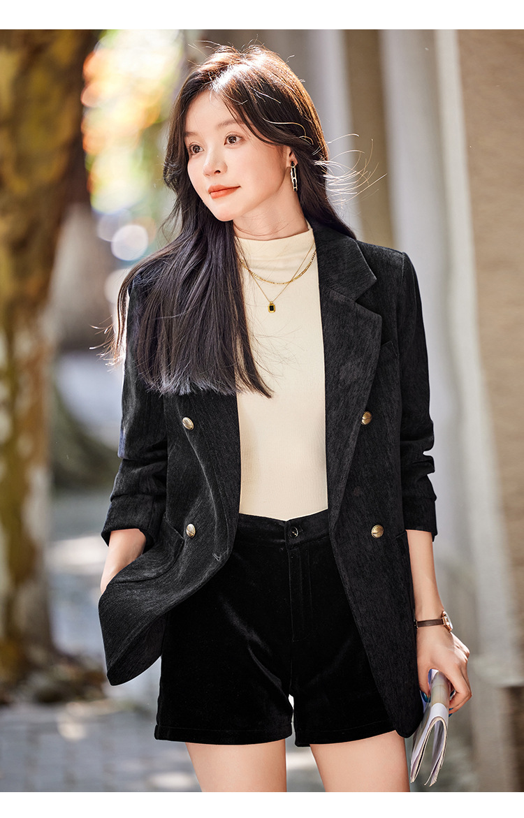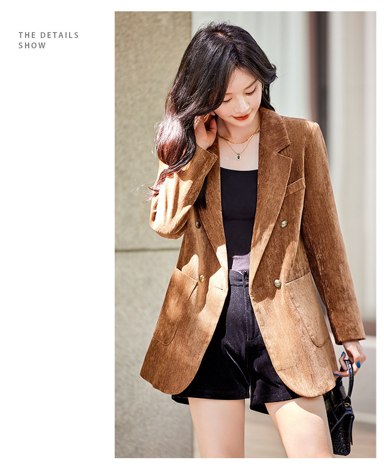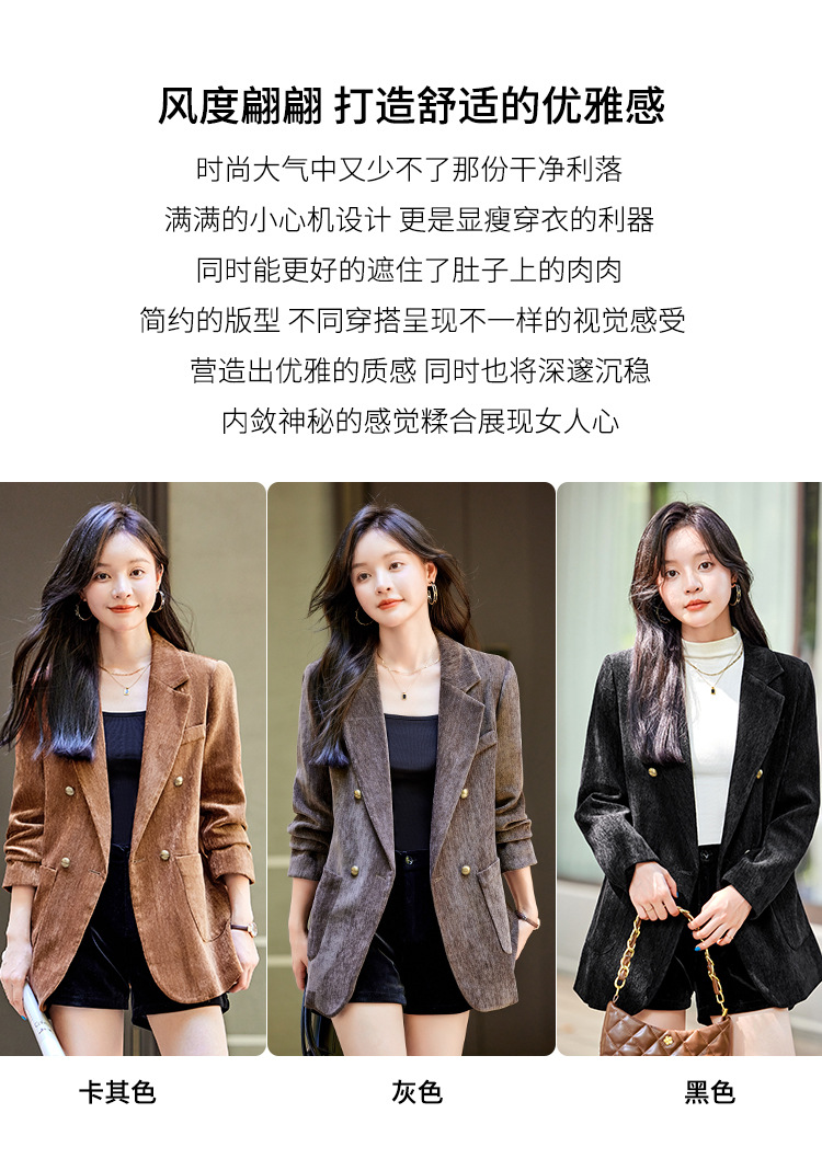 겨울 두꺼운 캐주얼 세트 재킷 여성의 2024 새로운 하이 엔드 센스 루즈 더블 브레스트 코듀로이 세트 탑스토어 가기