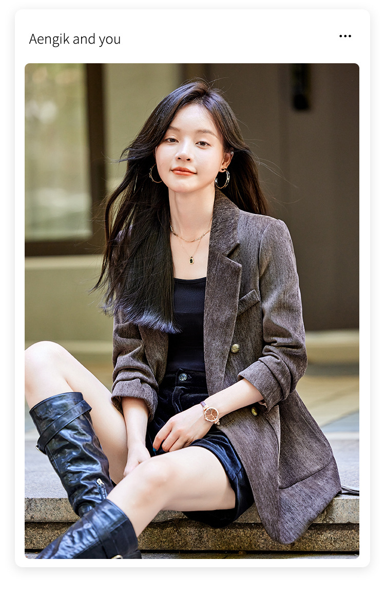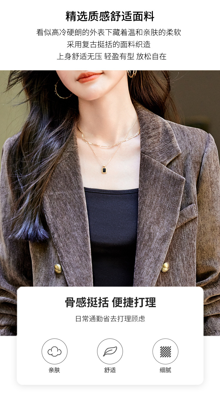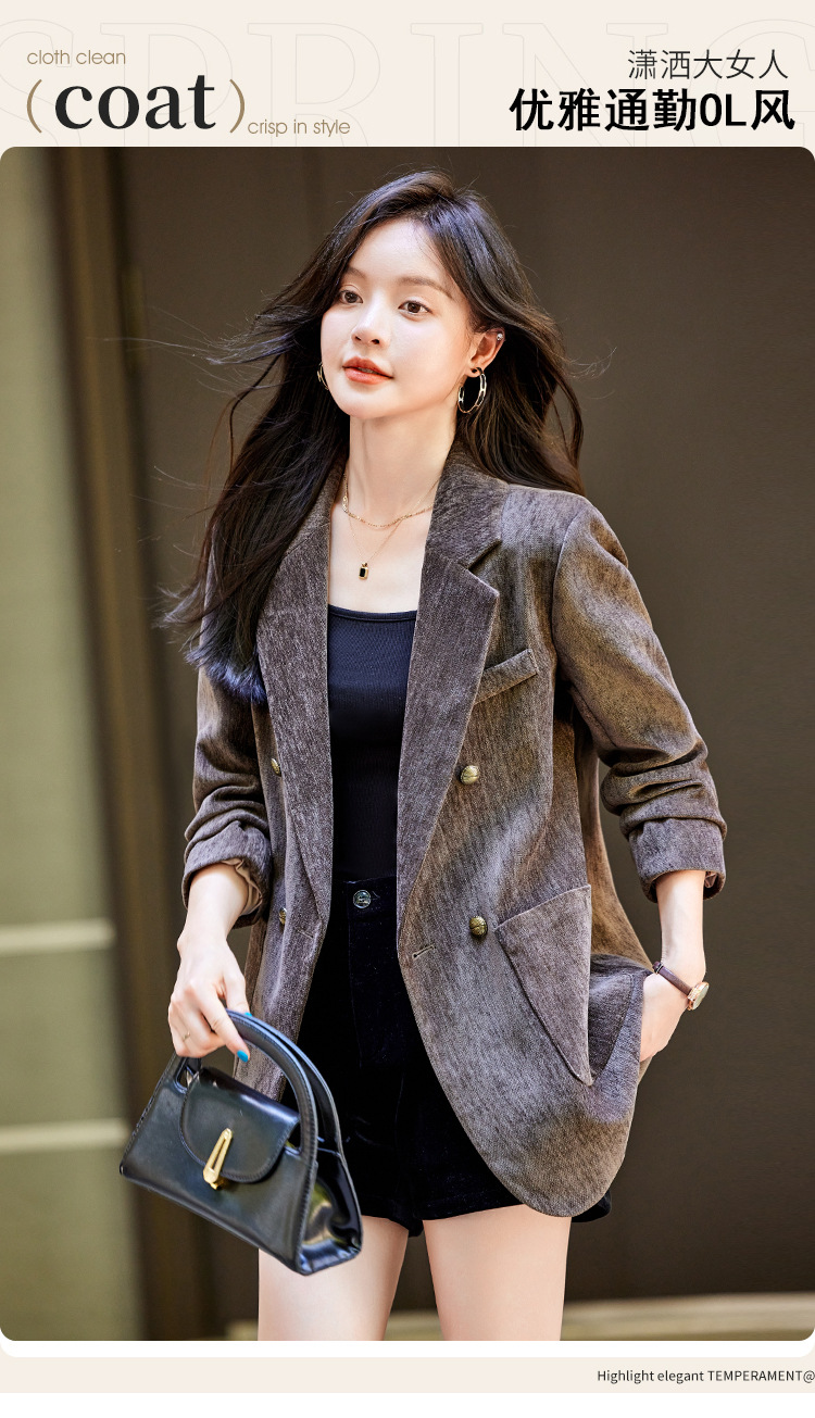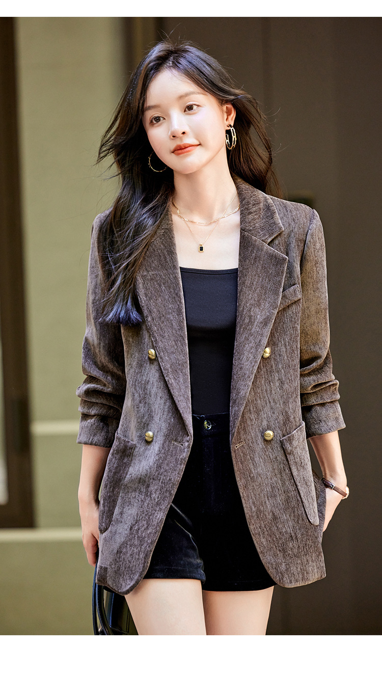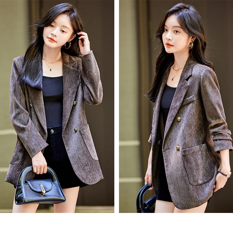 겨울 두꺼운 캐주얼 세트 재킷 여성의 2024 새로운 하이 엔드 센스 루즈 더블 브레스트 코듀로이 세트 탑스토어 가기