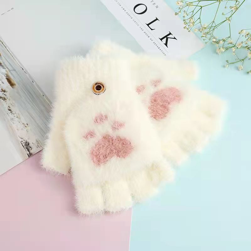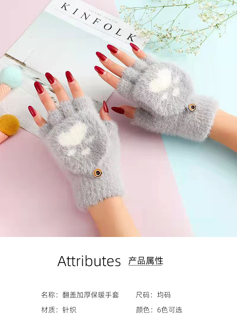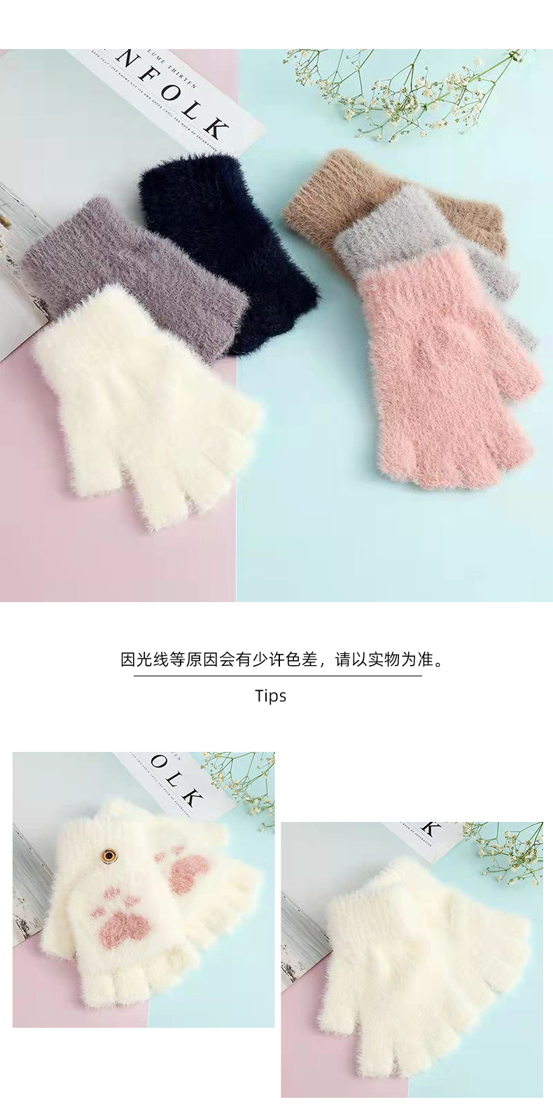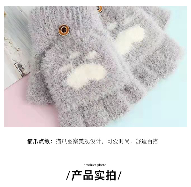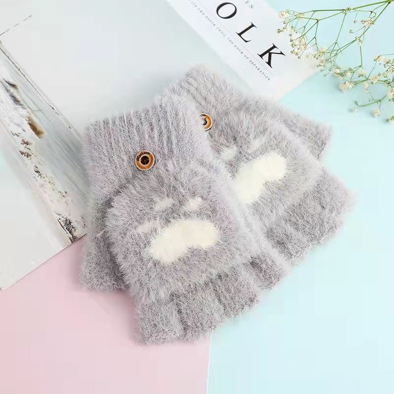 장갑 겨울 여성의 한국식 가을과 겨울 귀여운 기모 따뜻한 감기 방지 학생 숙제 반쪽 손가락 곰 줄 장갑스토어 가기