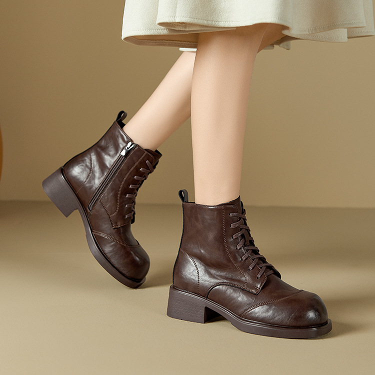 소가죽 마틴 부츠 여성용 영국 스타일 2025 봄 여름 신상 슬림 여성 부츠 두꺼운 밑창 키높이 두꺼운 굽 중간 굽 짧은 부츠스토어 가기
