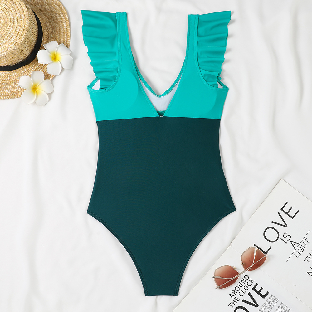 2024 새로운 아마존 국경 유럽 및 미국 여성의 Ruffled Siaman Bikini 수영복 슬림 맞춤 멀티 컬러스토어 가기
