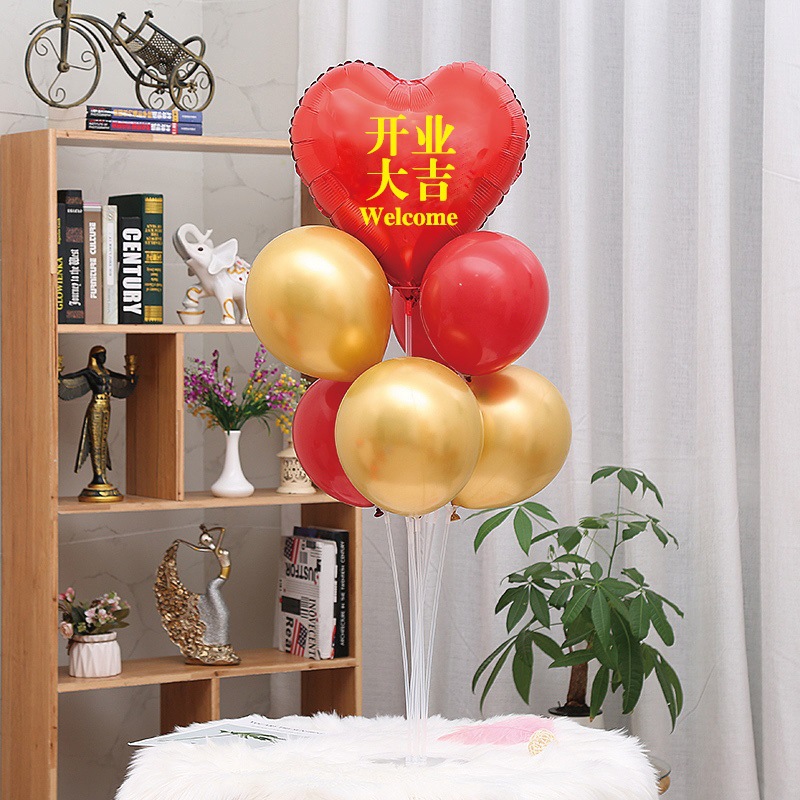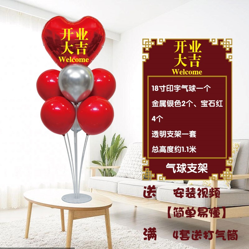 개회식 문 앞에 놓인 분위기는 풍선으로 꾸며져 기념일 가게를 꾸미고 매장 활동을 축하한다. 상점의 테이블이 바닥에 떠 있습니다.