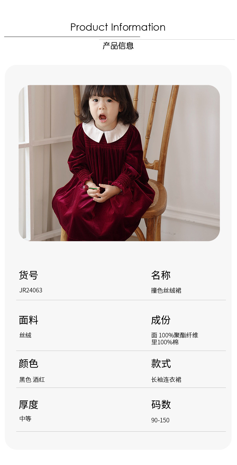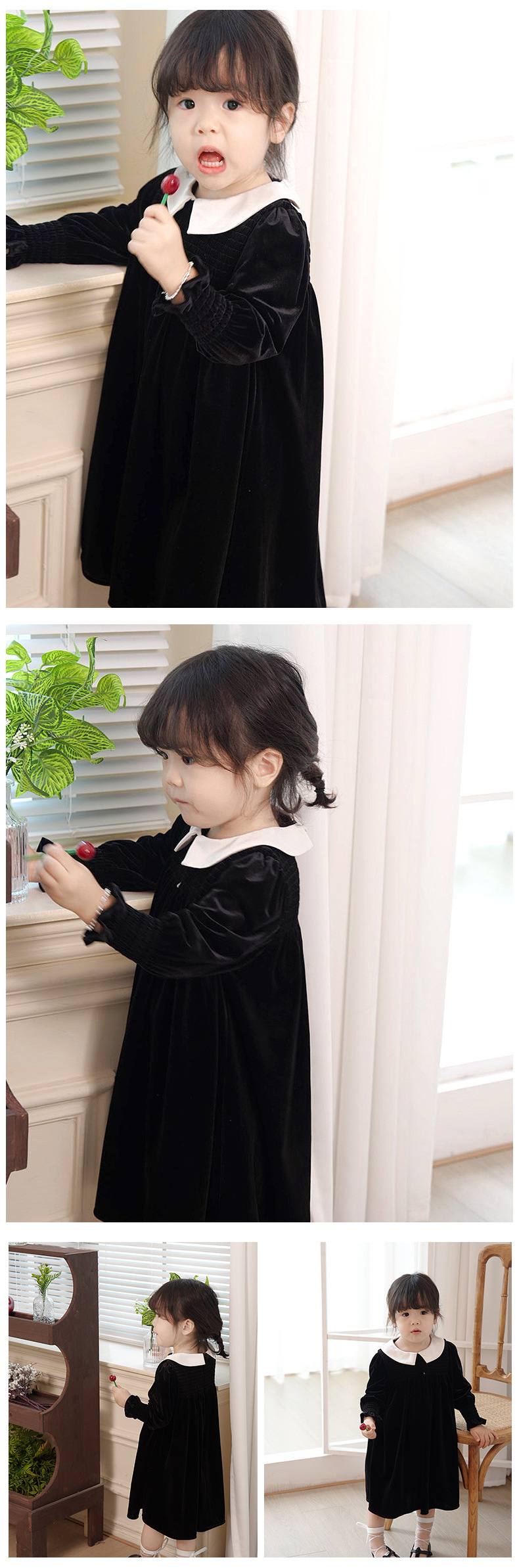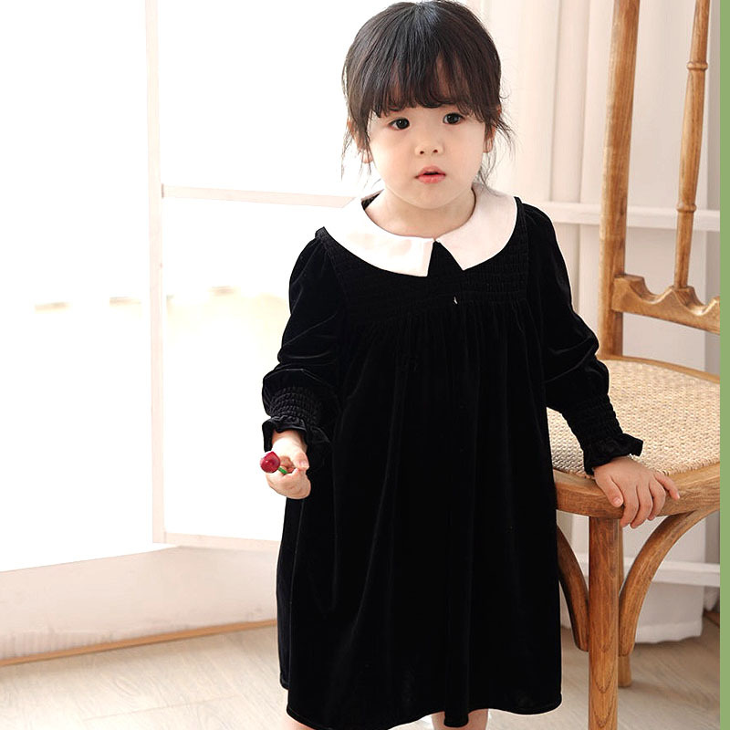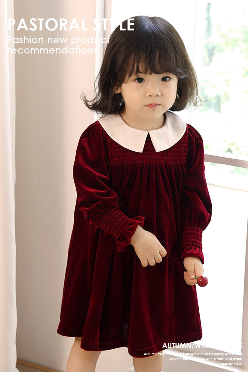 즉시 배송 가능한 여자 아기 신년 드레스 2025 가을 겨울 신상 긴 소매 작은 카라 벨벳 드레스 여자 아이 공주 드레스스토어 가기
