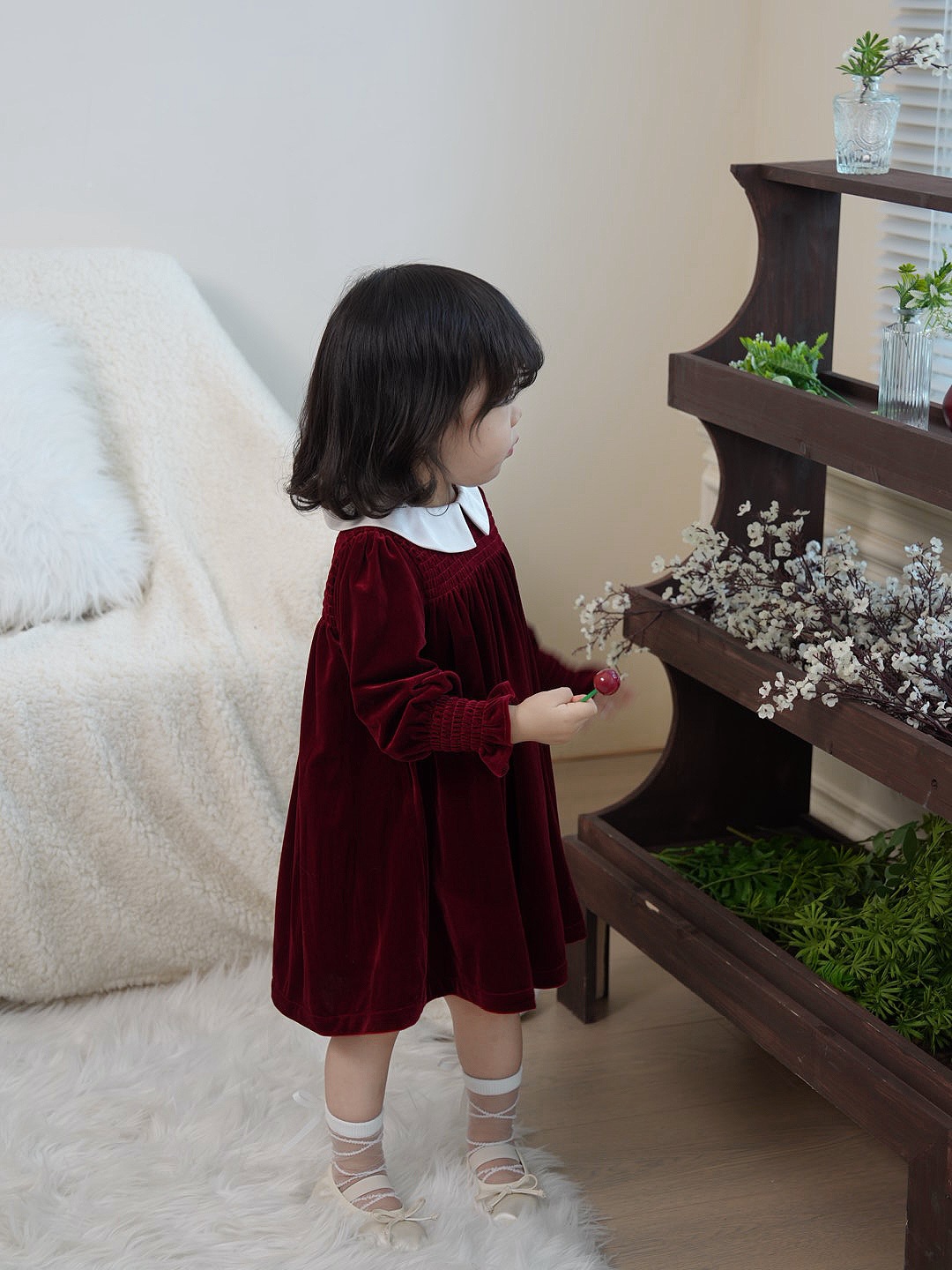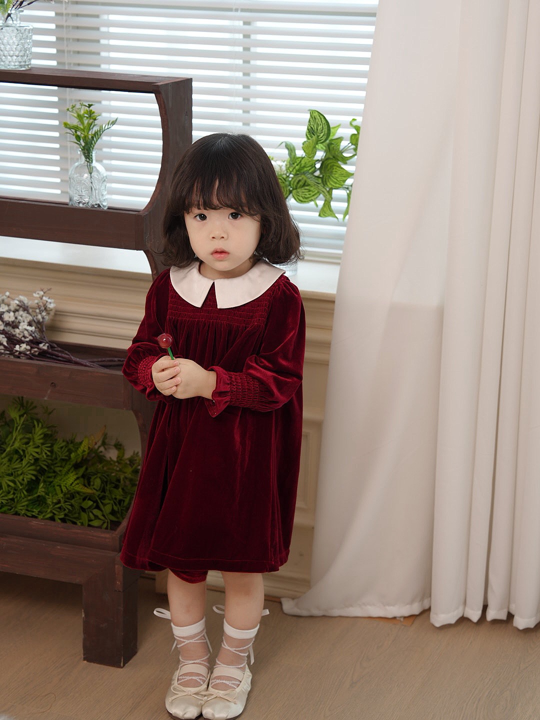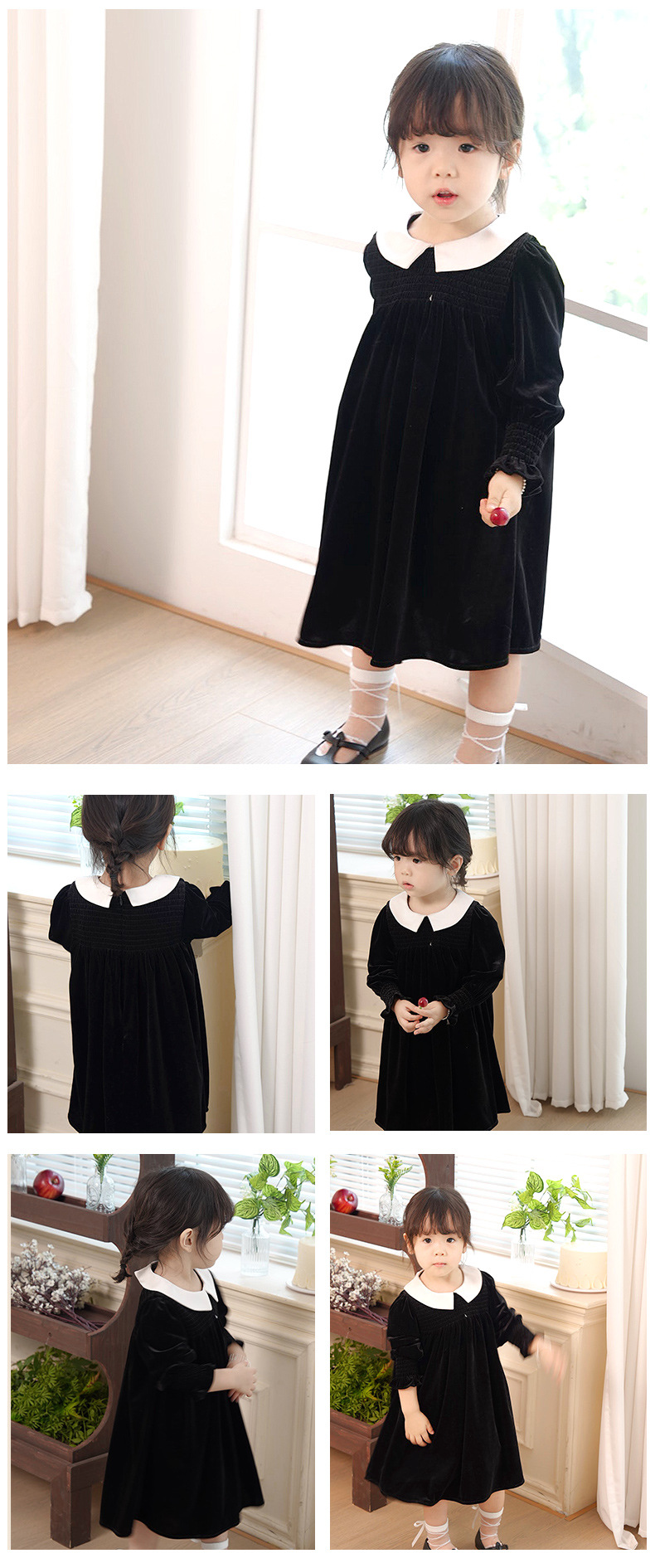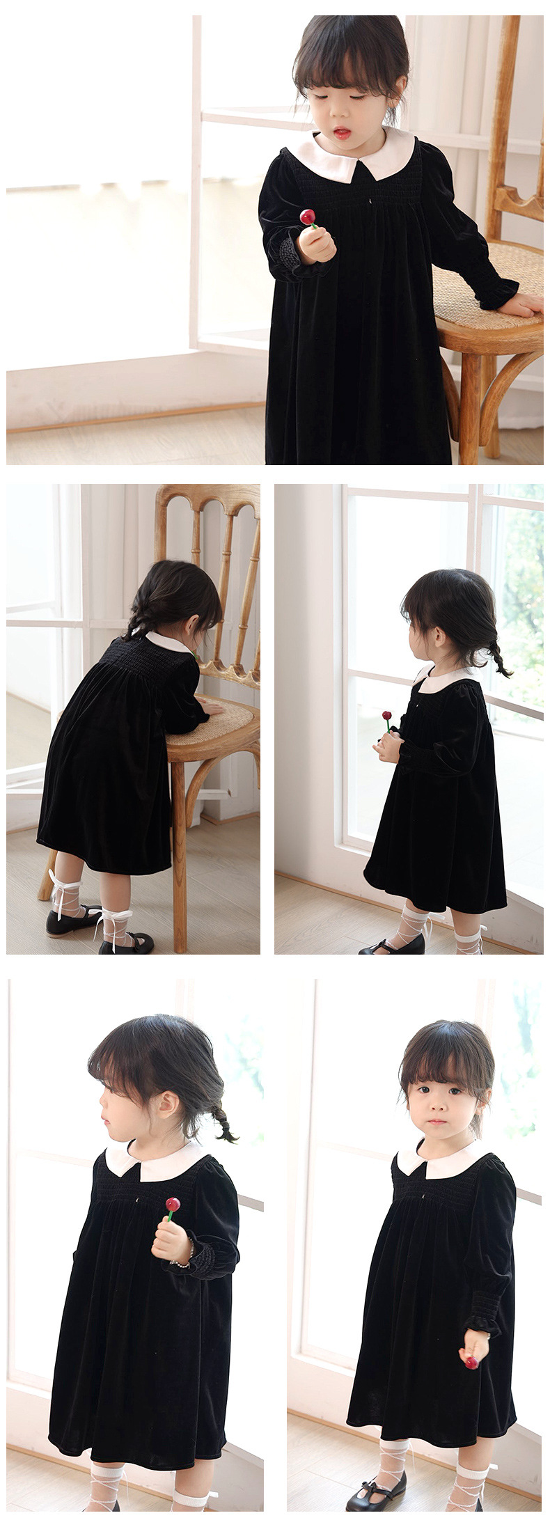 즉시 배송 가능한 여자 아기 신년 드레스 2025 가을 겨울 신상 긴 소매 작은 카라 벨벳 드레스 여자 아이 공주 드레스스토어 가기