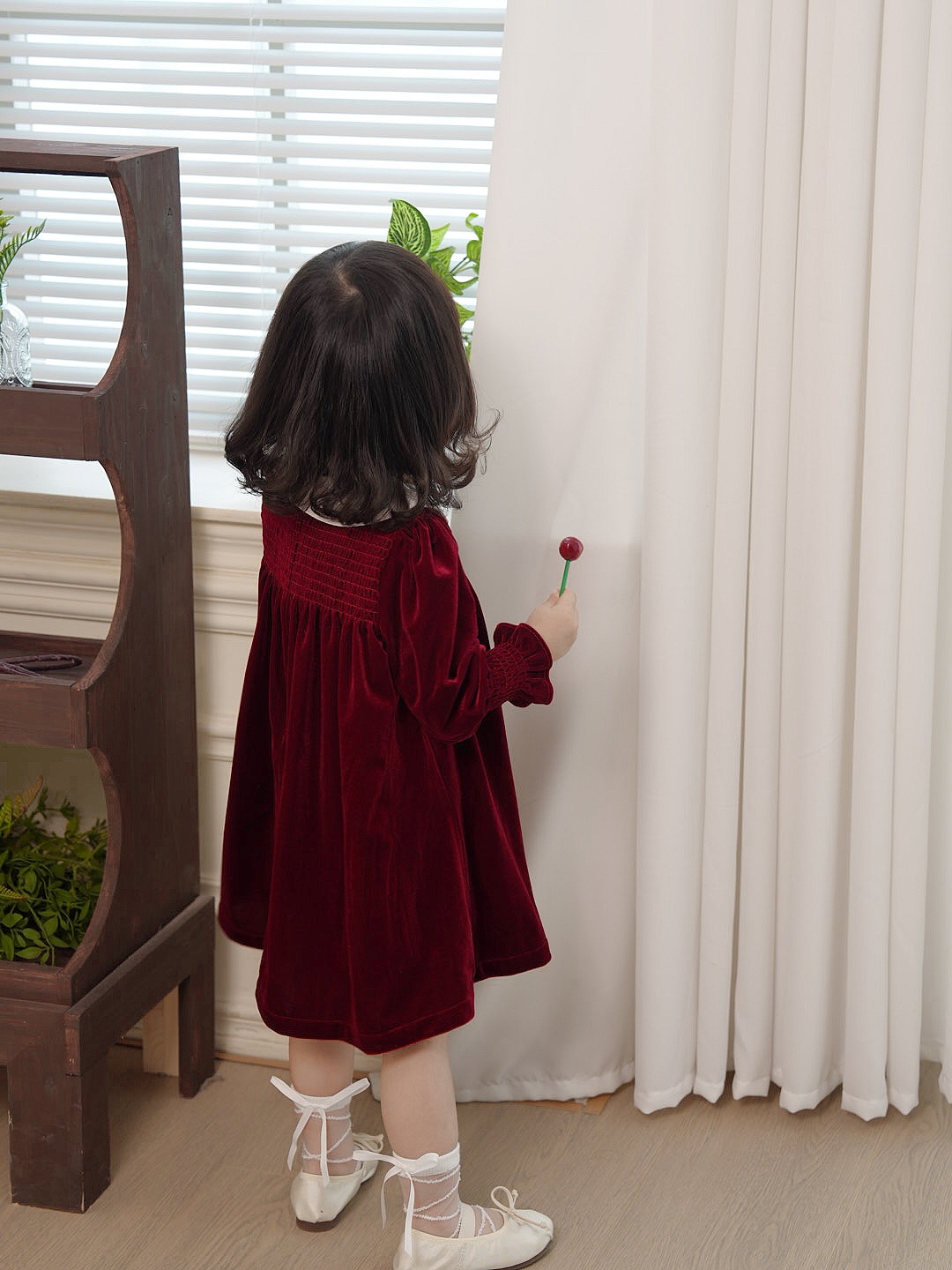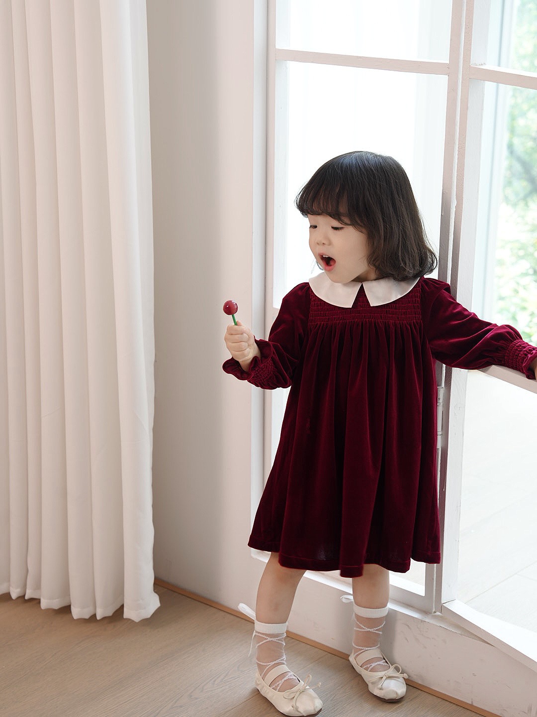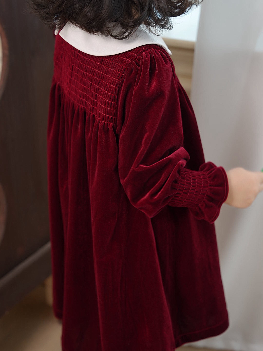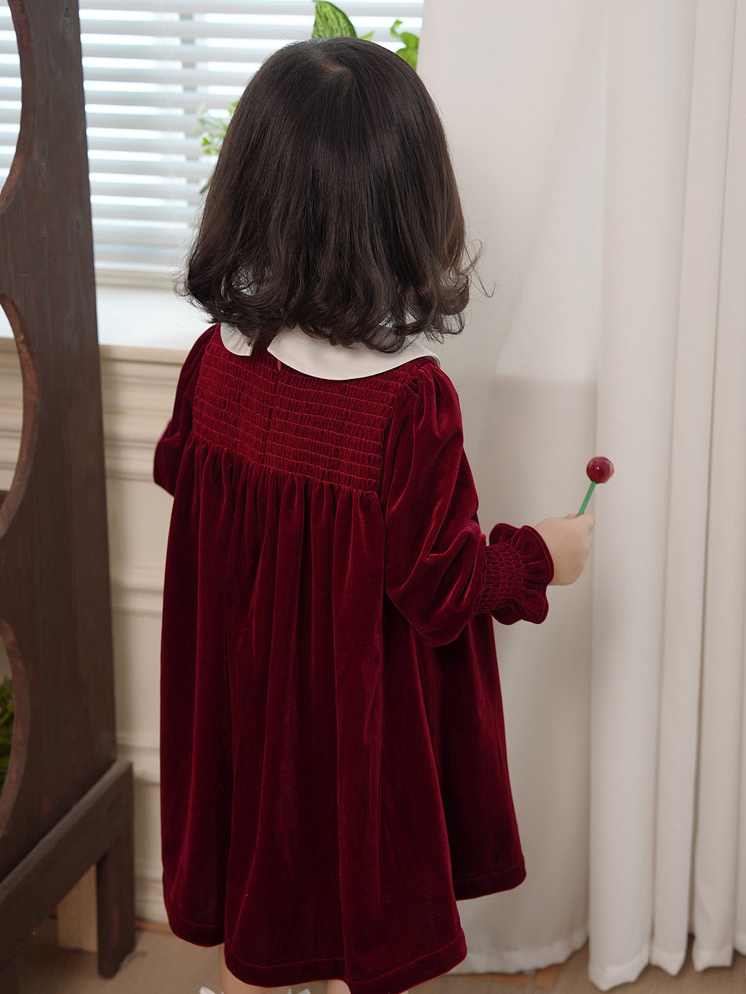 즉시 배송 가능한 여자 아기 신년 드레스 2025 가을 겨울 신상 긴 소매 작은 카라 벨벳 드레스 여자 아이 공주 드레스스토어 가기