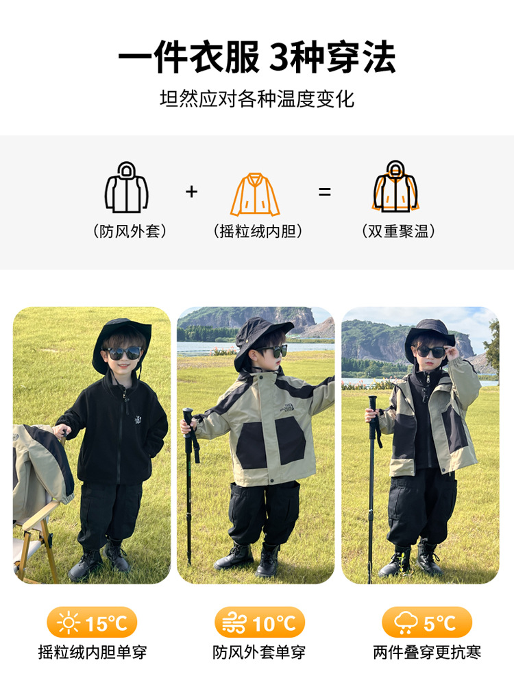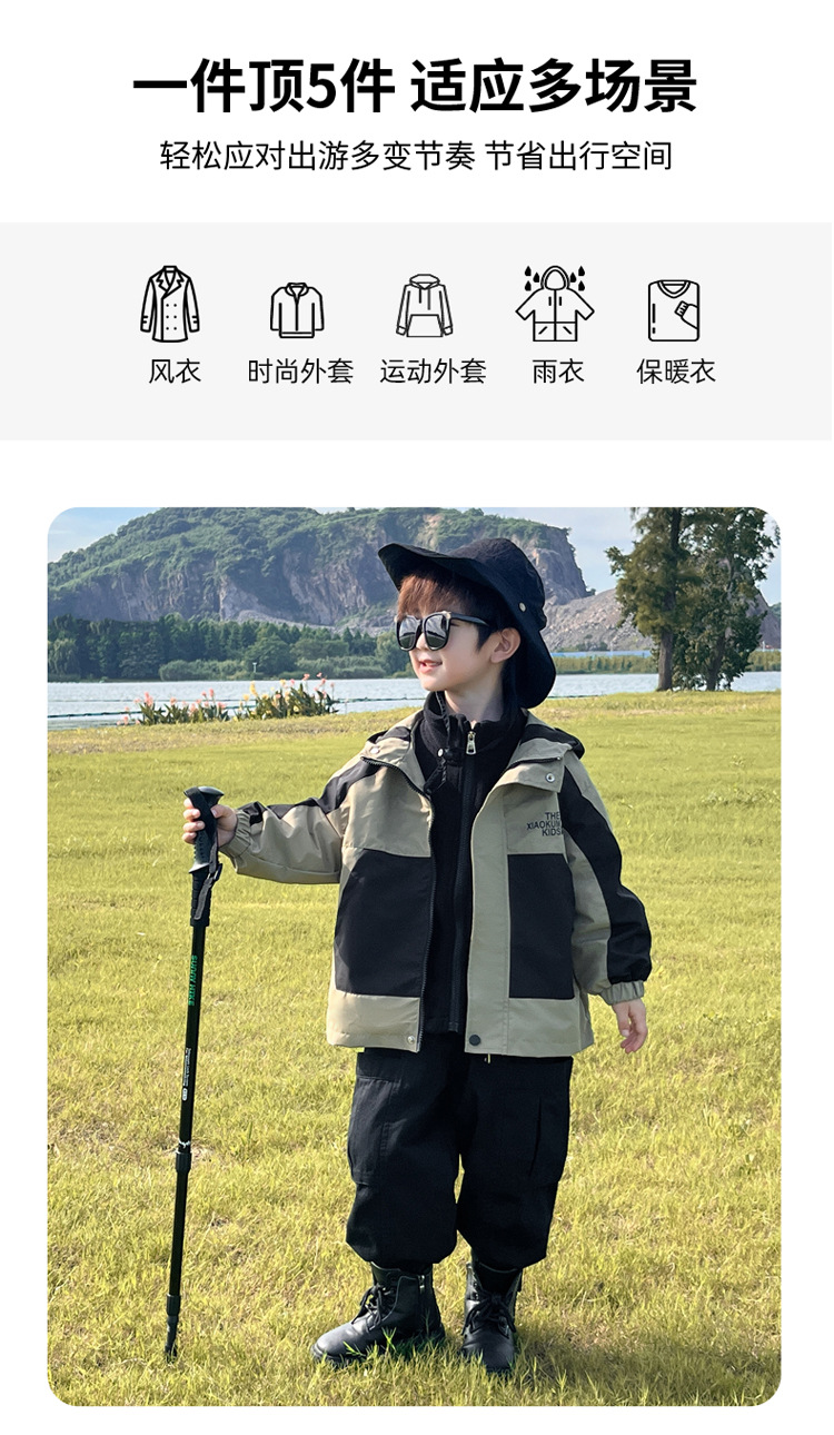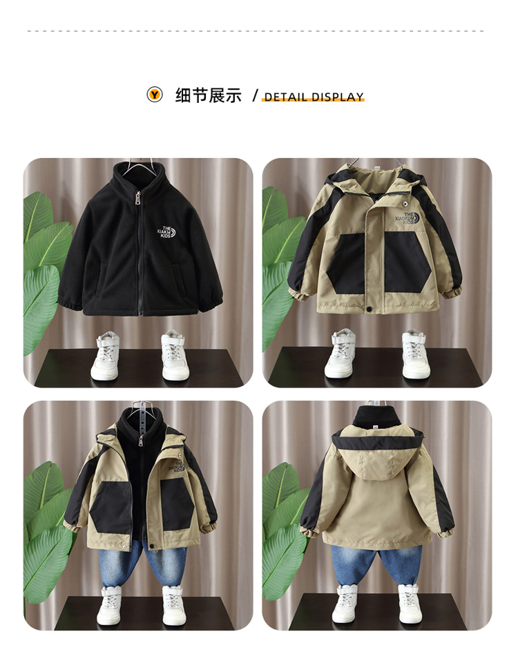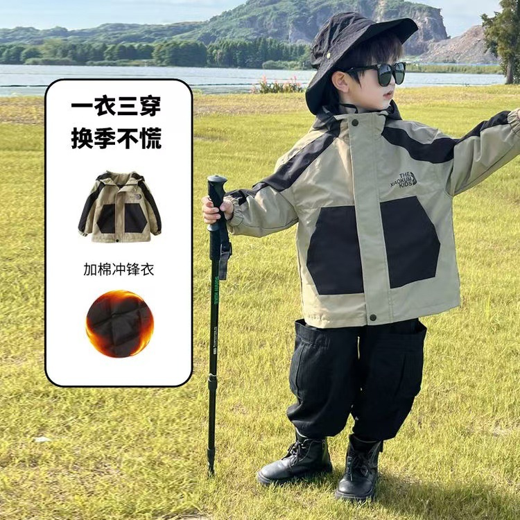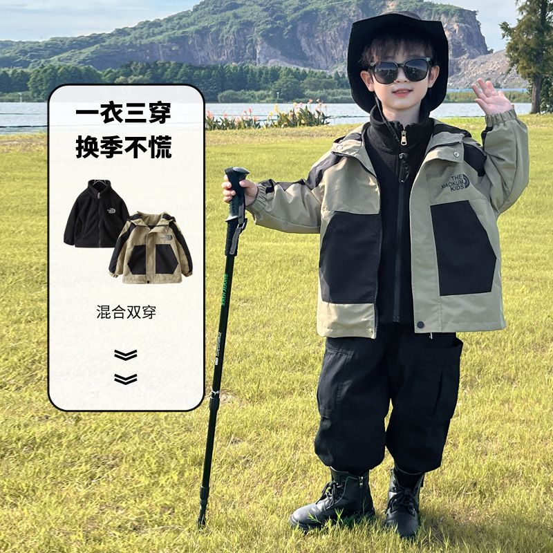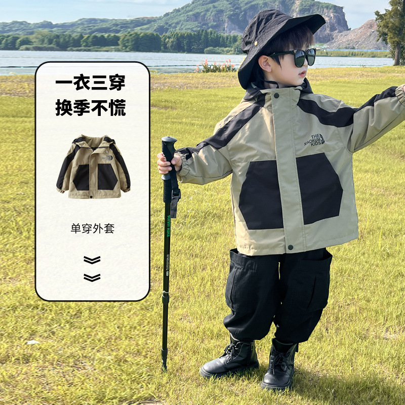소년 재킷 3-in-one 봄, 가을 2025 새로운 어린이 야외 3방수 작업복 윈드 브레이커 유행스토어 가기
