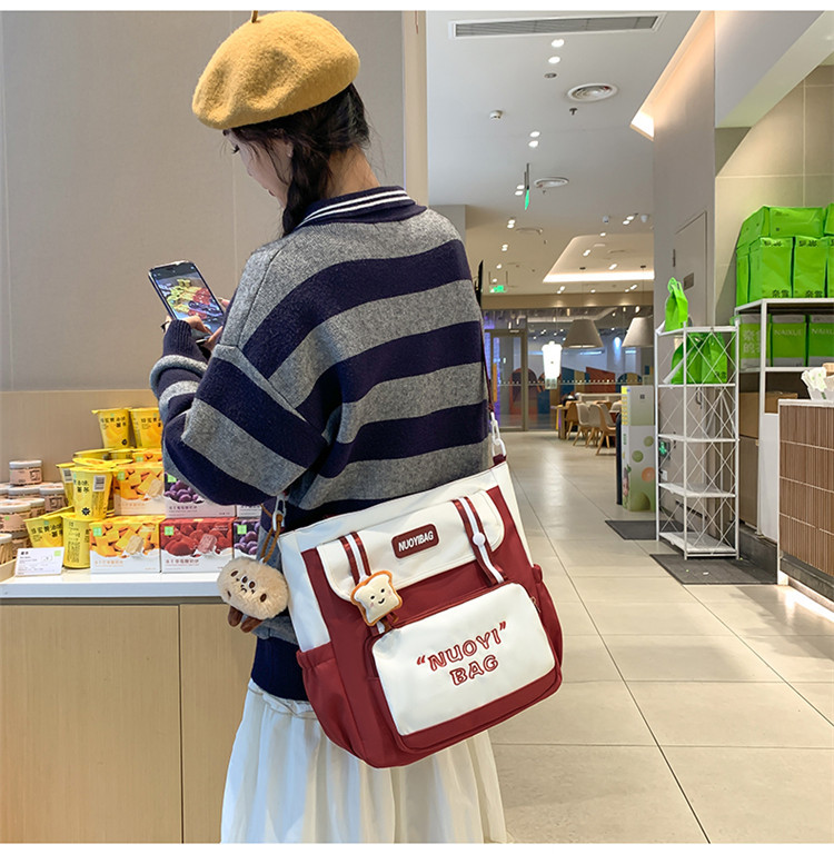 2024 새로운 높은 색상 가치 학생 교사 가방 토트 백 나일론 대용량 작업 통근 어깨 크로스 바디 백