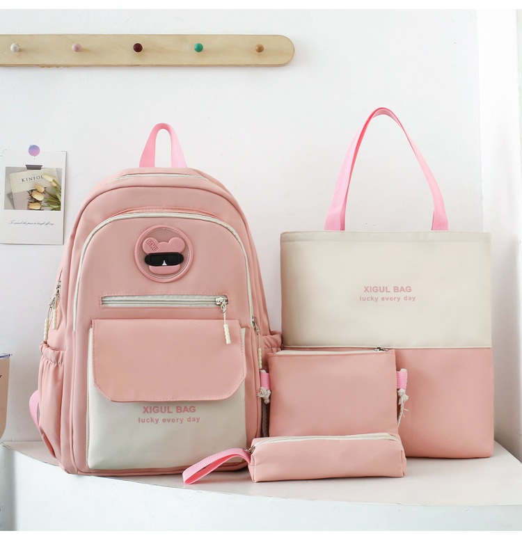 2024 새로운 캐주얼 스쿨백 여성 멀티 피스 세트 초등학교 캠퍼스 배낭 경량 올매치 중학교 배낭스토어 가기