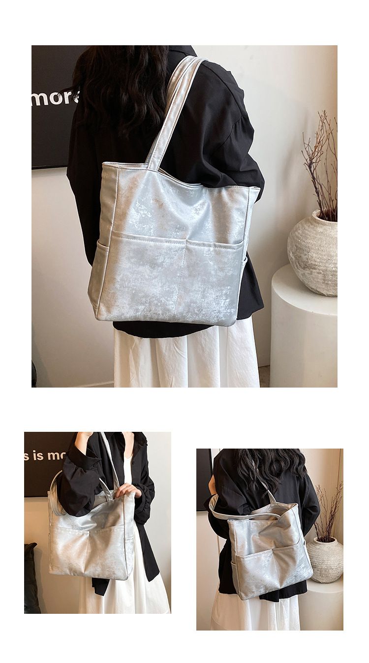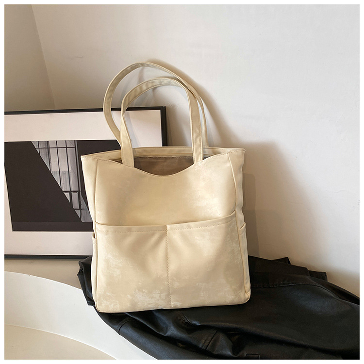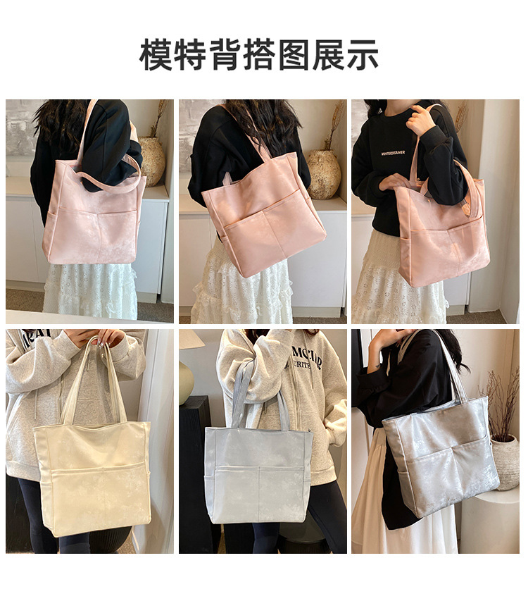 대용량 토트 백 여성의 2024 새로운 유행 여름 부드러운 가죽 섬유 어깨 가방 대학생 여성을위한 모든 매치 스쿨백스토어 가기