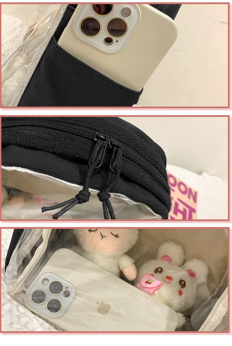 일본 투명 한 통통 가방 PVC 학생 학교 가방 새로운 대용량 배낭 대학 스타일 보조 배낭