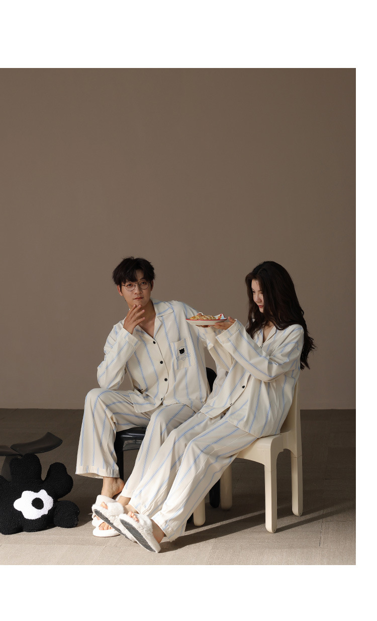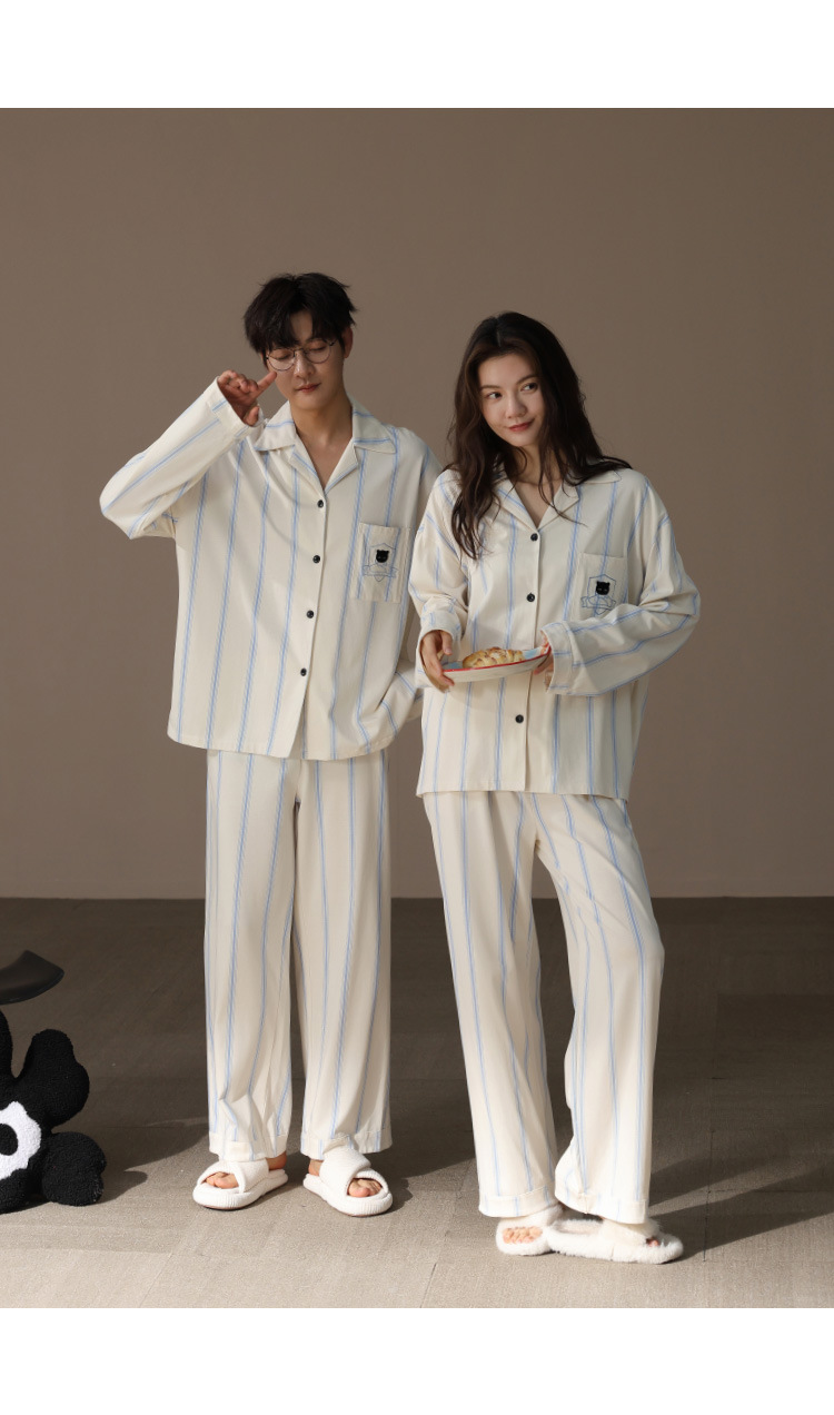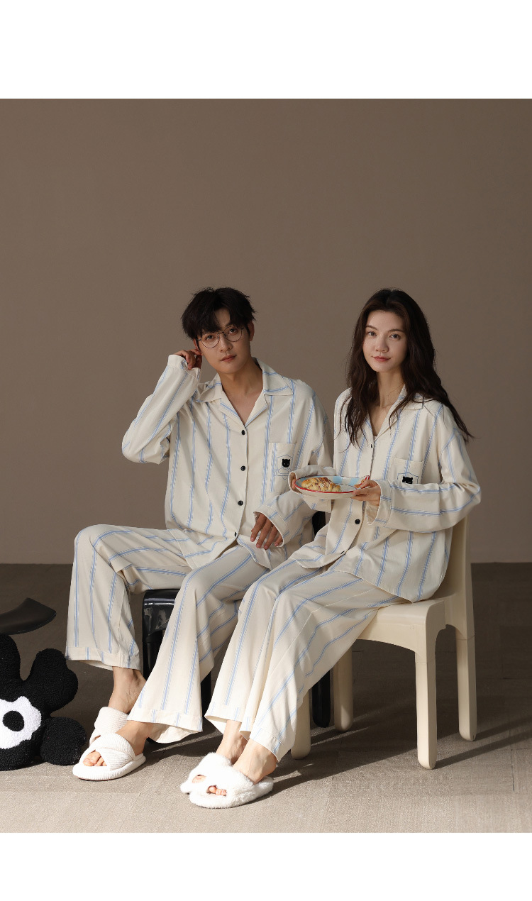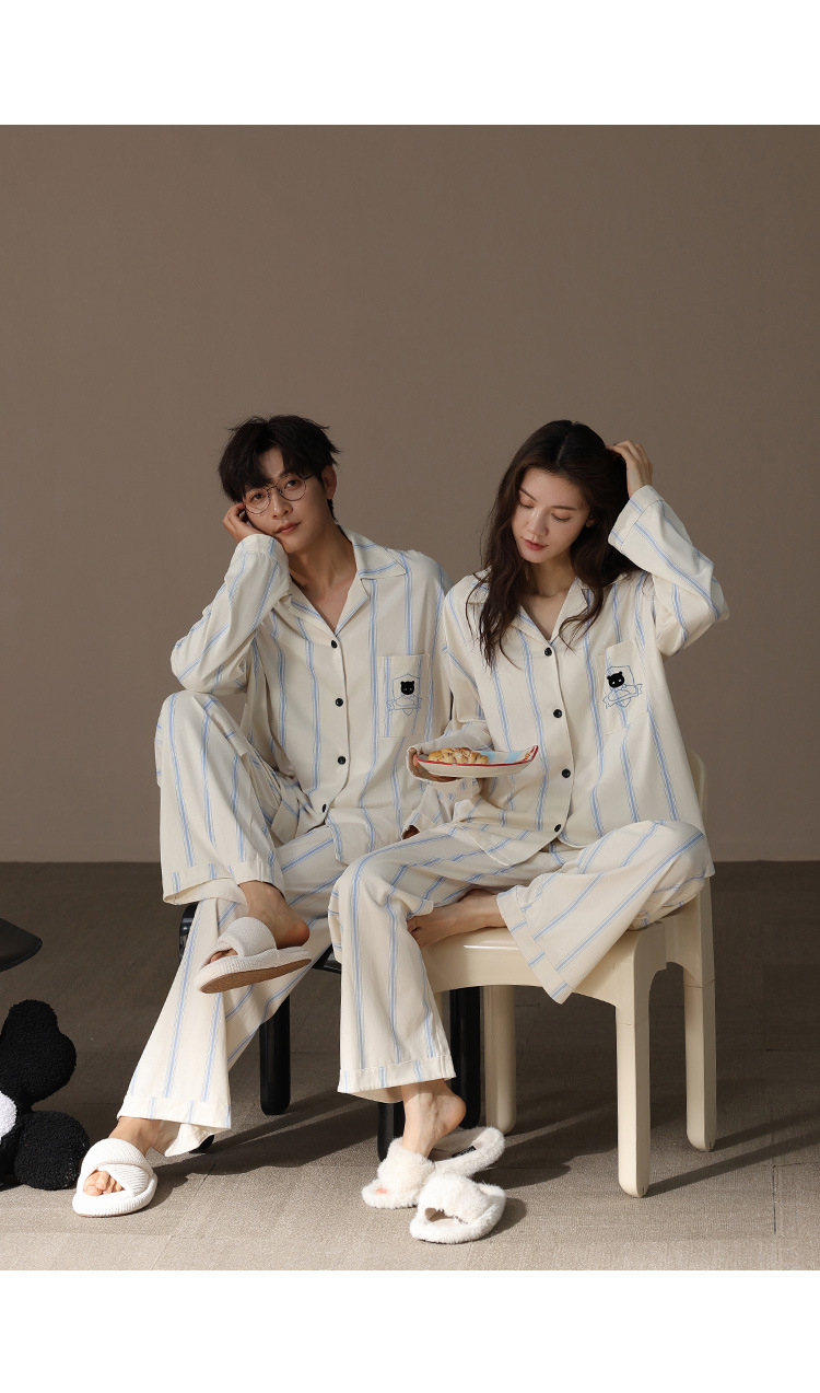 [슈퍼 소프트] 모달 커플 파자마 여성 봄과 가을 긴 소매 카디건 세트 남성 플러스 사이즈 느슨한 홈 옷스토어 가기