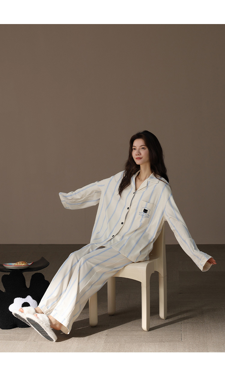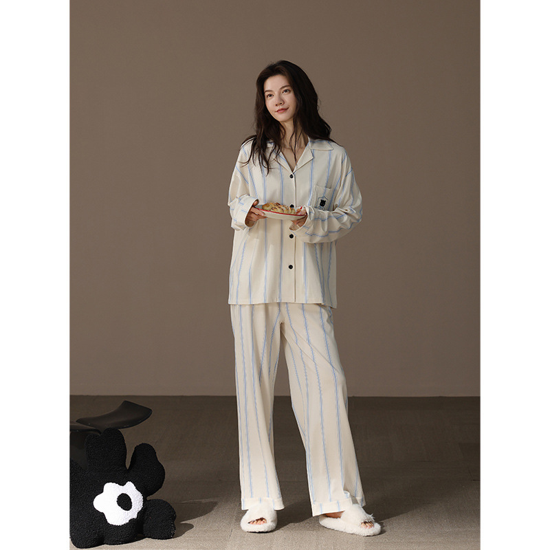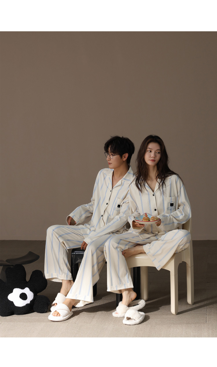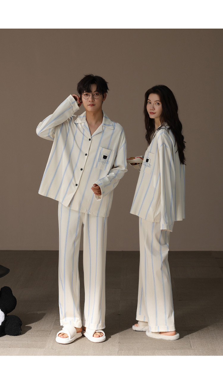[슈퍼 소프트] 모달 커플 파자마 여성 봄과 가을 긴 소매 카디건 세트 남성 플러스 사이즈 느슨한 홈 옷스토어 가기