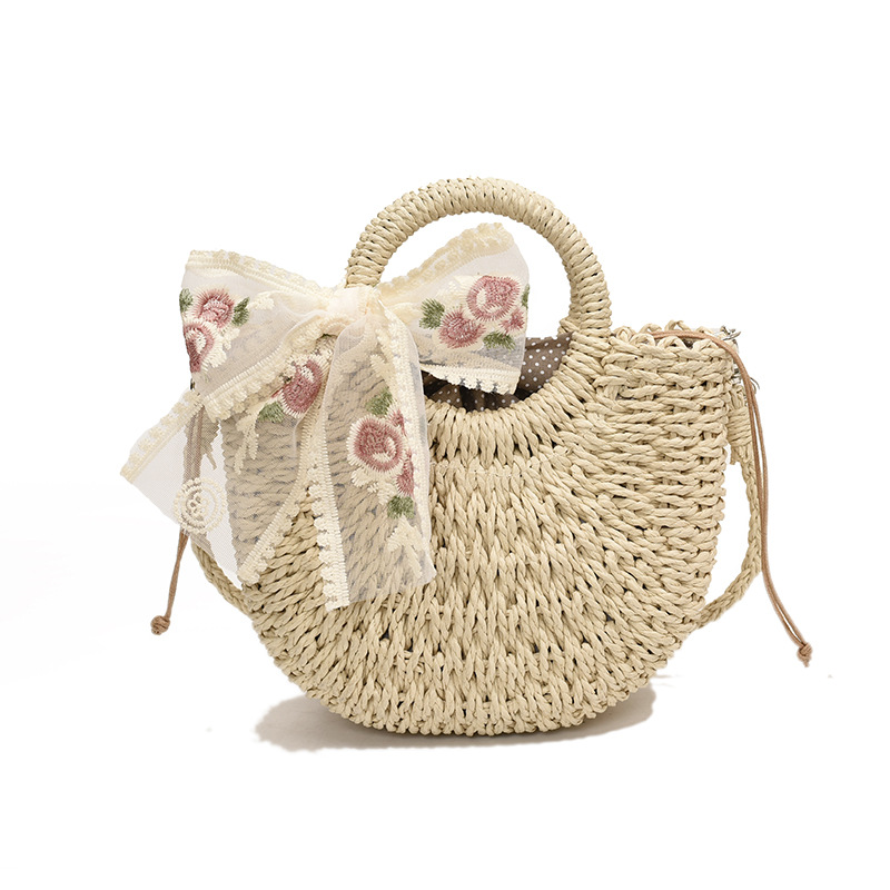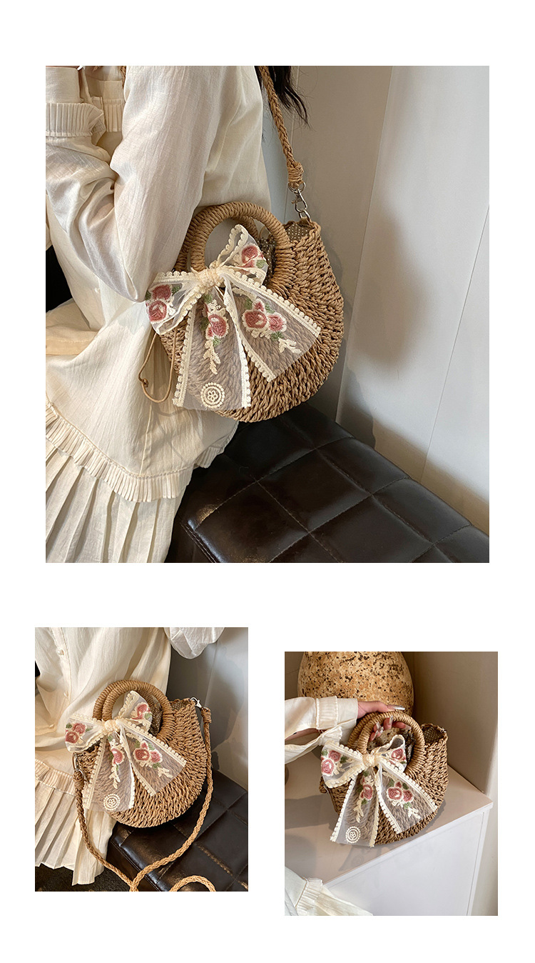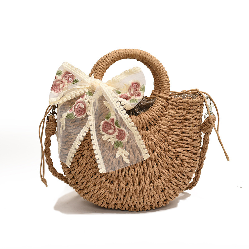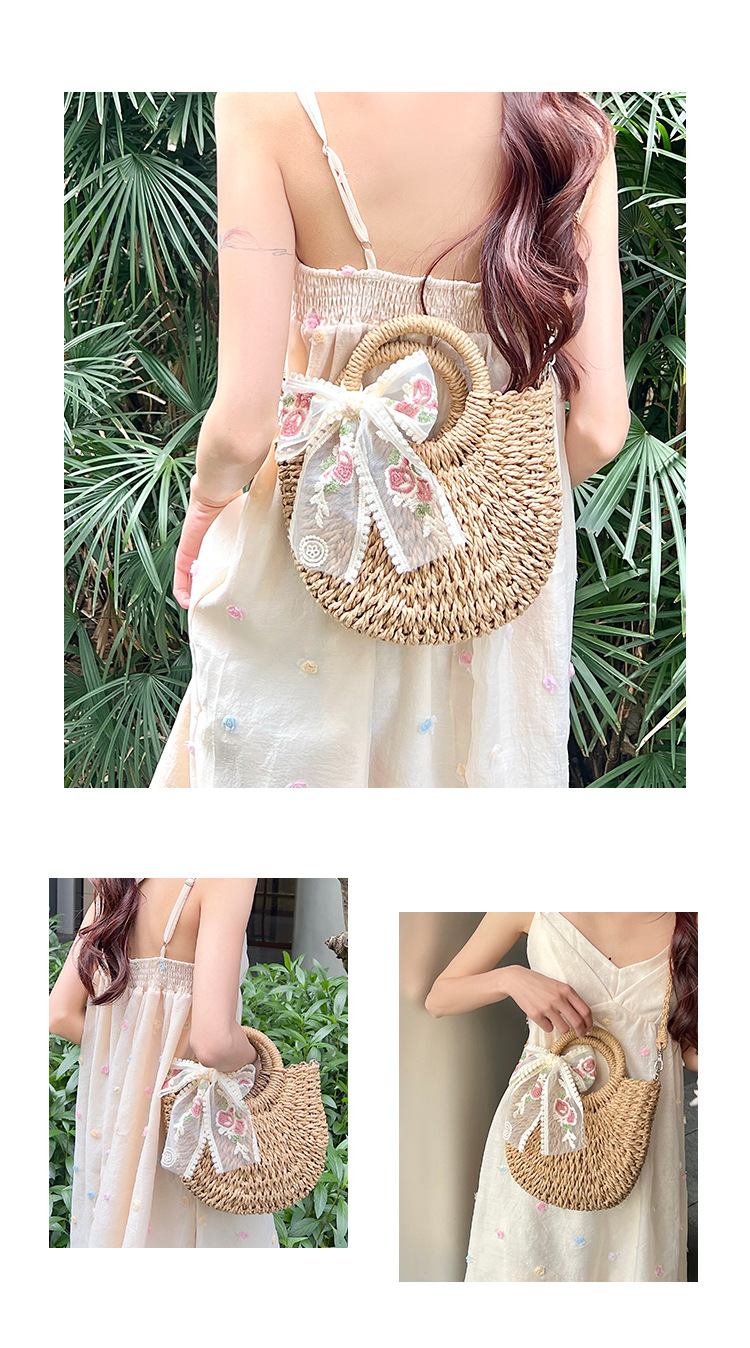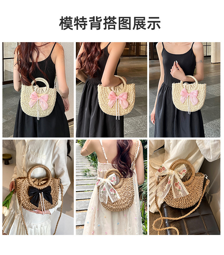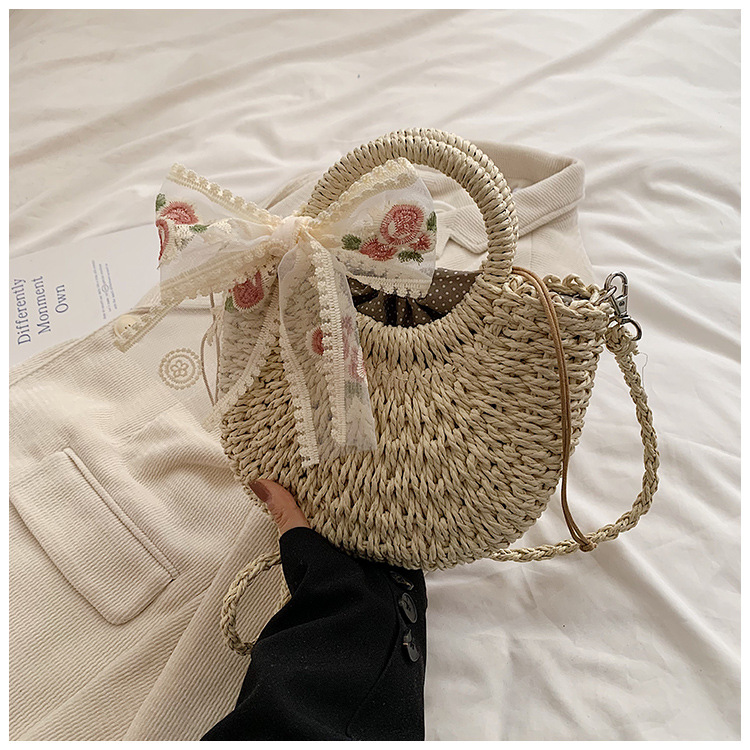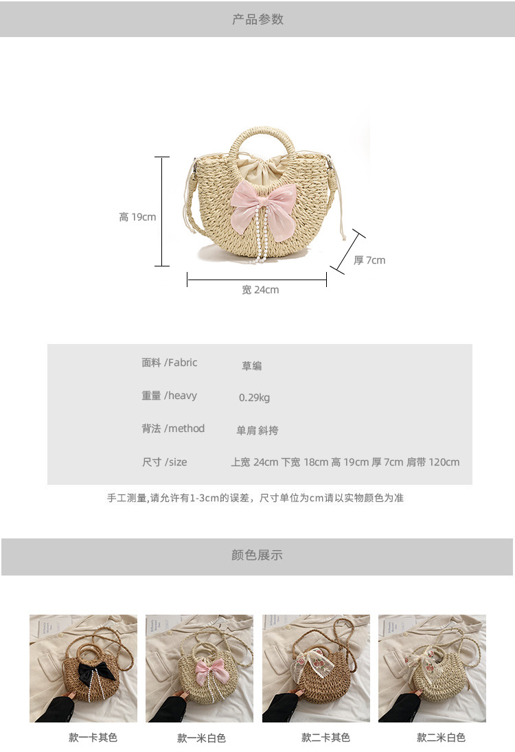 휴가 스타일 해변 밀짚 비치 백 2024 여름 새로운 패션 짠 핸드백 달콤한 어깨 크로스 바디 백