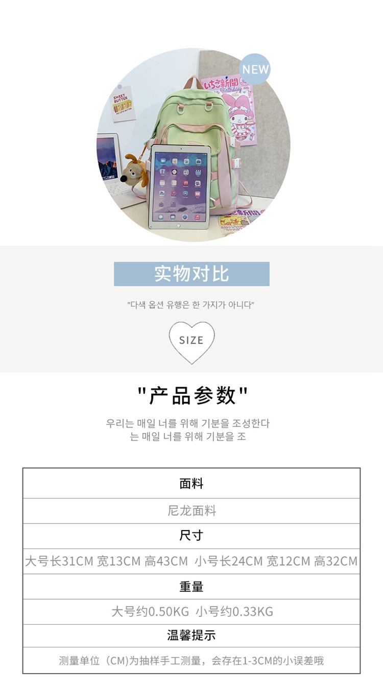 2024 새로운 대학 스타일 간단한 하라주쿠 배낭 작은 신선한 대용량 귀여운 중학교 학생 대비 컬러 스쿨백스토어 가기