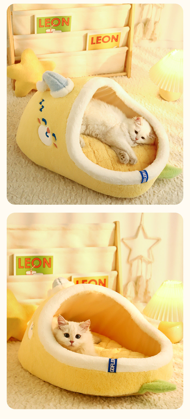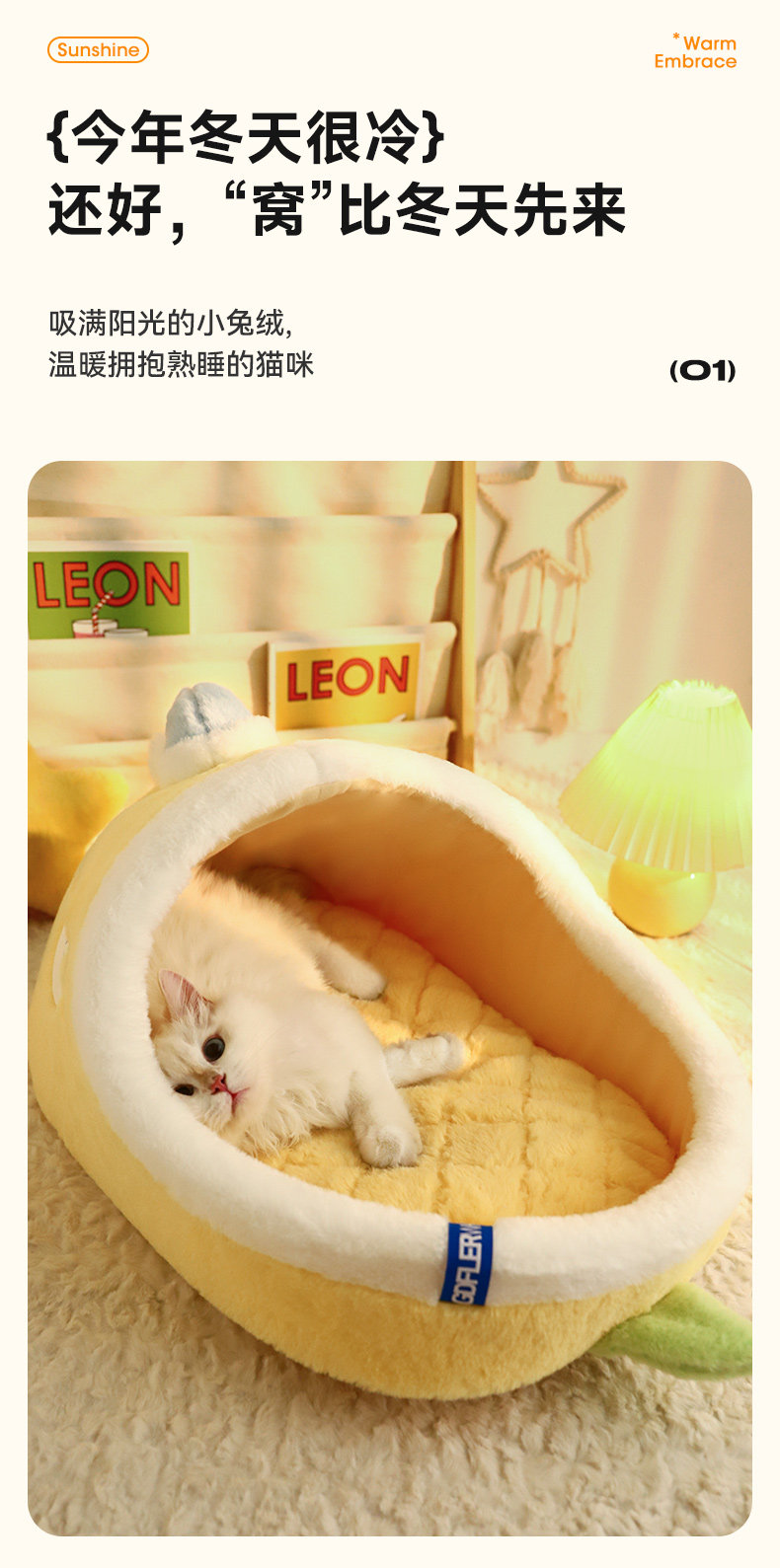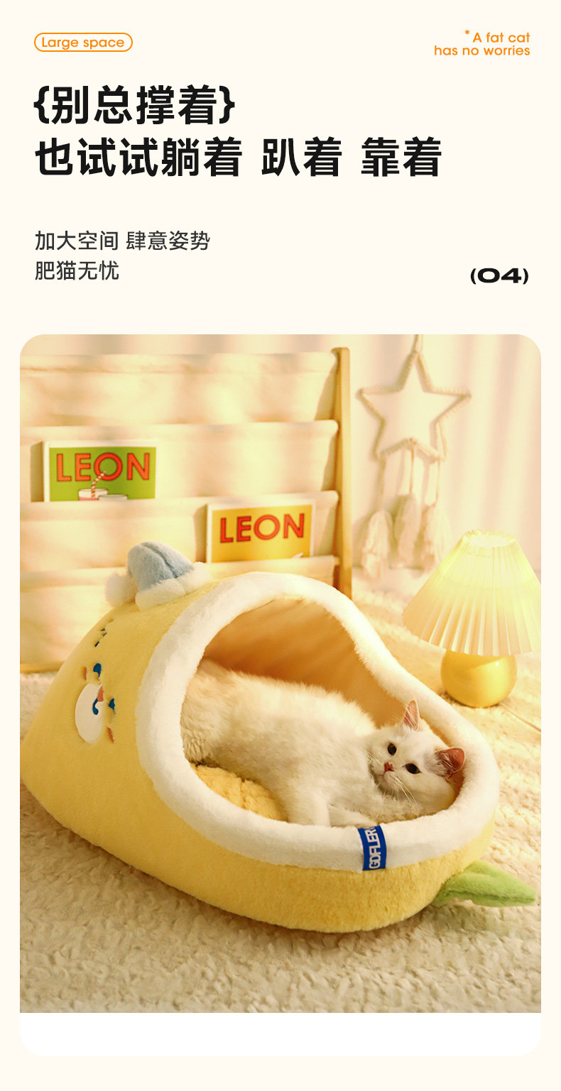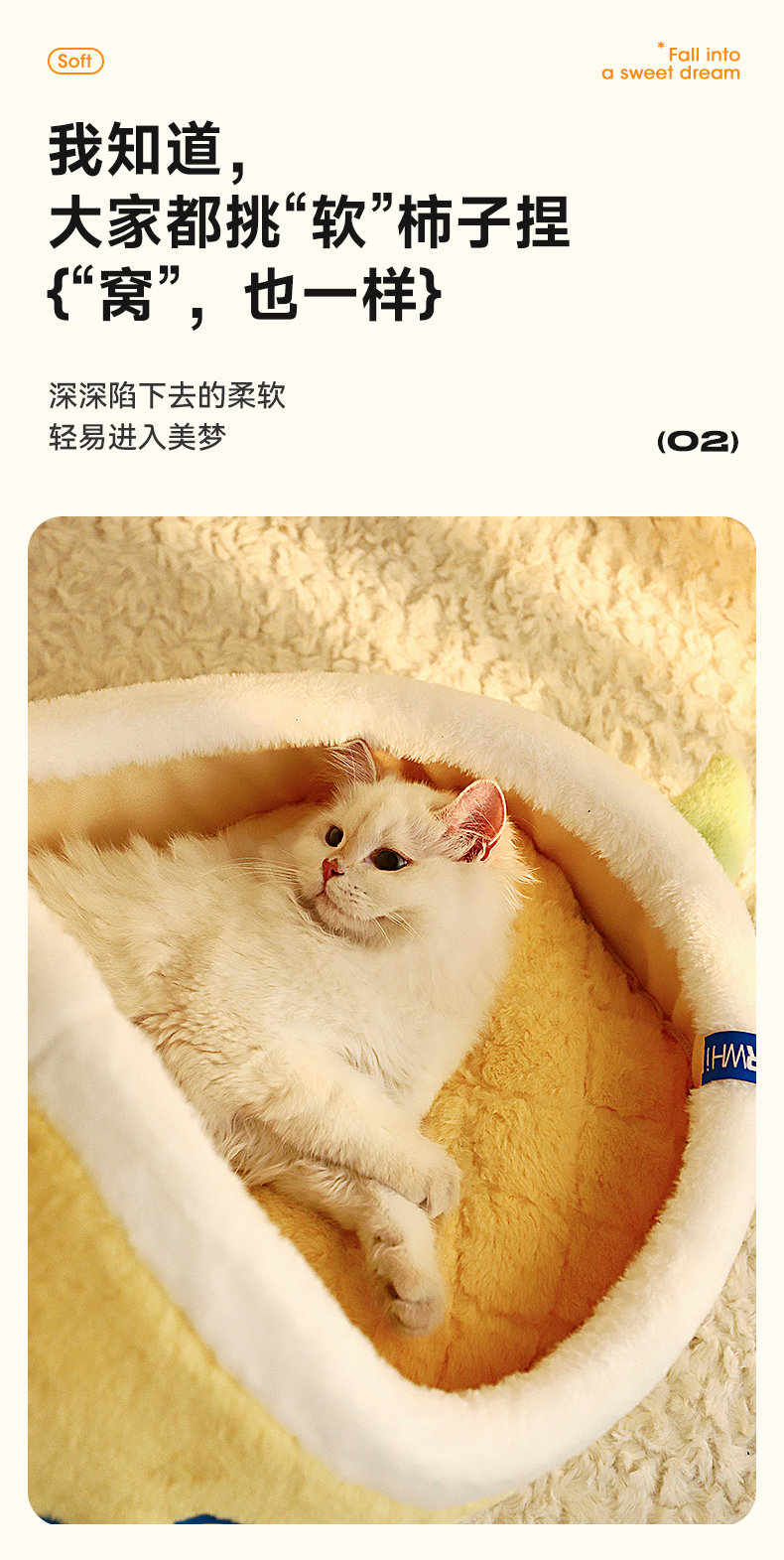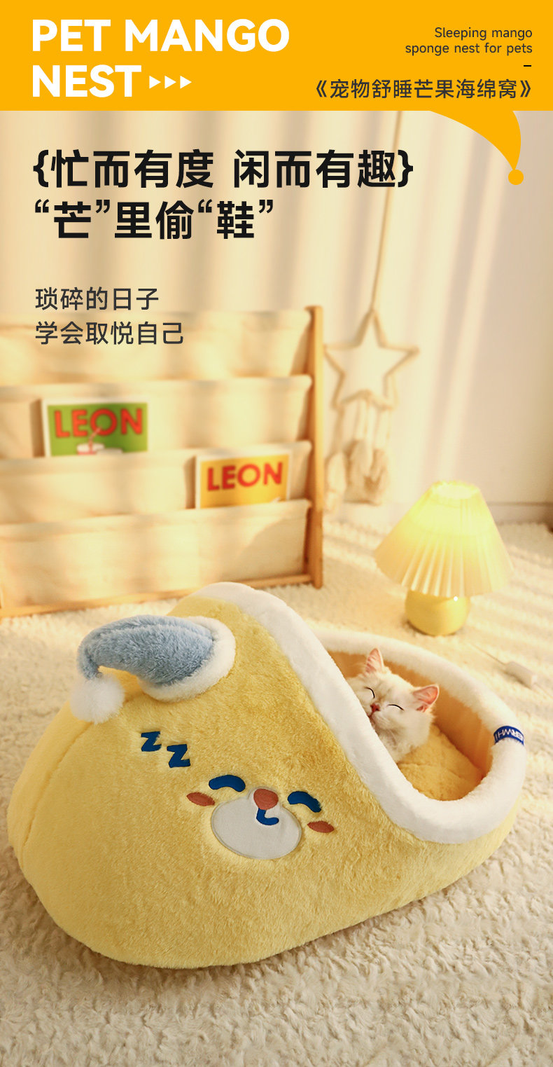 【品名】:舒睡芒果海绵窝M/冰淇淋米色安睡猫笼海绵窝S