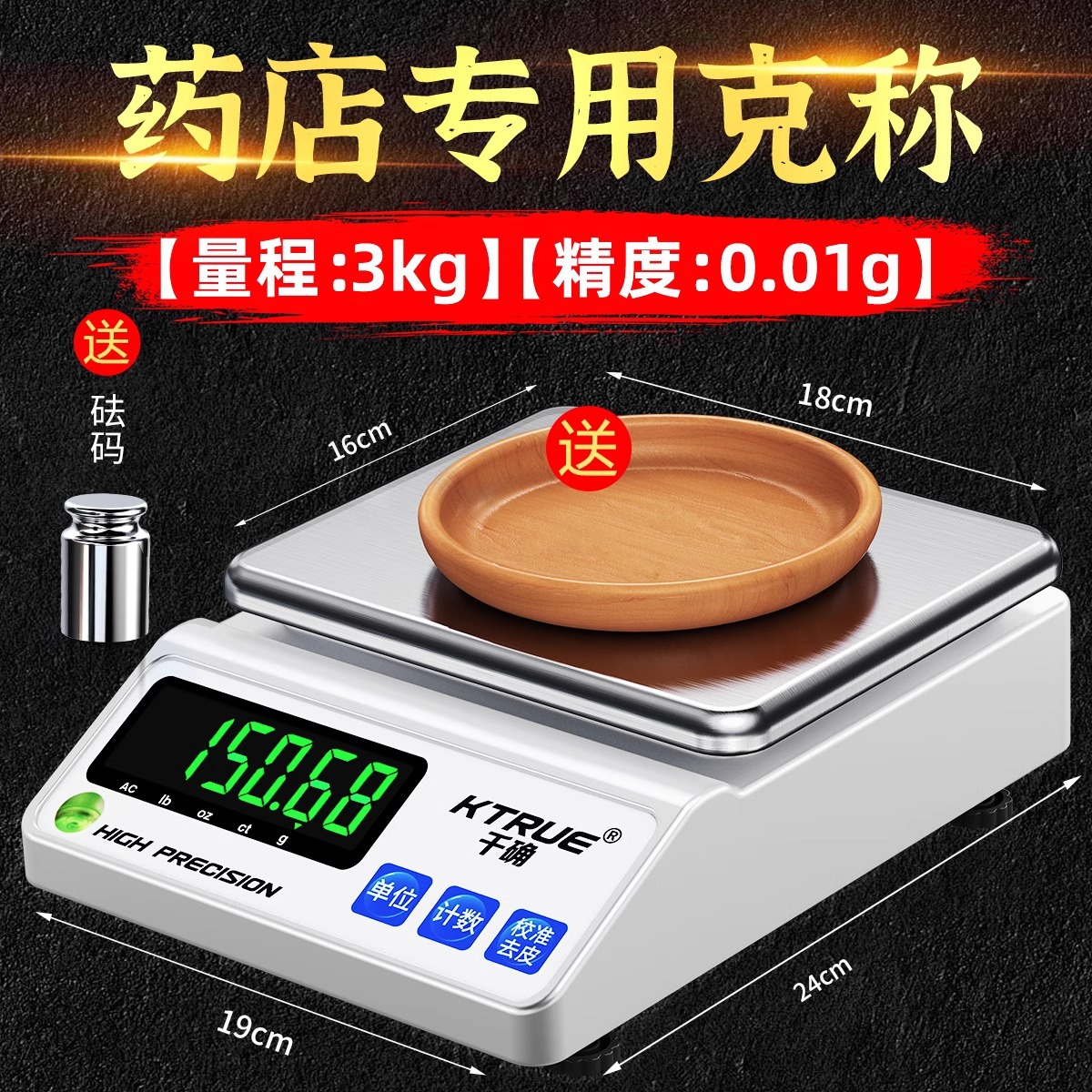 • 초고정밀 [3kg/0.01g] 측정인증 + 나무팔레트