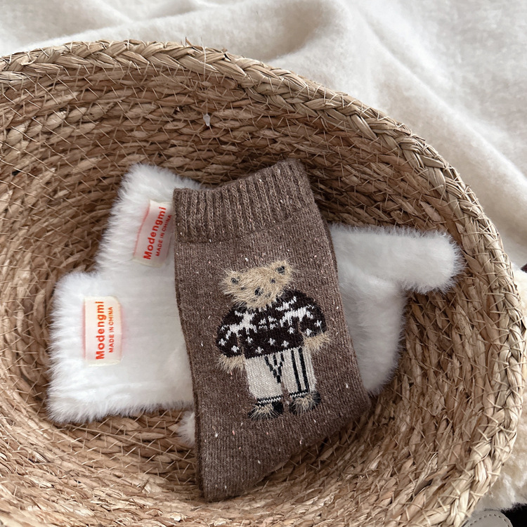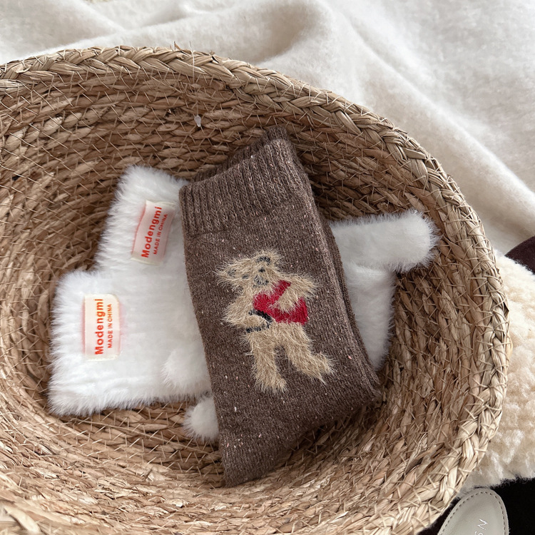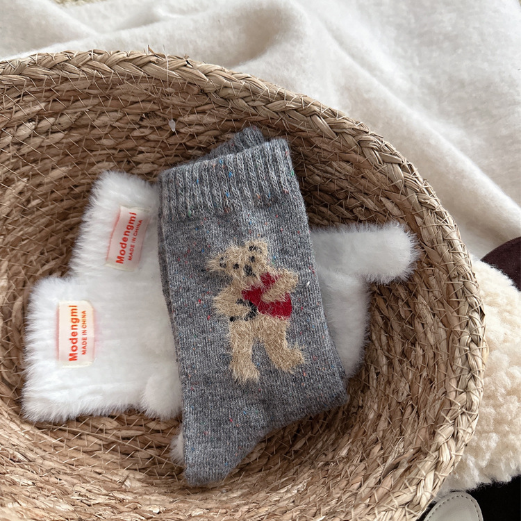 양말 여자의 두꺼운 따뜻한 양모 양말 한국 인 표현 곰 귀여운 올 매치 미드 튜브 양말 벨벳 부드러운 더미 양말스토어 가기