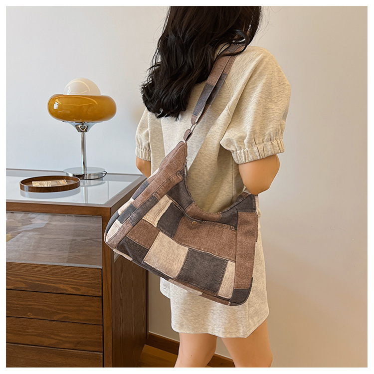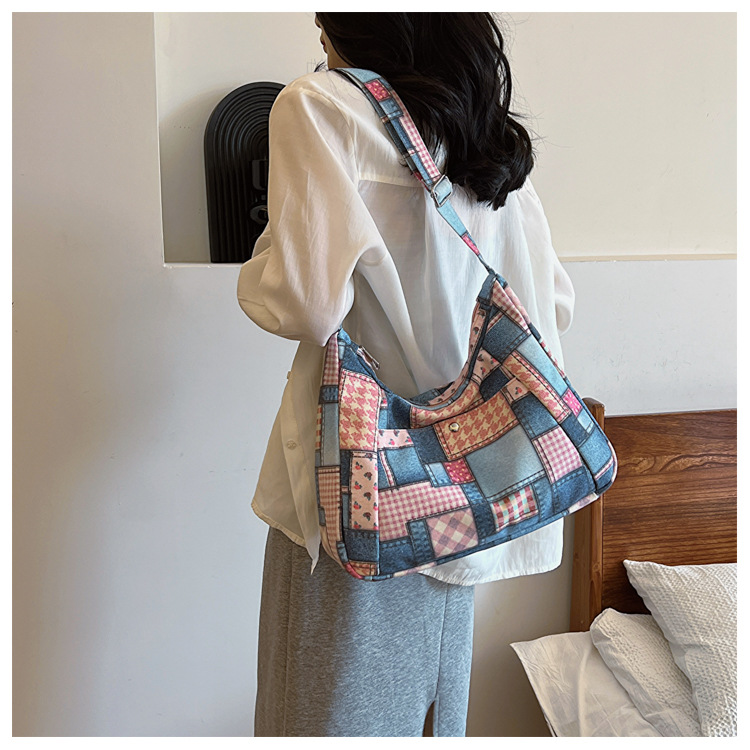대외 무역 격자 무늬 경량 올 매치 토트 백 2024 새로운 거리 유행 어깨 가방 국경 간 대용량 크로스 바디 백스토어 가기