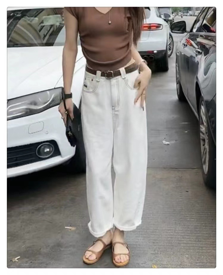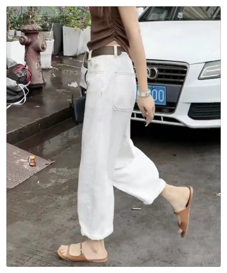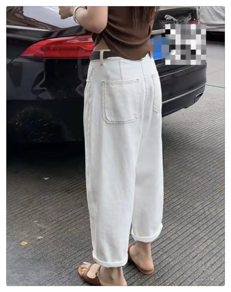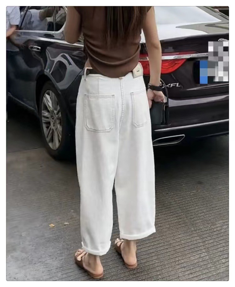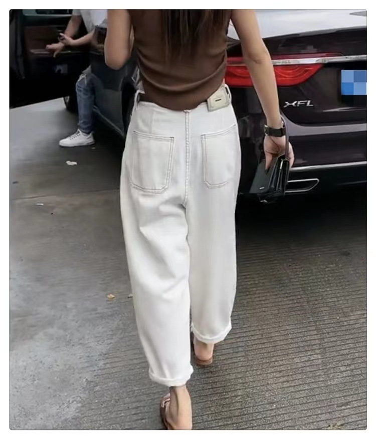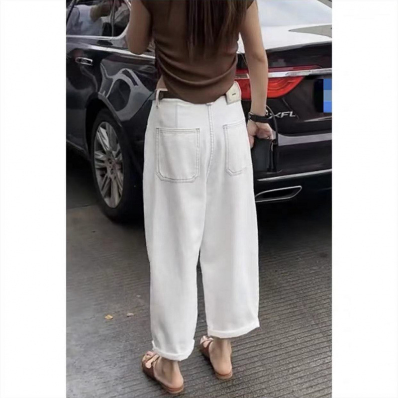 흰색 넓은 다리 청바지 여성 여름 바나나 바지 얇은 당근 바지 플러스 사이즈 통통녀 바지 슬림 봐 아빠 바지스토어 가기