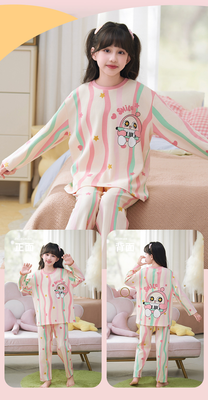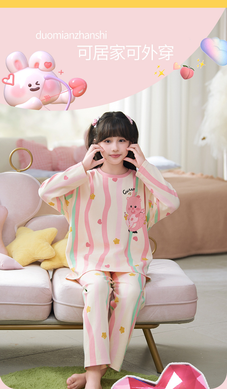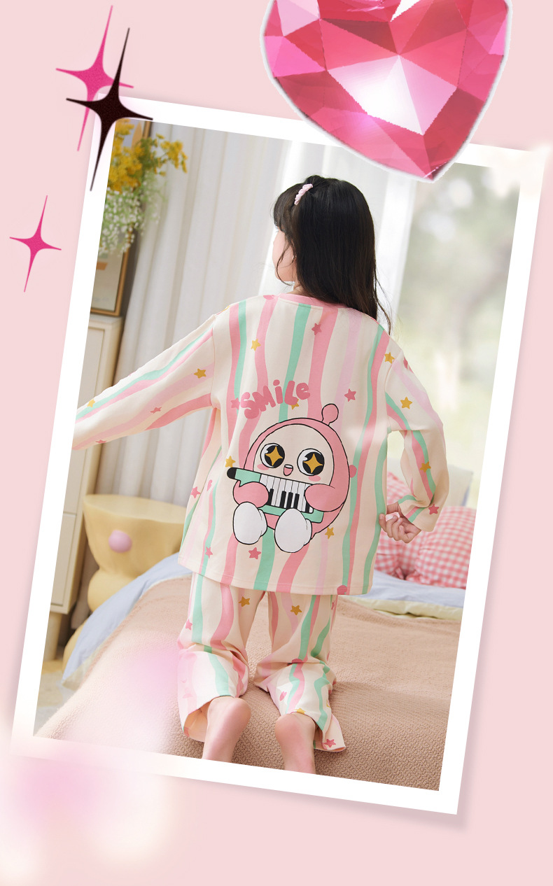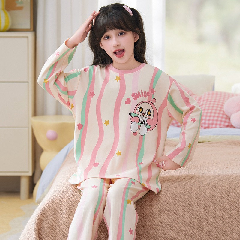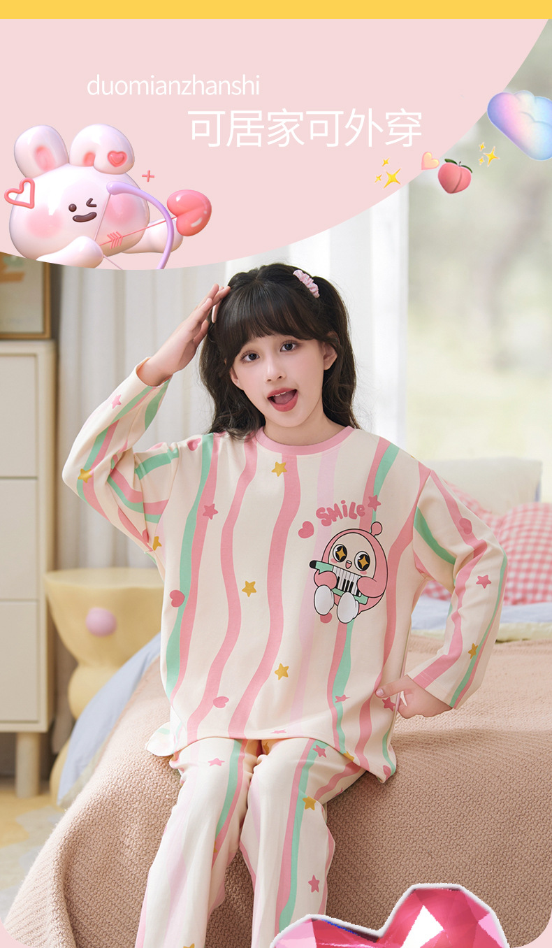 소녀 잠옷 2024 년 봄과 가을 새로운 순면 긴 소매 세트 소녀 큰 어린이 쿨리 학생 홈 옷스토어 가기